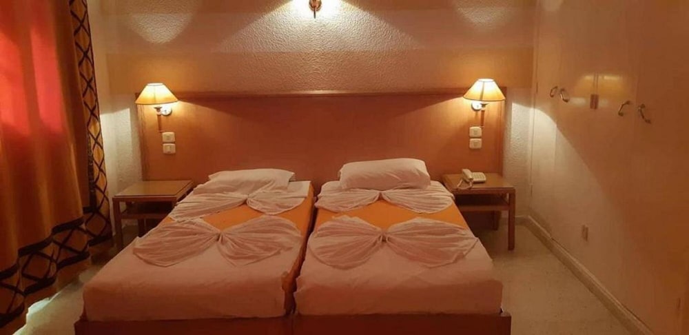 Etablissement qui se délabre gentiment (plusieurs pb d'éléctricité en 1 semaine), dont l'entretien laisse fortement à désirer (prise elec arrachée, porte serviette proche du décrochage, propreté des serviettes plus que douteuse meme quand on est très tolérant)... bref vous pourrez y trouver la vraie vie dans un pays en crise qui fait ce qu'il peut pour gérer les difficultés quotidiennes. Si vous cherchez le luxe allez vous isoler à El kantaoui.