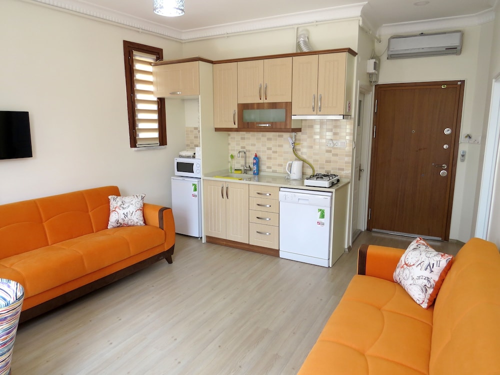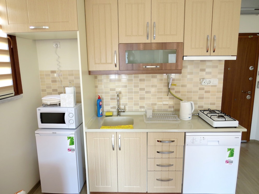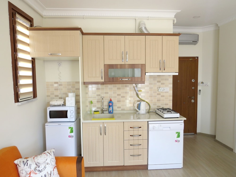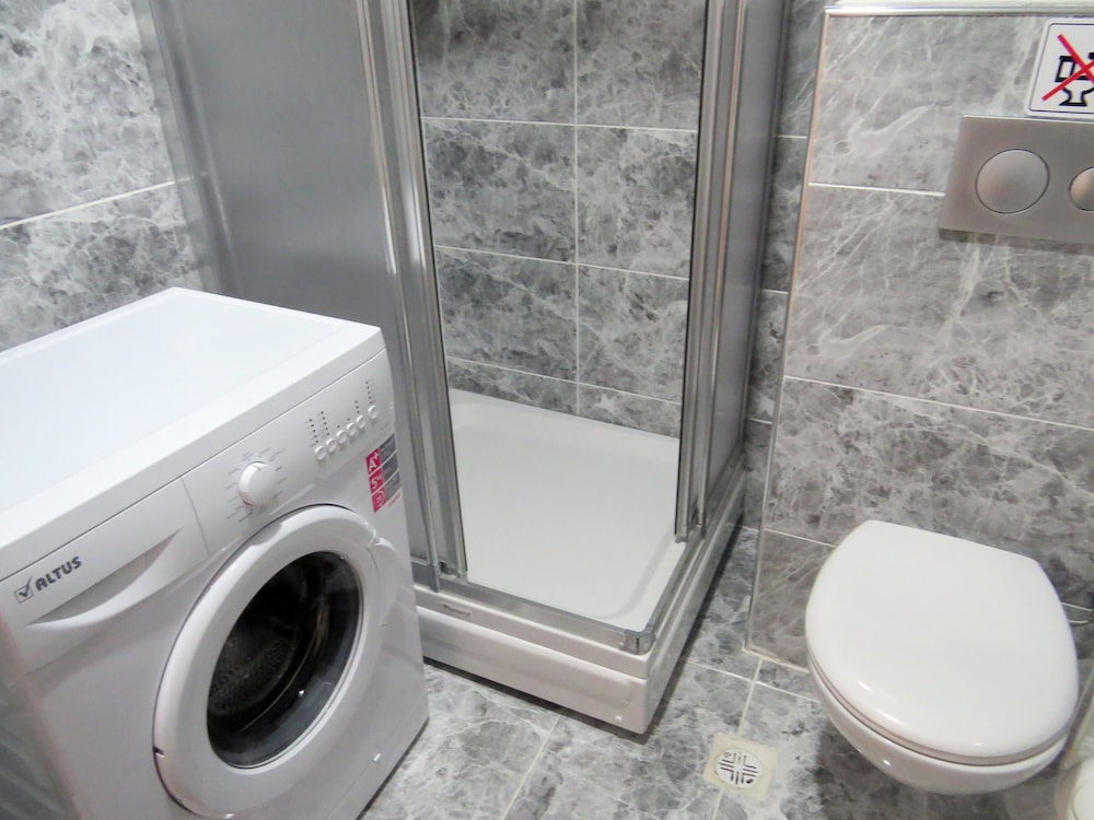 light in the night is not suffisant. and courtins are not thick enough to sleep enough in the morning. slipper provided by the hotel are very heavy so peaple above our apart make noise in the nigh . detergeant for washing machine are provided by paying 5 lira for each uniteee. there is no elevater in the bulding. negative points could be easily improved.