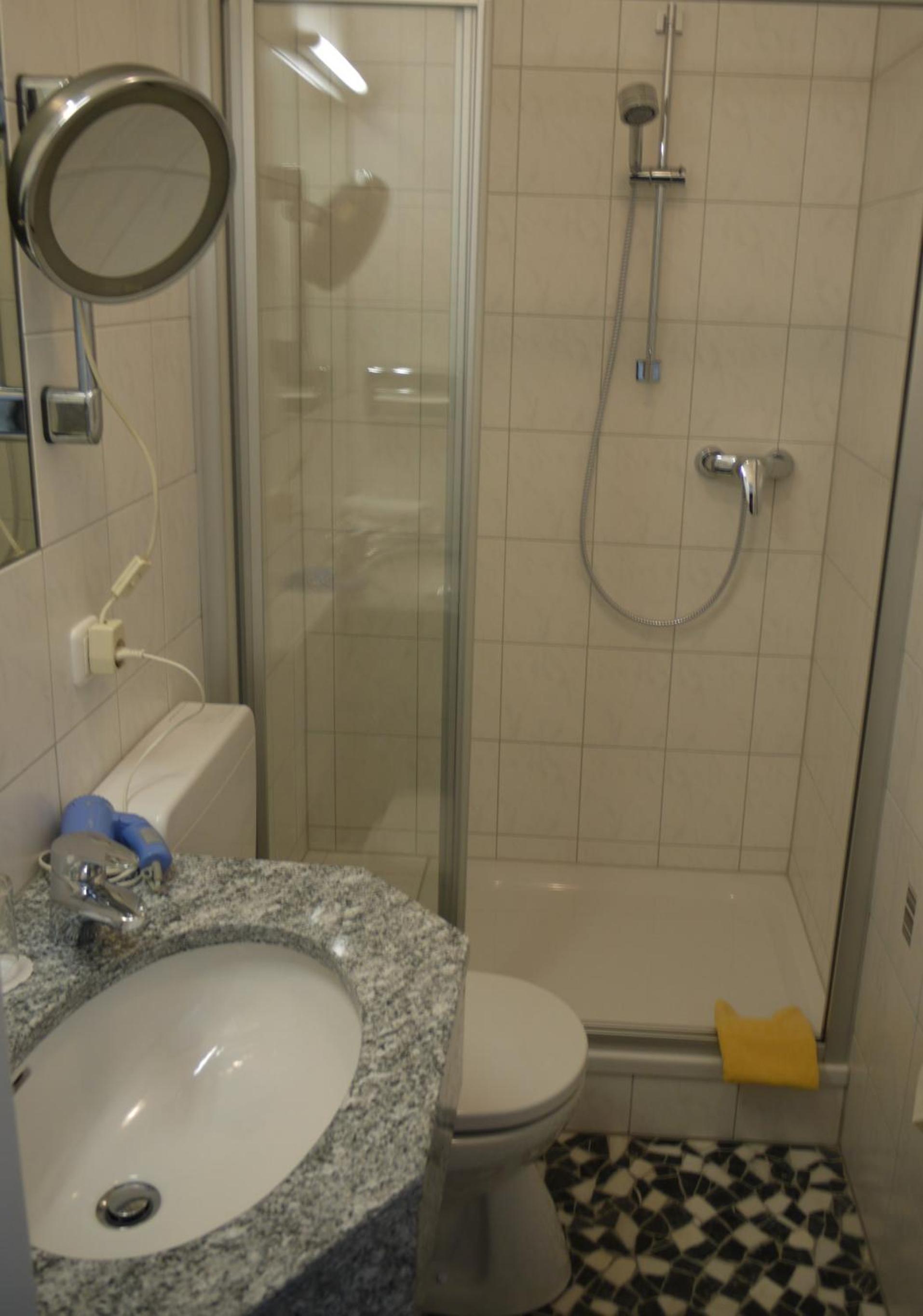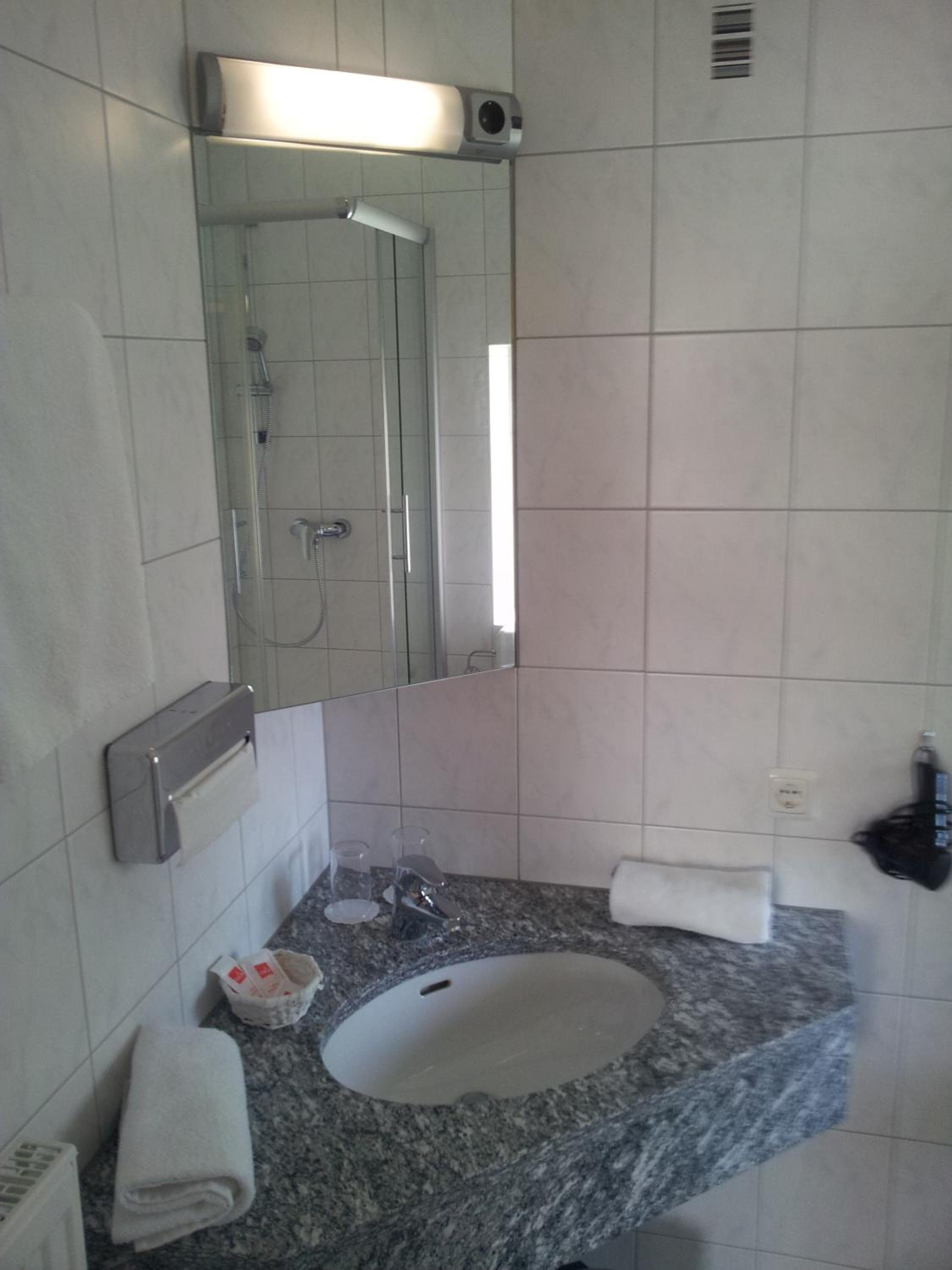 Trotz später Anreise sehr herzlicher Empfang. Das Zimmer war nicht sehr groß, aber sehr sauber, gemütlich und vor allem ruhig. Für mich war das Bett bequem, mit Auswahl verschiedener Kopfkissen. Auch das Bad war sehr sauber und mit allem ausgestattet, was man (und auch Frau) so braucht. Gutes Frühstück mit sehr gutem Kaffee.