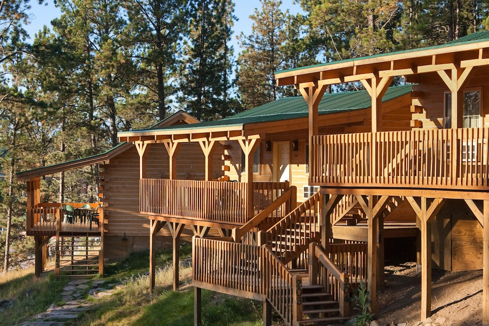 Nice porches. Great log cabins