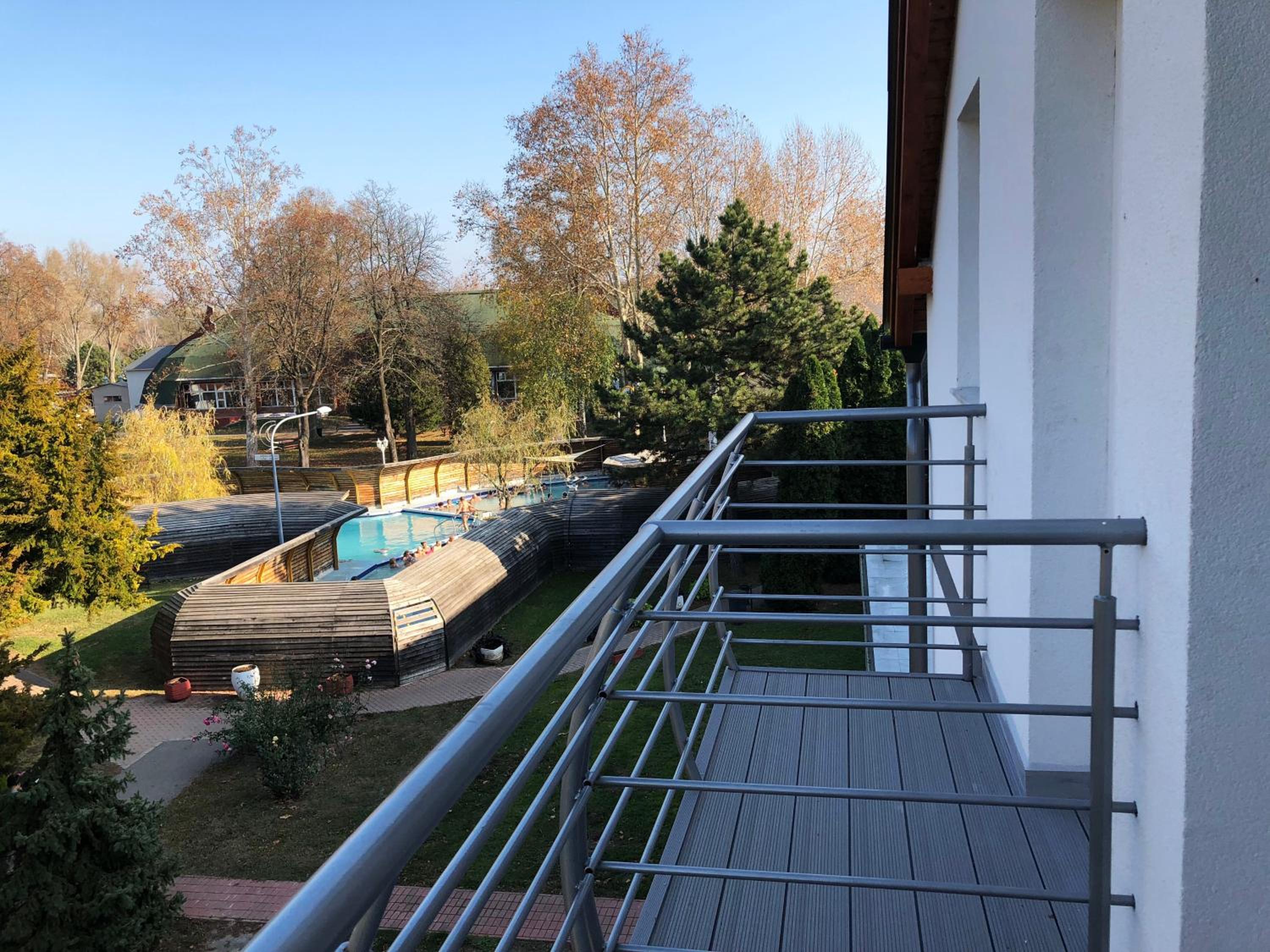 A hotel hátsó kijárata közvetlenül a fürdő udvarára nyílik. Ez a hotel van legközelebb a fürdőhöz, ami ebben a mínusz 2-3 fokos időben is lehetővé tette, hogy egy szál fürdőköpenyben mehessünk át úszni, fürdőzni és szaunázni. A hotelben vásárolt fürdőbelépővel naponta többször ki-be lehet járni. Megérkezésünkkor megkérdezték, van-e valamilyen étel-allergiánk, ill. vegetáriánusok vagy vegánok vagyunk-e, és ennek megfelelő volt a reggelinél a választék. Ezt vegánként kifejezetten nagyra értékelem. Még sült tököt és grillezett cukkinit is kaptunk. A vendéglátó házaspár nagyon barátságos és kedves, ez családias hangulatot ad a szállásnak. Csak ajánlani tudom a helyet!