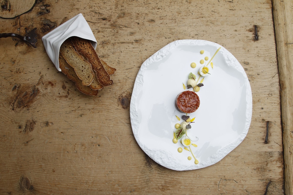 Warto wjechać na wysokość 880 m npm by odkryć hotel w dwunastowiecznym obiekcie. Kameralnie, cicho, spokojnie. Obiekt wspaniale zaadoptowany na hotel. Śniadania wyśmienite - spróbujesz lokalnych produktów. Kawa doskonała. Nawet herbata doskonałej jakości na co ma ogromny wpływ także jakość wody. Warto zarezerwować choć jeden obiad w restauracji - powiem tylko tyle będziecie go pamiętali długo. Wspaniały to mało powiedzieć. Wysoka cena adekwatna do bardzo wysokiej jakości posiłku, win serwowanych i obsługi. Polecamy posiłek a najlepiej cały zestaw razem z winami. Niezapomniane wrażenia.