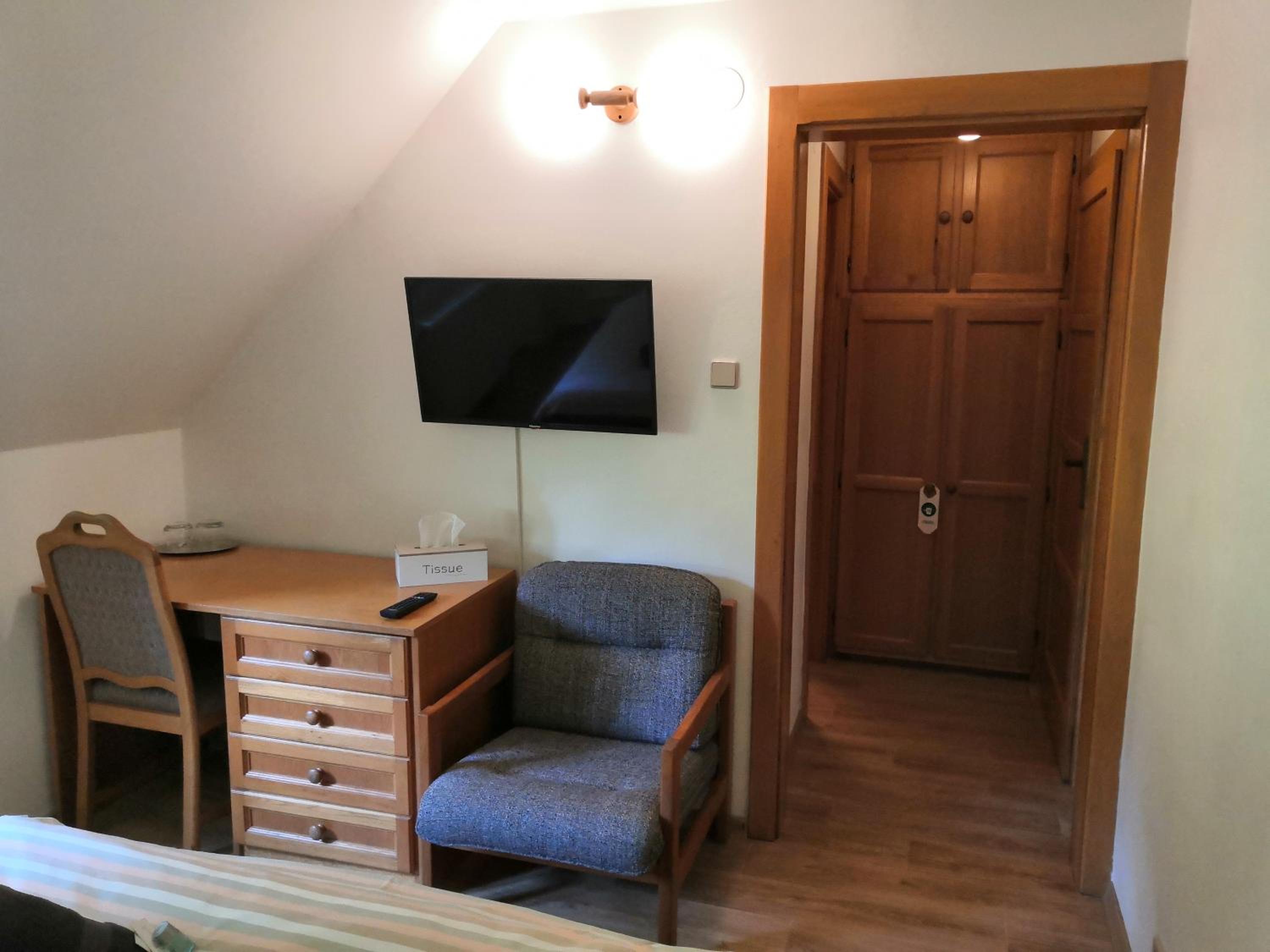 De locatie midden in het reuzengebergte is fantastisch. Parkeerplaats er bij. We hadden half pension: eten was eenvoudig maar smakelijk. Op onze kamer was de wc stuk en we kregen na het eten een andere grotere kamer. Goed en snel geregeld.