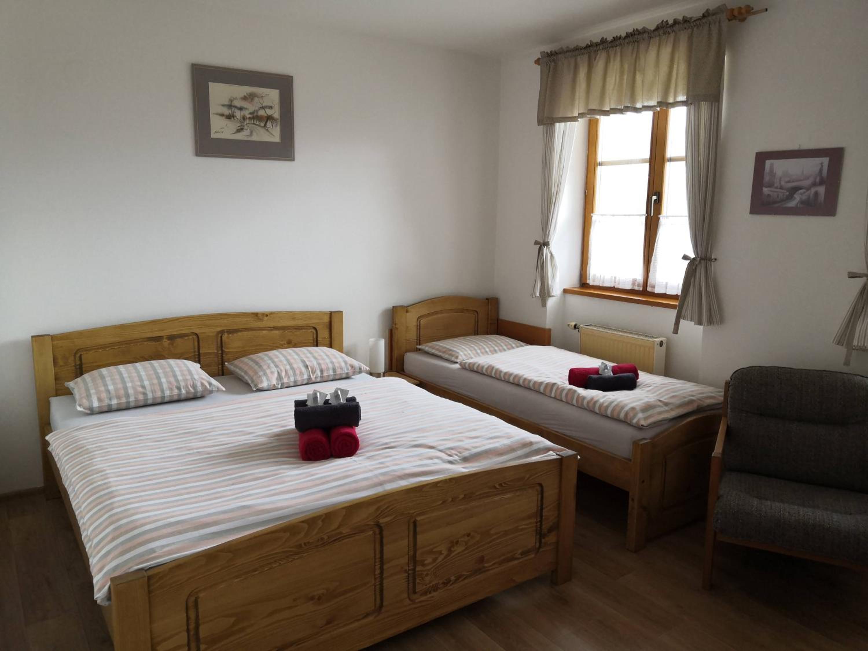 Das Hotel ist traumhaft gelegen und strahlt eine herrliche Ruhe aus.es ist ein kleines schönes familiengeführtes Hotel und das Betreiber-Paar ist sehr freundlich und hilfsbereit. Gegen einen kleinen Aufpreis konnten wir die Fass-Sauna nutzen, was ein sehr erholsames Erlebnis war. Das Frühstück war gut und ausreichend, das Abendessen sehr schmackhafte tschechische Küche, modern interpretiert. Für ein paar erholsame Tage in schöner Umgebung ist man hier genau richtig.