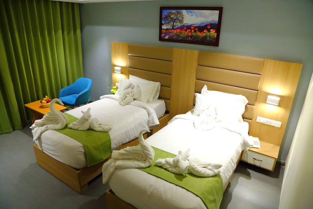 Dine and Unwind: Whether you prefer a meal at the restaurant, snacks at the cafe, or 24-hour room service, Abhayaa Hotel has you covered. Don't miss the daily complimentary continental breakfast from 6 AM to 10 AM.Top-notch Amenities: Enjoy access to a business center, complimentary newspapers, and laundry facilities. Benefit from free airport shuttle service 24/7.Cozy Comforts: Relax in one of the 30 air-conditioned rooms with flat-screen TVs, free Wi-Fi, and deep soaking bathtubs. The convenient location near Rama Krishna Beach offers easy access to nearby attractions. Book now for a delightful stay at Abhayaa Hotel in Visakhapatnam!