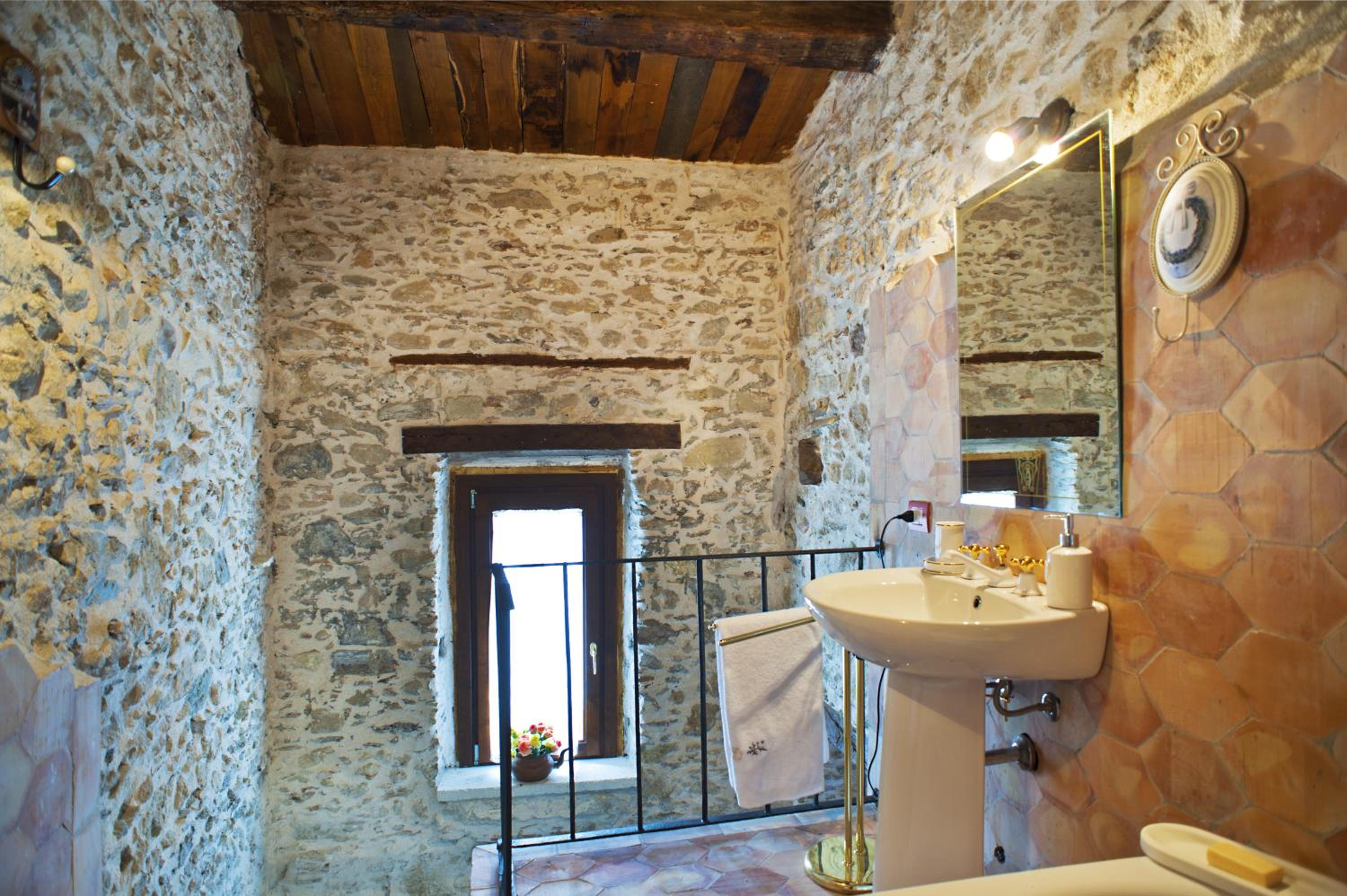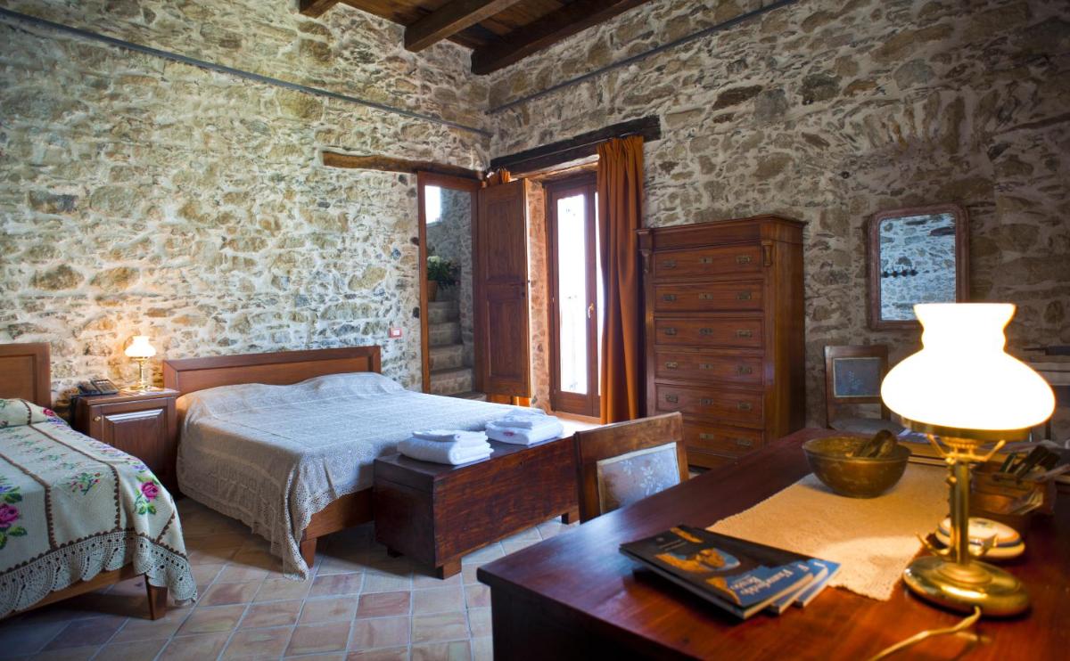 An amazing place it was like staying in an old castle with the thick stone walls.The room and bathroom were very large.Views from our bedroom were stunning looking out to sea.It was quiet surprisingly (often you hear other guests in old places ) and very peaceful.Bed was very comfortable and plenty of hot water in good shower.Breakfast catered also for us non sweet eaters with fruit, great juices, eggs,yoghurt and brown bread.You were able to come up to kitchen during day to make tea and coffee.Great selection of books, mostly Italian though.Parking was not too far and wasn't busy.
