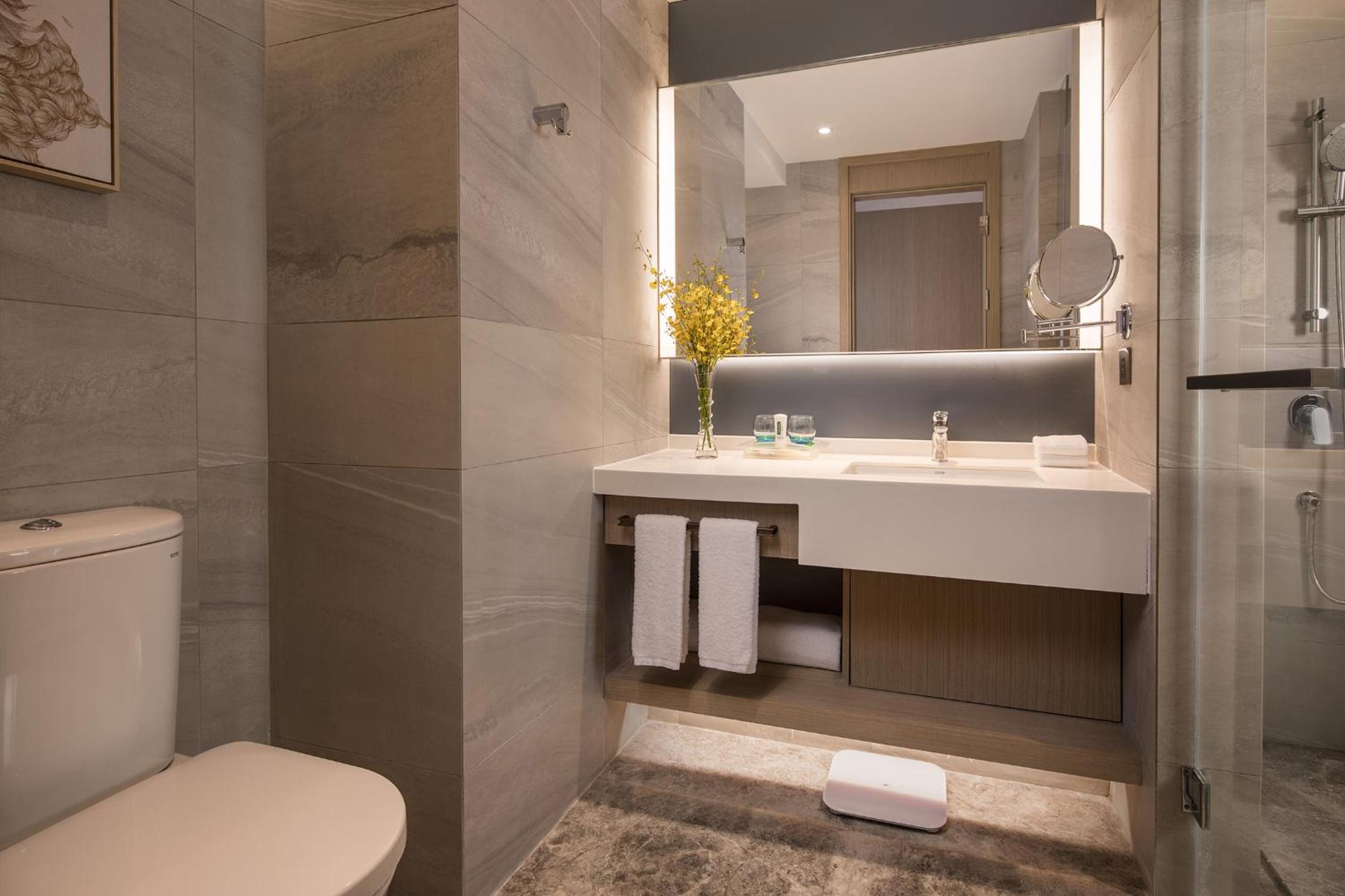 The modern hotel included everything you need. Great large shower.
