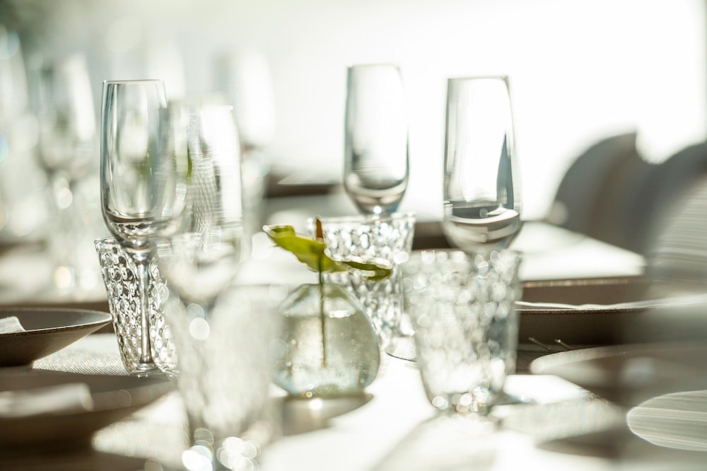 Unwind in one of the 58 air-conditioned rooms featuring private balconies, flat-screen TVs, and luxurious amenities. Stay connected with complimentary Wi-Fi and pamper yourself in the elegant bathrooms with rainfall showers.