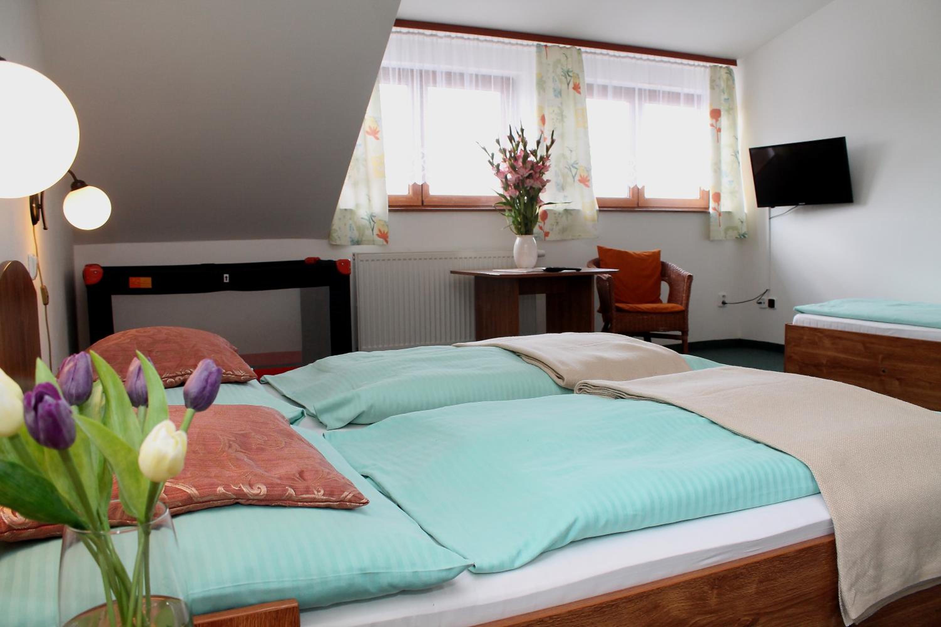 Výborná lokalita, super možnosti aktivit v ubytování (bazen, posilovna, šipky, kulečník, bowling…) , moc milý a ochotný personál, snídaně dostačující, kousek od sjezdovky