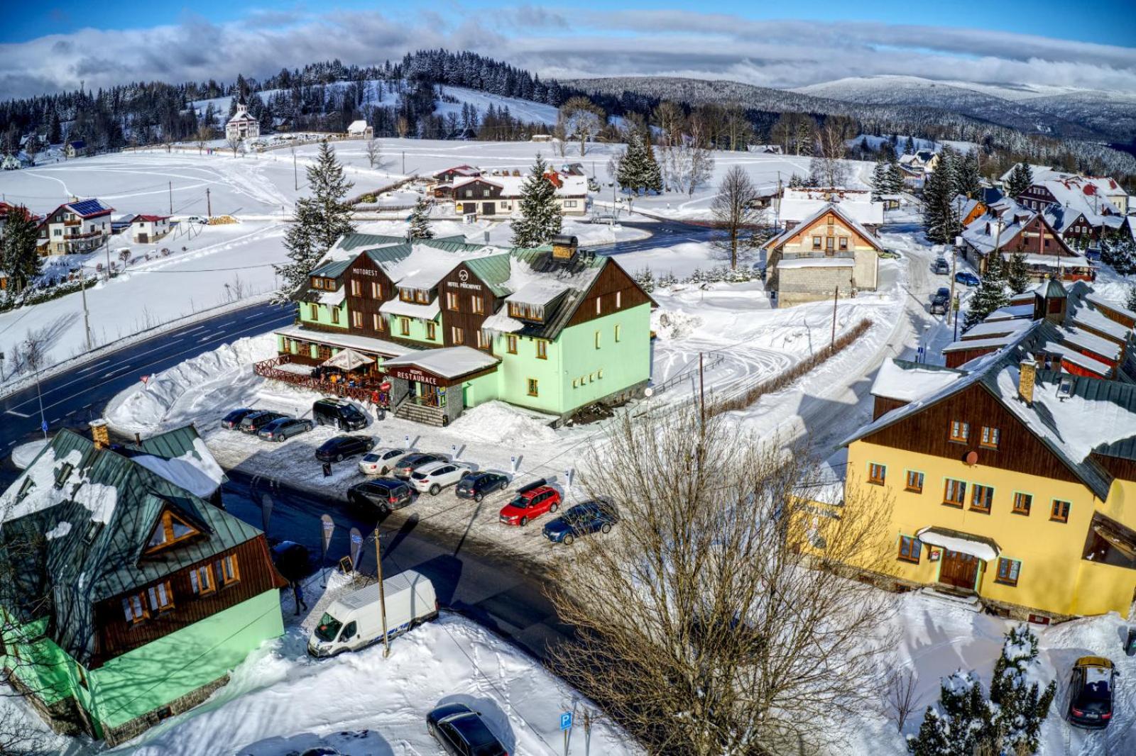 Sehr gutes Frühstück , Skiverleih gegenüber , Parkplatz gegenüber. Gute Anbindung zu den Piste in Prichovice .