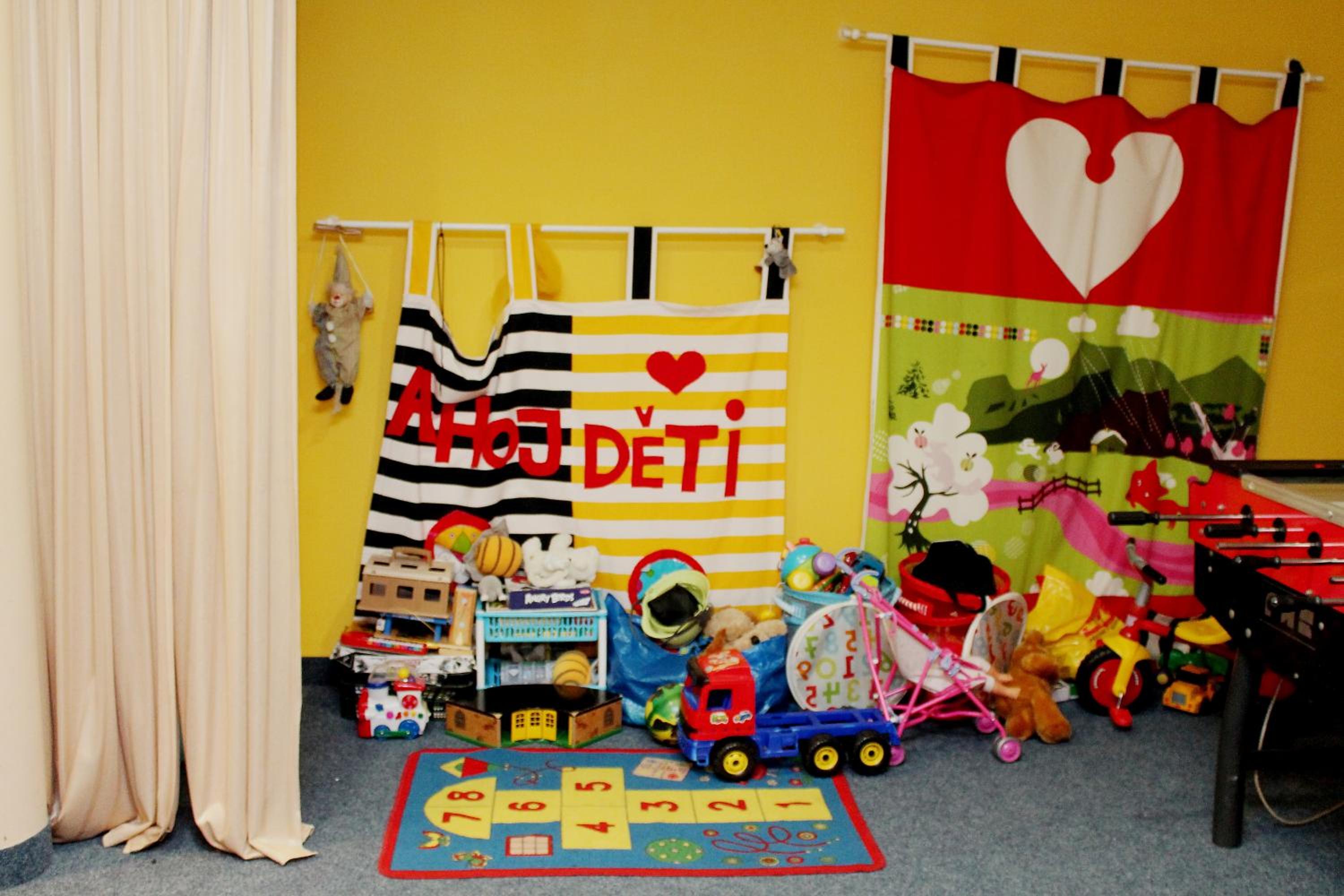 Úzké závěsy na oknech - večer svítilo do pokoje hodně světla z půjčovny lyží.