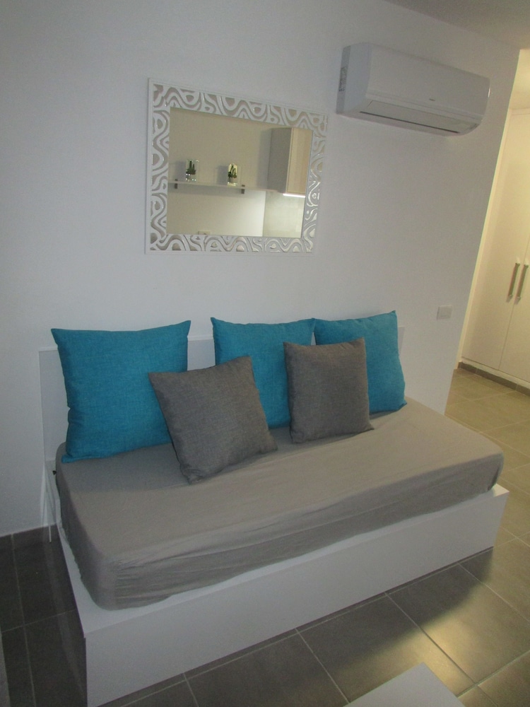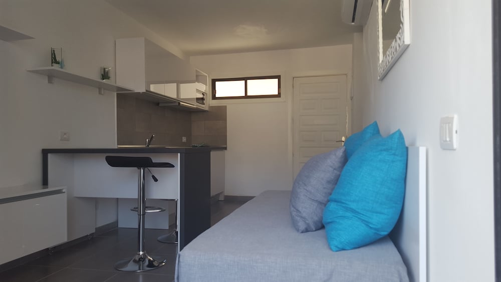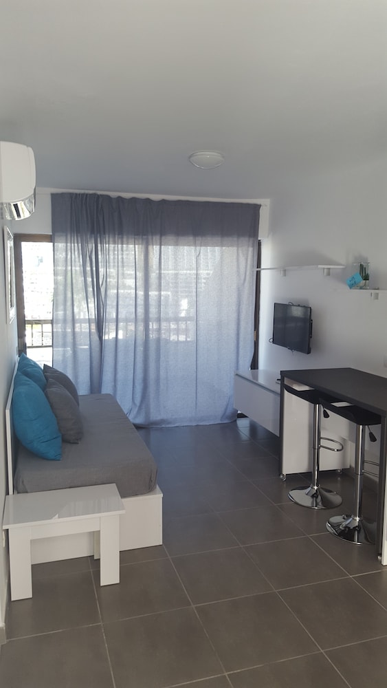 Great location -10 mins walk (down) to the beach and bars/restaurants/shops. Fully equipped (kettle, toaster, extra pillows, washing-up liquid, hair drier). Great WiFi and parking. Looked just like the pictures.