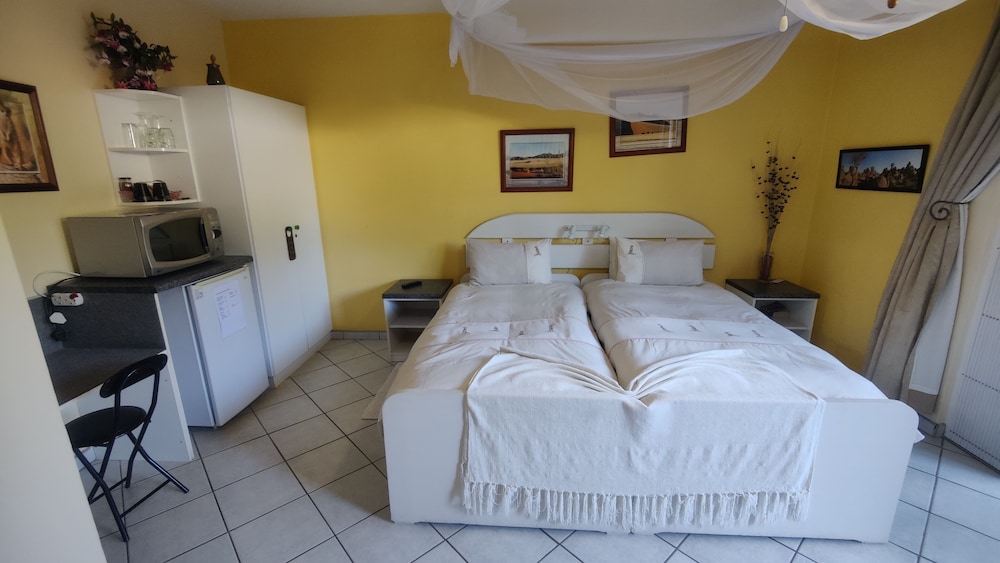 The service and cleanliness of the Guesthouse are fabulous. It serves a great breakfast. I gave 4 stars to the area around the facility, outside the gate, just to call attention to it being a mile from the center of Windhoek. The walk was not a problem for me, but it could be for a lot of folk. The management can order a car, and many tours will pick you up there.