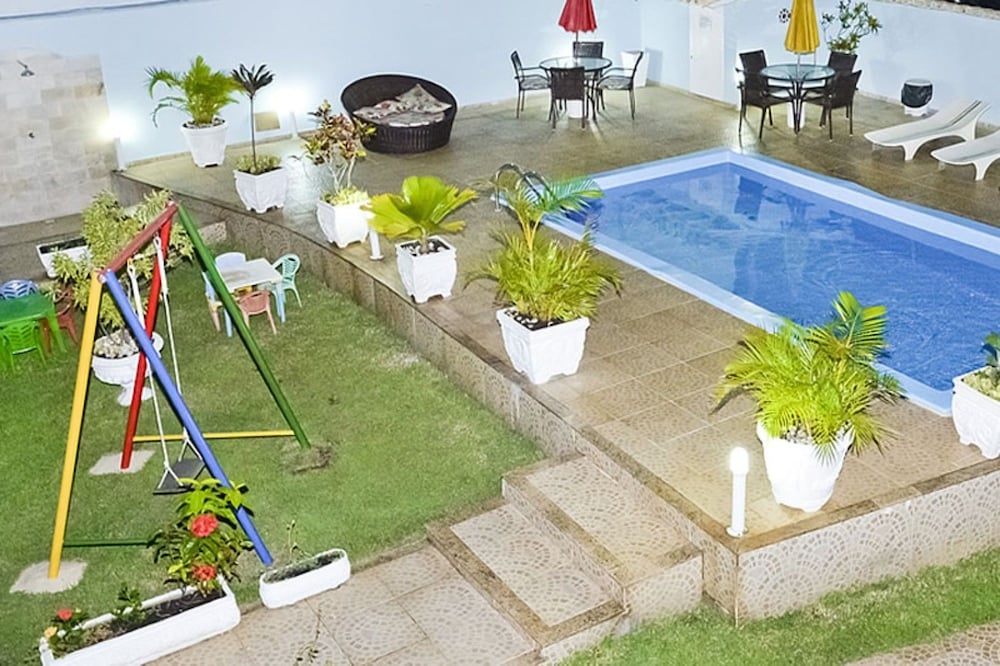 Só tem 4 vagas para estacionamento. A piscina é boa. Porém nao é tão grande o quanto na foto.