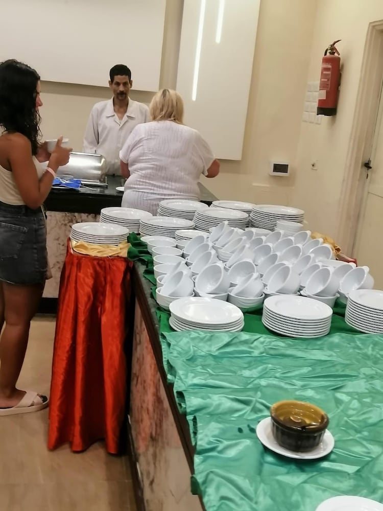 First of all, our Egyptian brothers and sisters, we really love you. We are a brother country but I must write the truth, I apologize. The hotel that ruined our holiday :) really has terrible service compared to hotels in this price range. An old hotel. We were the only young couple. They put us in a dark, dirty, damp, old room. We froze until the morning due to the air conditioning that did not work at night. They also gave two single beds to a married couple. It's a joke. The food is poor quality, lacking variety and tasteless. The dessert is only sweet with its appearance. Even the drinking water was tap water. There was no coffee taste in the coffee :) There were parties every day in other hotels with the same price, we tried to sunbathe in the pool with old people here. It was an unheated, ice-cold pool. The room and toilet were filthy. There is no such thing as cola, they serve sugary, strange-smelling acidic water :) I can say that we barely held on and prayed for it to end. The reception area needs serious architectural decoration. It is very old. The only good thing is that we liked the beach. It was easy to find a sunbed on the beach. It was also nice that they provided towel service. There were plenty of palm trees that we could take pictures of. We couldn't take any photos at the hotel anyway, we could only take them on the beach. I'm sorry. Some things need to be changed. Especially the uncomfortable room.