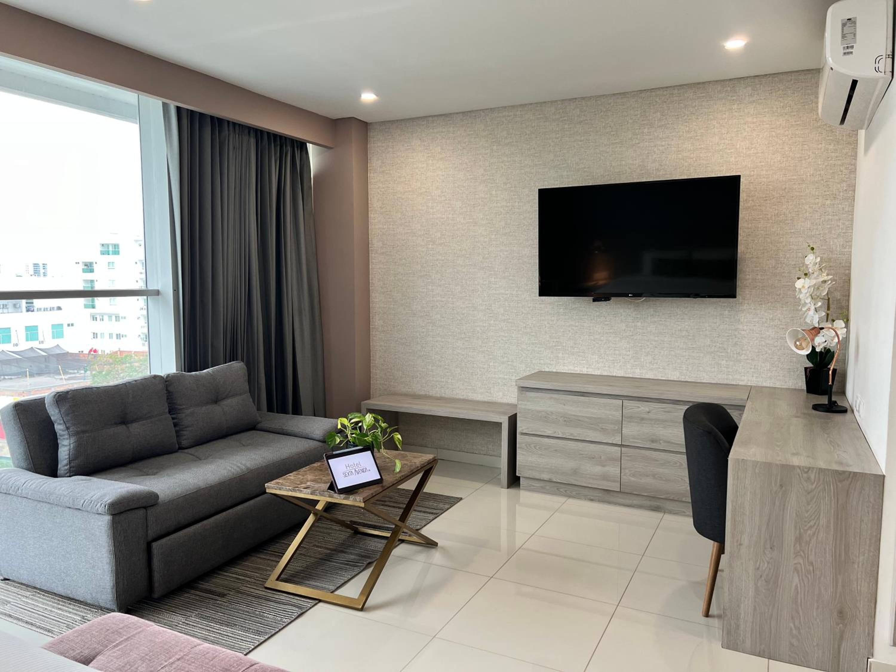 Hotel Sexta Avenida Inn offers a range of upscale amenities including a fitness centre, shared lounge, and a stylish restaurant and bar. Guests can enjoy the convenience of free WiFi, room service, and a 24-hour front desk. The air-conditioned rooms are elegantly furnished with modern comforts such as a flat-screen TV, safety deposit box, and plush bedding. Some rooms even feature a fully equipped kitchen for added convenience.