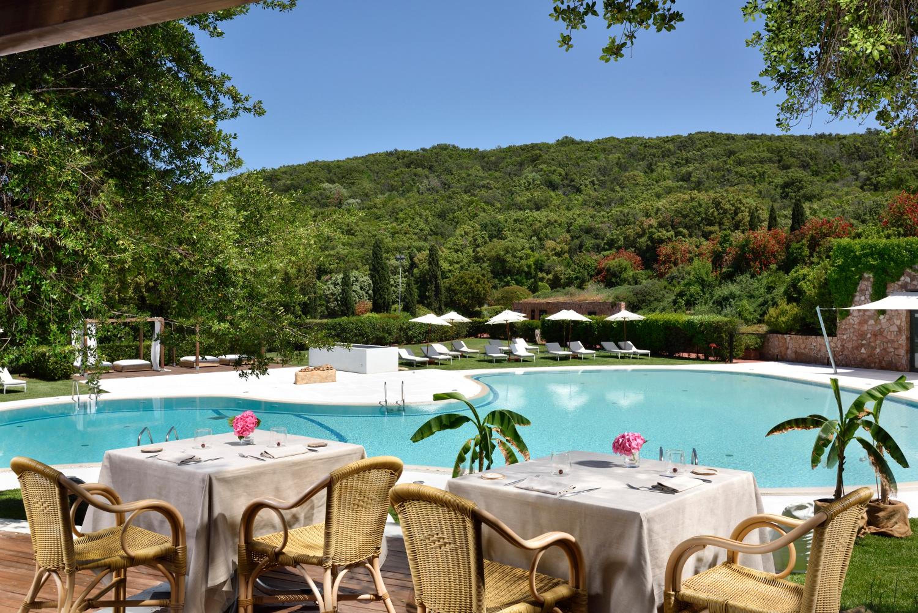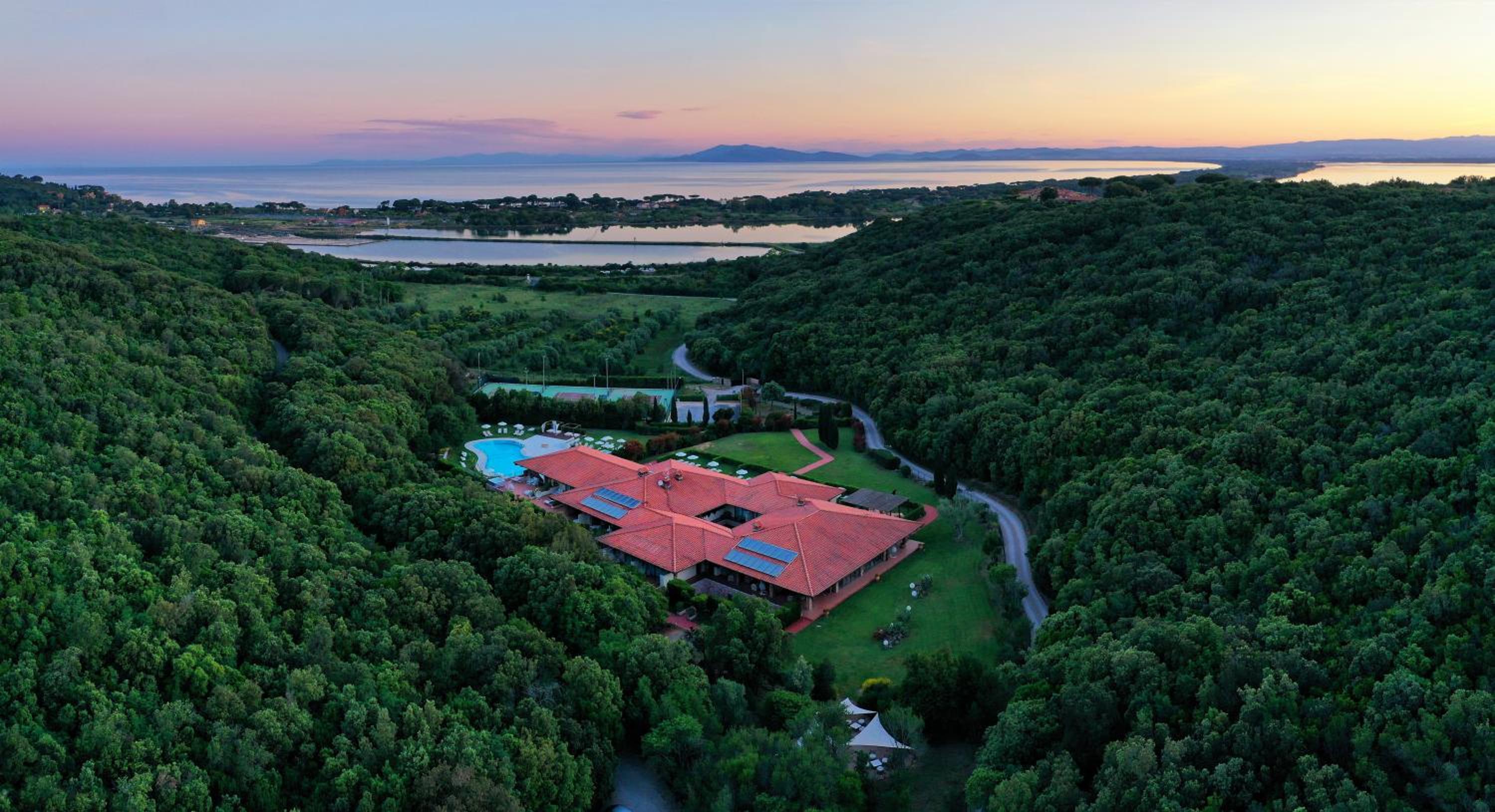 Argentario Lagoon Resort & Spa, nestled in Monte Argentario, offers a 5-star experience with a seasonal outdoor pool, fitness center, and spa facilities including a sauna and hot tub. The air-conditioned rooms feature modern amenities and some boast balconies with pool views.