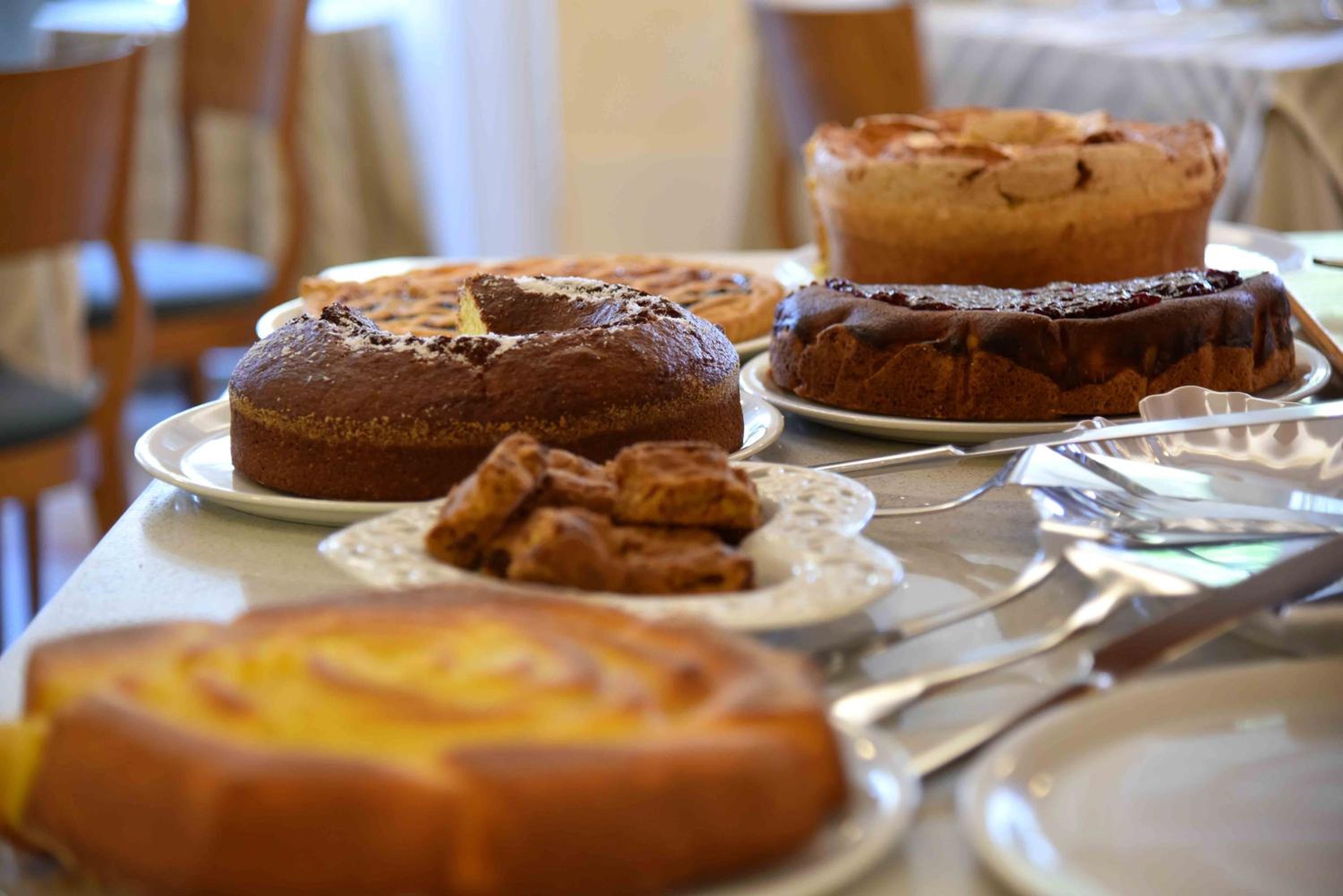 Start your day with a delectable buffet breakfast featuring homemade cakes and a variety of savory options. The snack bar is at your service throughout the day for a quick bite or a refreshing drink.