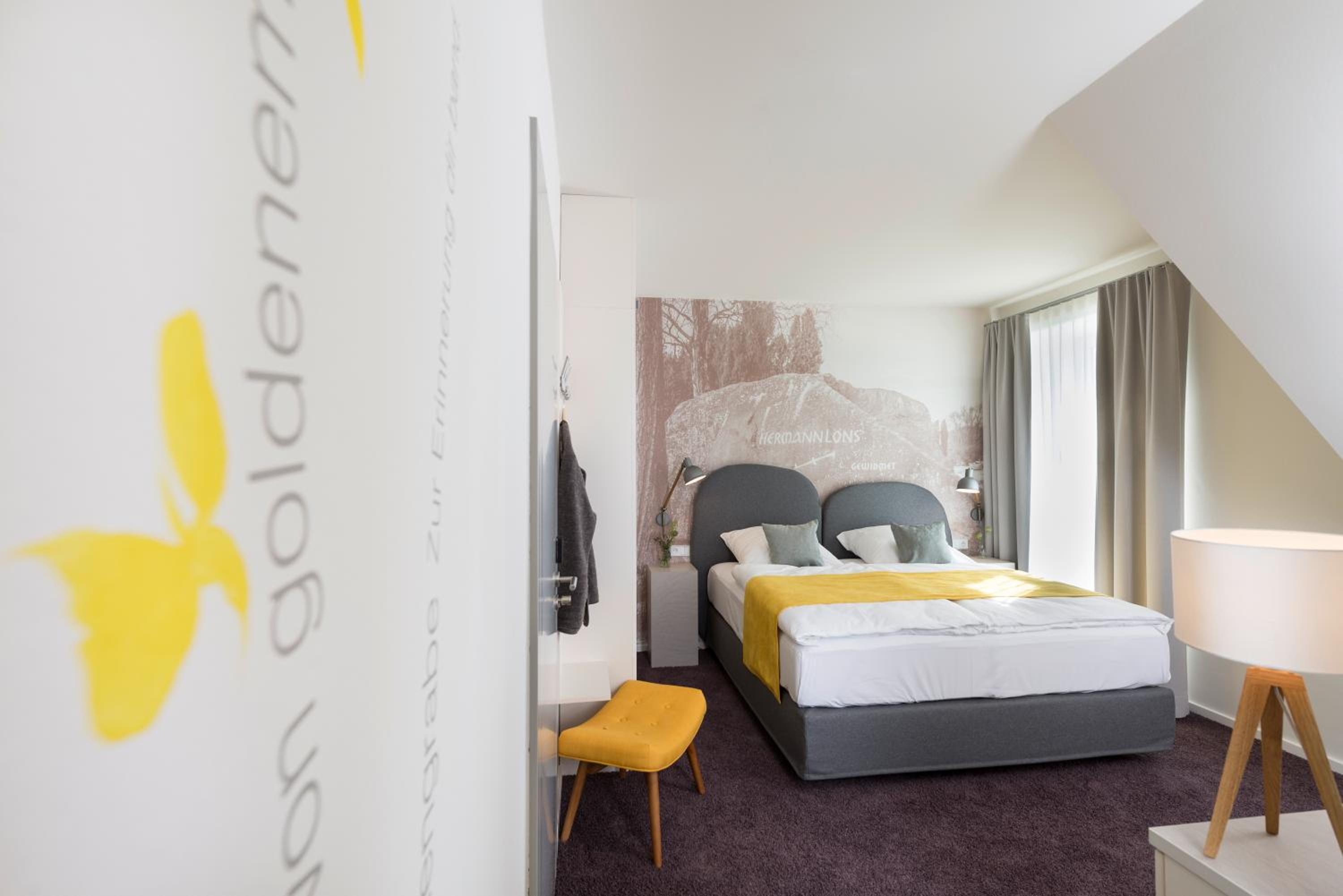 Unwind in a room featuring a poem by Herman Löns and motifs from the Lüneburg Heath, connecting you with the surroundings. Explore nearby attractions like the Snow Dome and Aqua Mundo, easily accessible with a shuttle bus stopping right outside.
