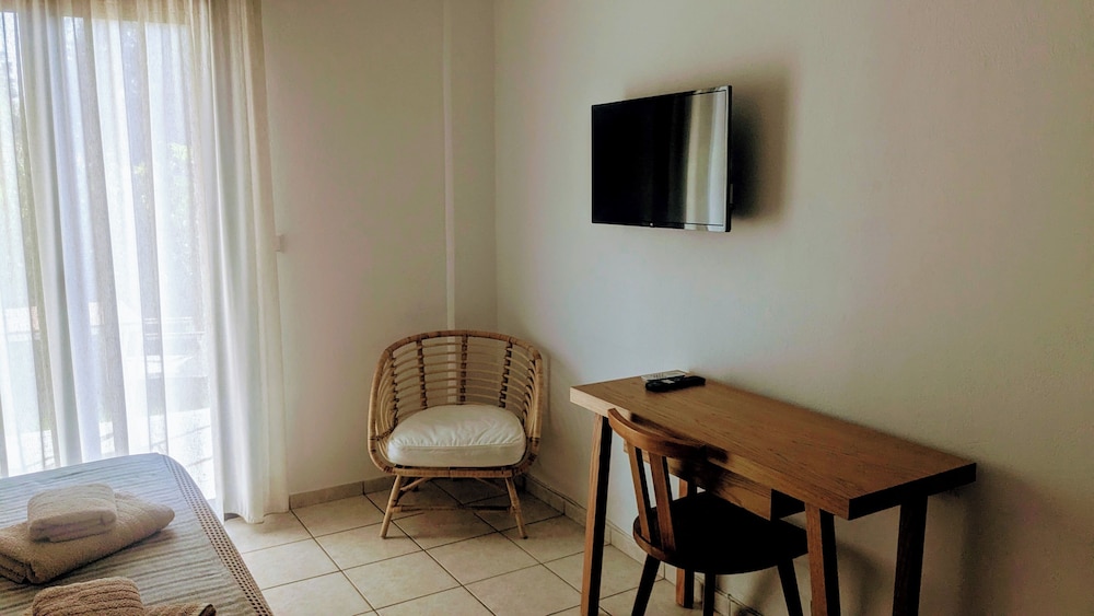 Posizione perfetta per girare l’isola, molto silenziosa e rilassante. Struttura con stanze riservate con giardino o balconcino, frigobar, aria condizionata e cassetta di sicurezza. Ci è piaciuto molto il materasso davvero confortevole, pulizia presente, cambio asciugamani frequente, Poppi, una signora carinissima e disponibile! Colazione ottima, dolce o salata top, bravo Nicholas un uomo tuttofare! Gentilissimo e pronto a risolvere anche gli imprevisti importanti! Grazie a tutta la famiglia, siamo state bene e ci siamo sentite accolte. Difronte la struttura c’è un supermarket così come se ne trovano frequentemente lungo la strada e molti ristoranti/taverne per tutti i gusti. Cucina greca top praticamente in tutti. Aeroporto e Town a circa 10/15 minuti in auto, le spiagge raggiungibili molto facilmente sia sud che nord. Nicholas vi consiglierà per il meglio. Assolutamente consigliato, rimarrete soddisfatti! Grazie! :-)))
