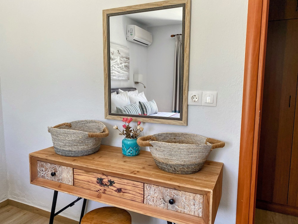 Great location between 2 beaches. Bus stop 15 close by. Great tavernas locally. ATM out side. Modern comfortable facilities. Excellent breakfast. Great hosts. Nothing to dislike.