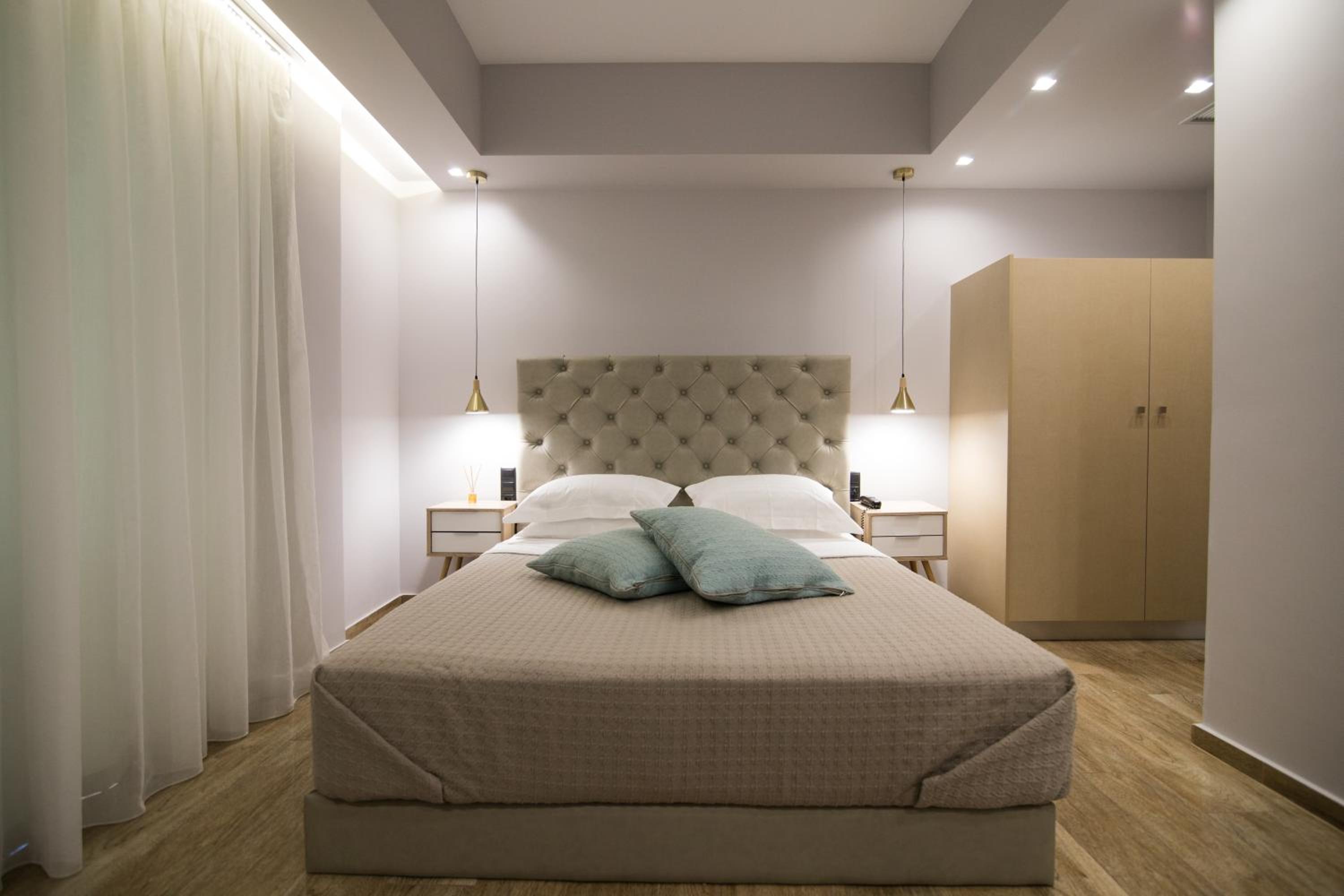 Indulge in comfort and style at Aianteion Bay Luxury Hotel & Suites. Each air-conditioned room is elegantly furnished with modern amenities including a flat-screen TV, a safety deposit box, and a private bathroom. Some units even boast stunning sea views and a balcony for a truly unforgettable stay.