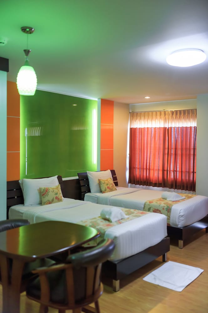 Location near Bung Ta Lua Park is the big draw and our main reason for selecting this hotel. However, we were less satisfied with room. May have been our room but the mattress was hard and uncomfortable. A/C unit noisy and could not be set slower fan setting. Bathroom shower curtain needs replacing and not washed. Cabinet doors needs fixing. Breakfast was just adequate so we skipped going 1 of 3 mornings.