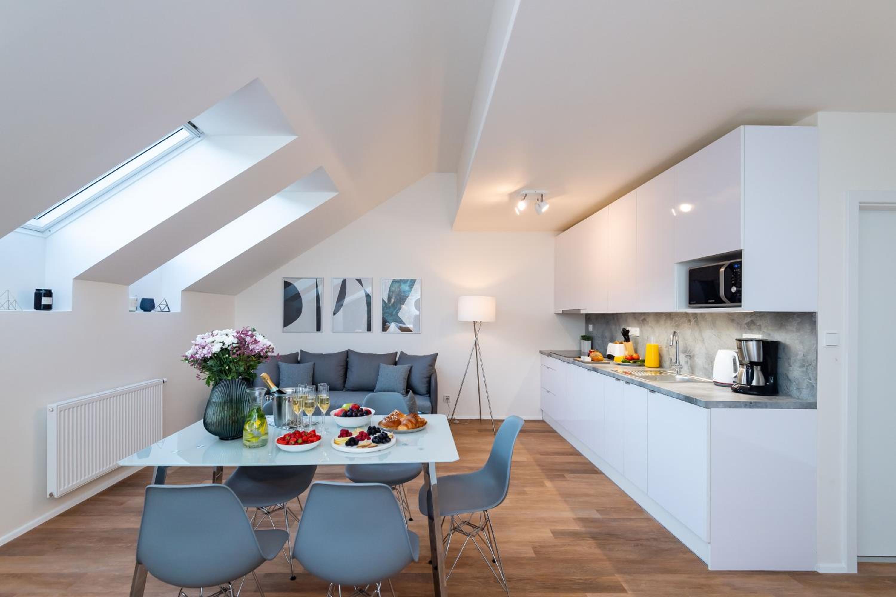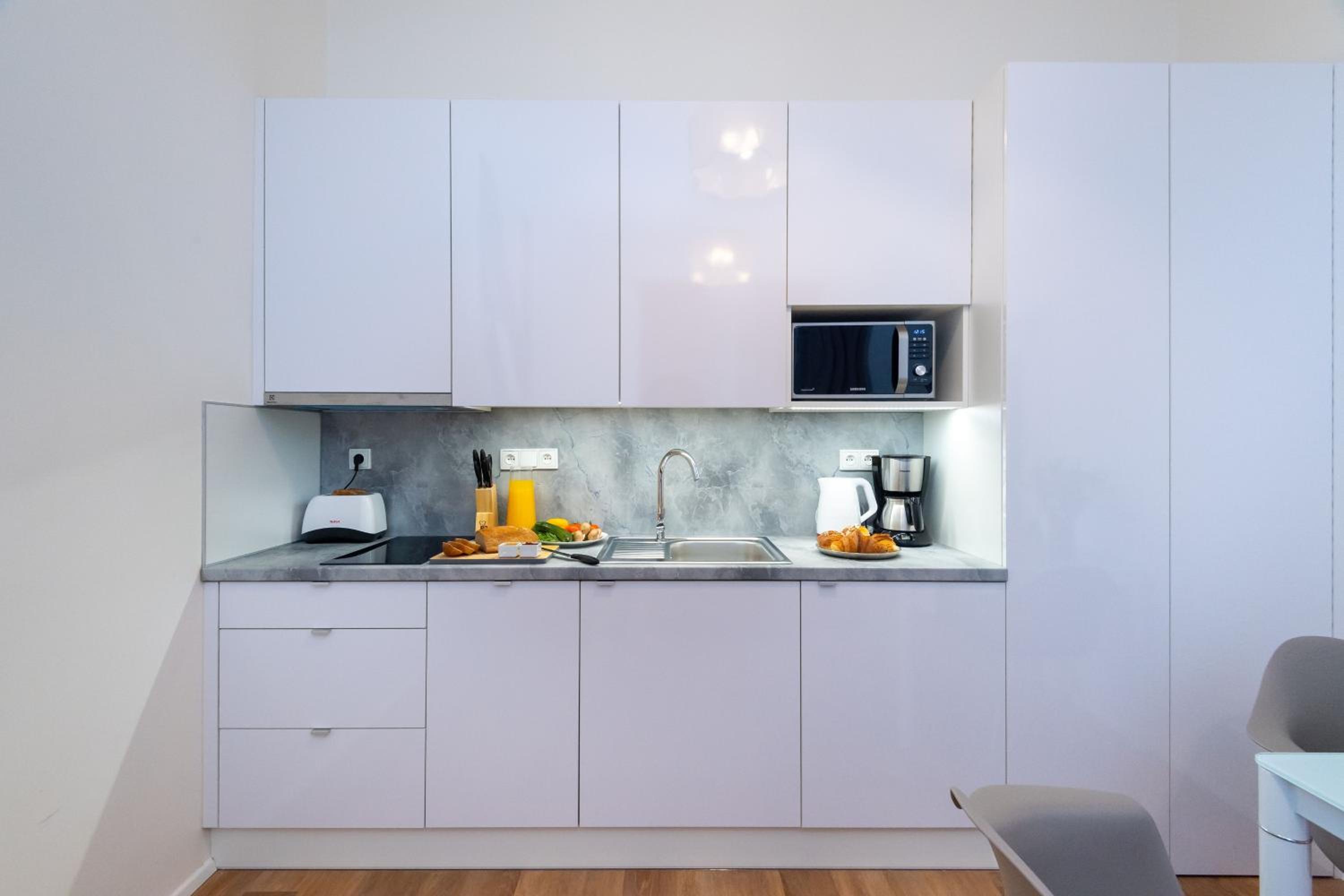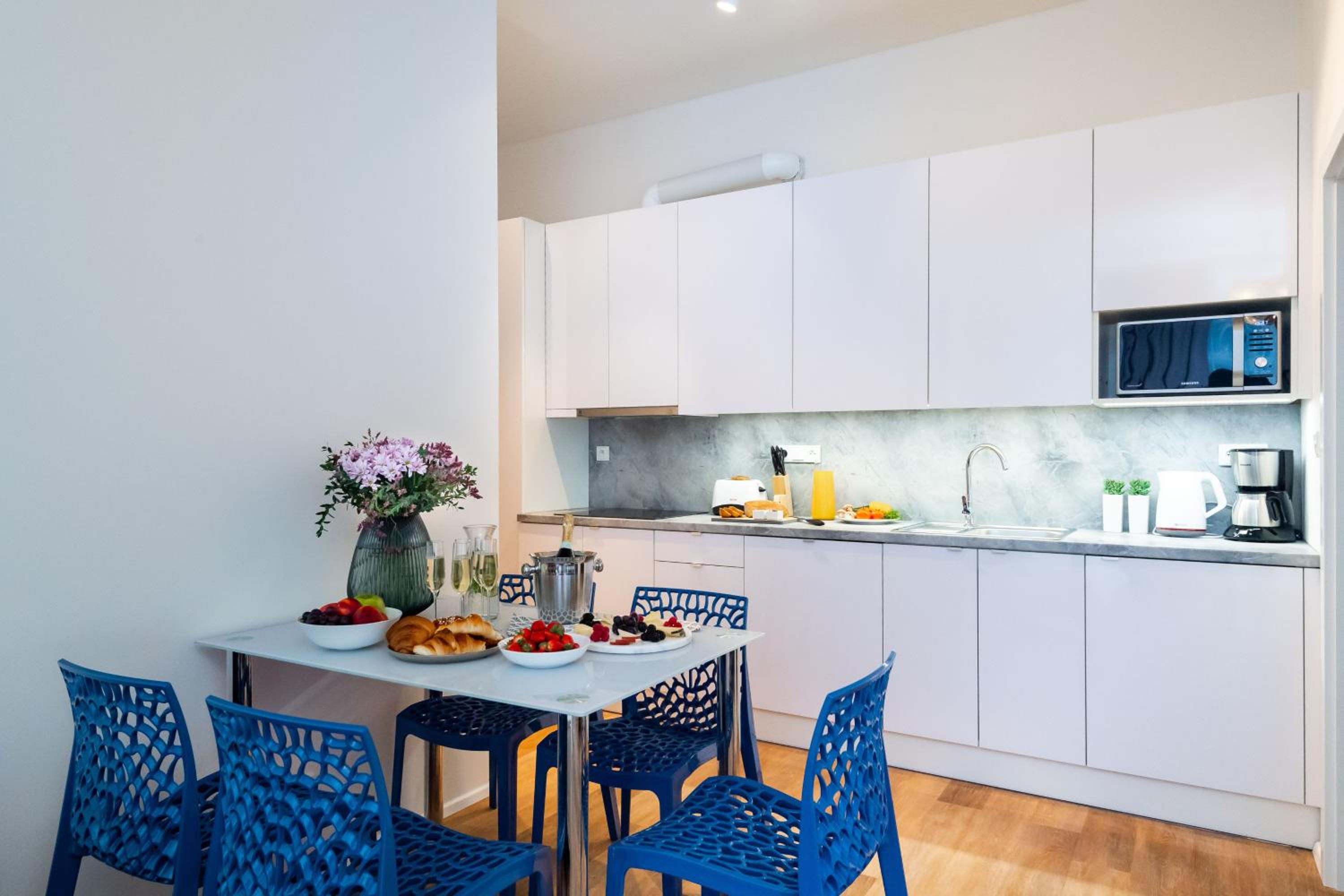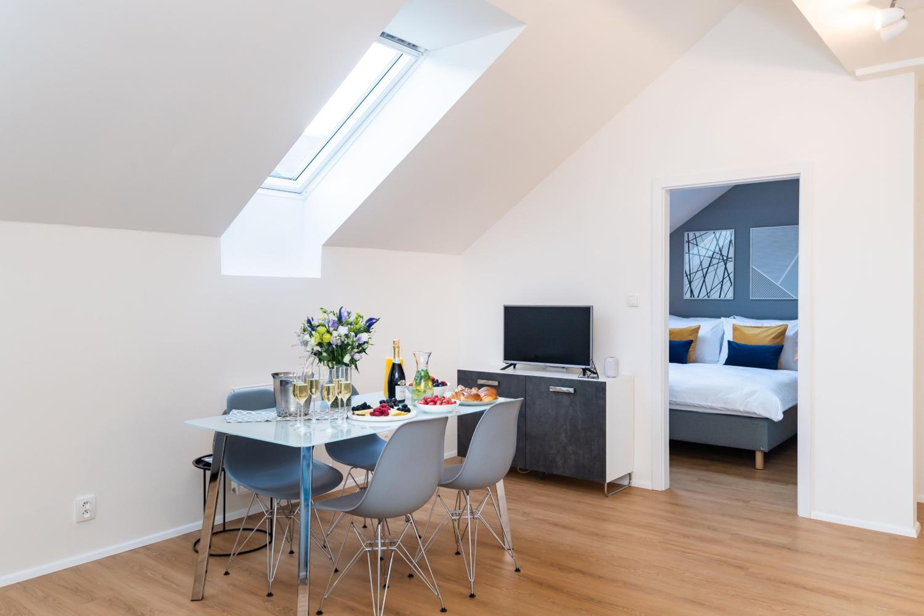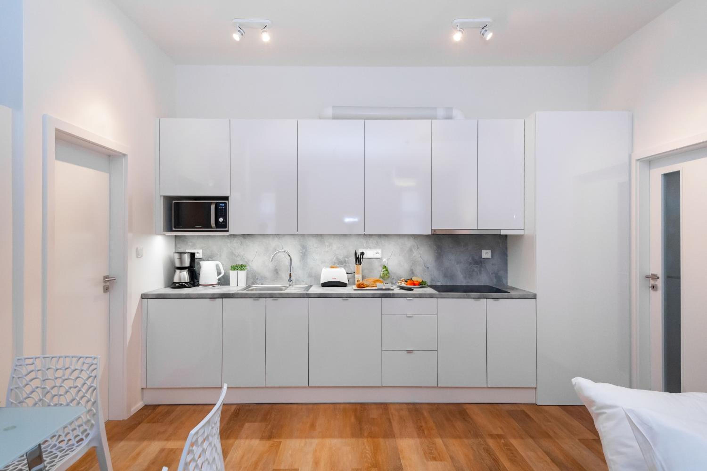 Seven Wishes Boutique Residence in Prague offers stylish apartments with premium amenities such as 4K Smart TVs, comfortable beds, and modern kitchens. Some units even boast a charming terrace for guests to enjoy.