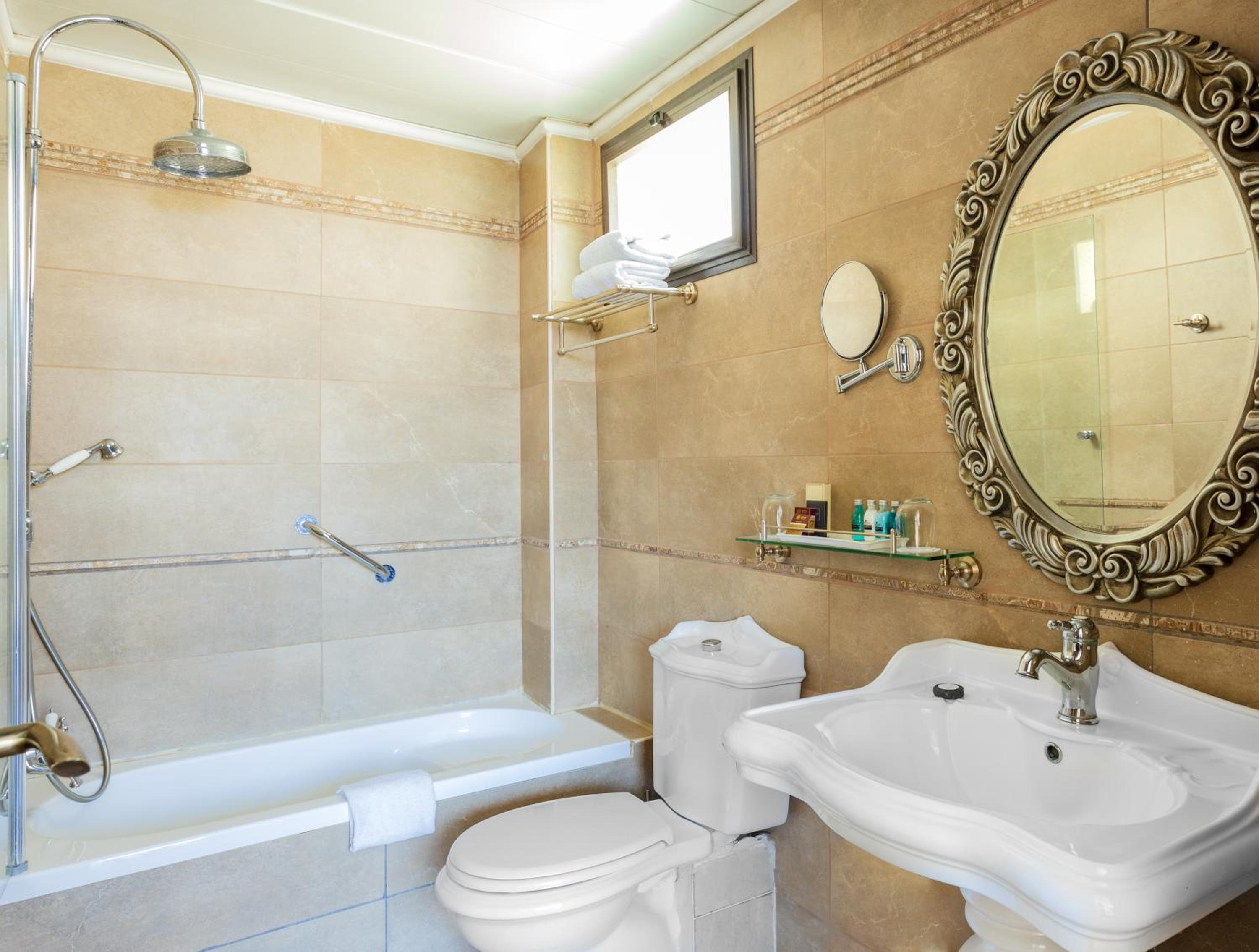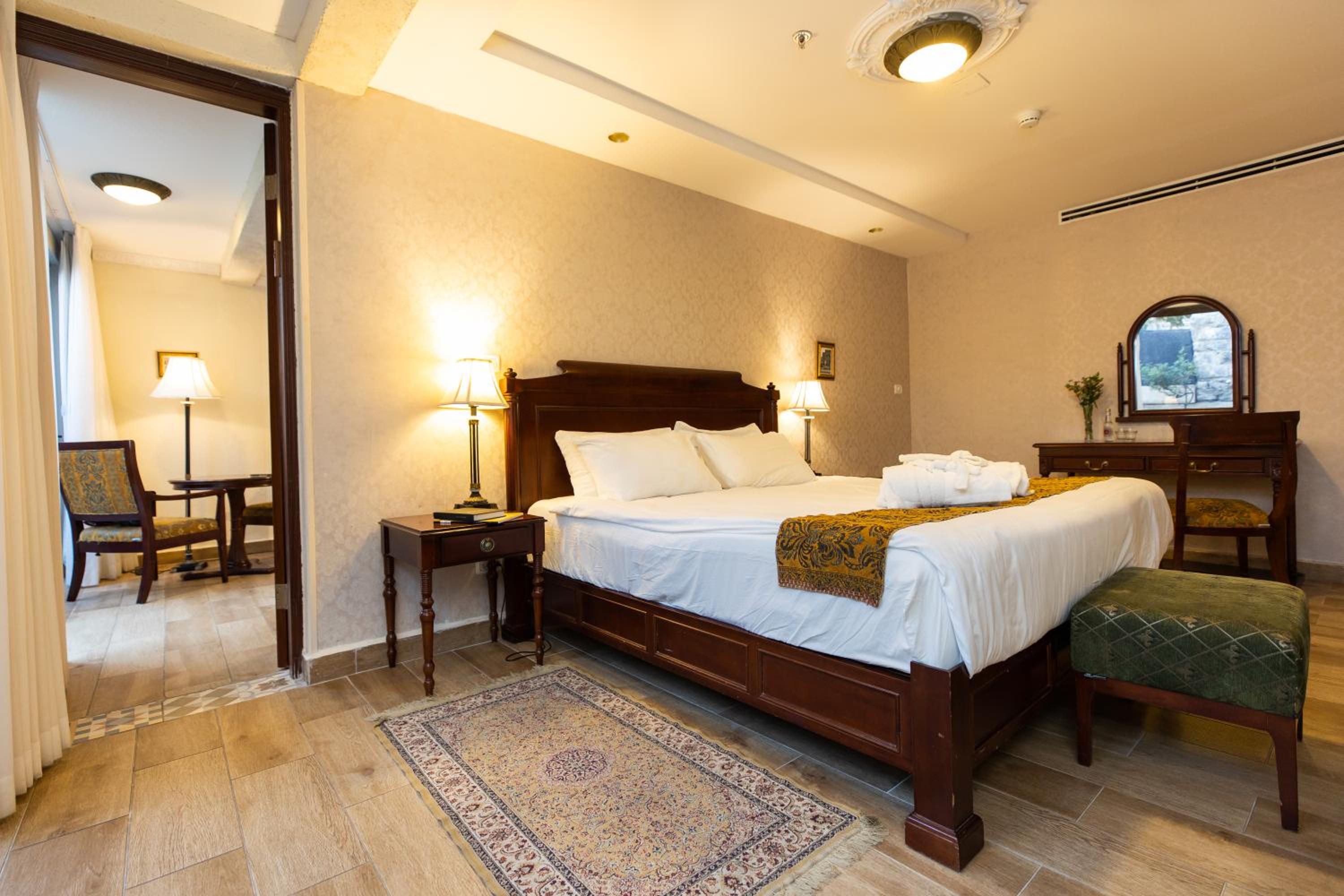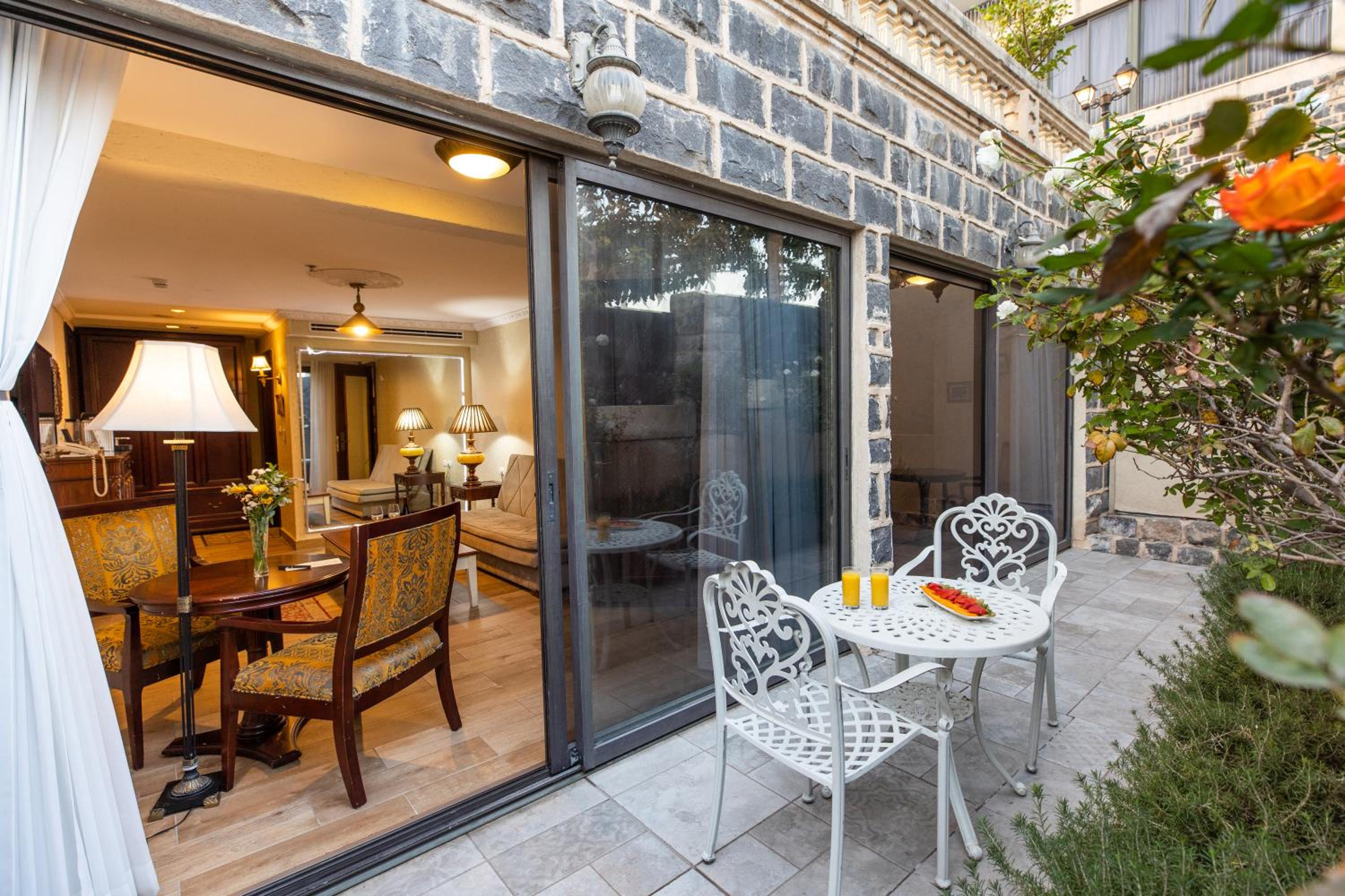 Europa 1917 Hotel in Tiberias offers air-conditioned rooms and suites with modern amenities including flat-screen TVs, safes, and minibars. The private bathrooms are elegantly equipped with free toiletries and bathrobes, ensuring a comfortable stay.