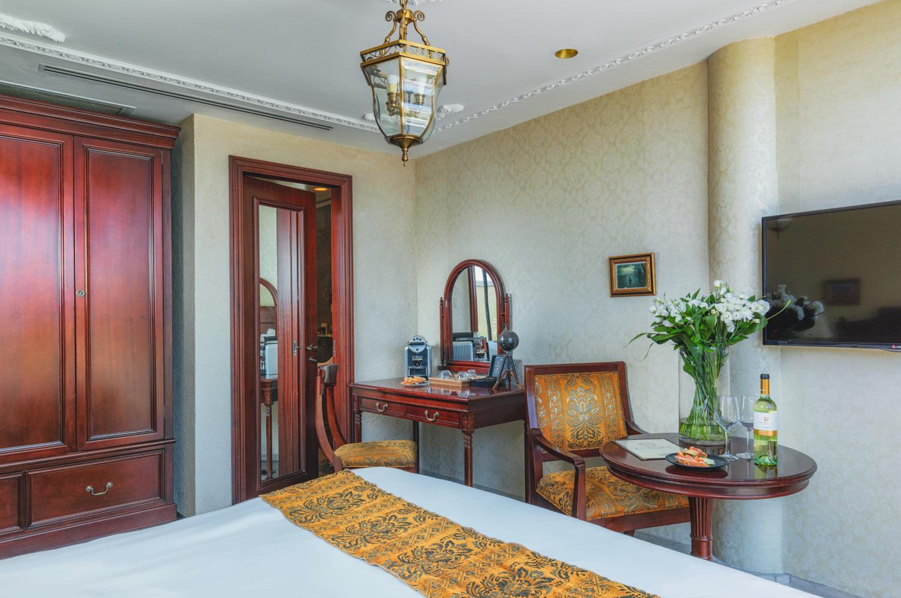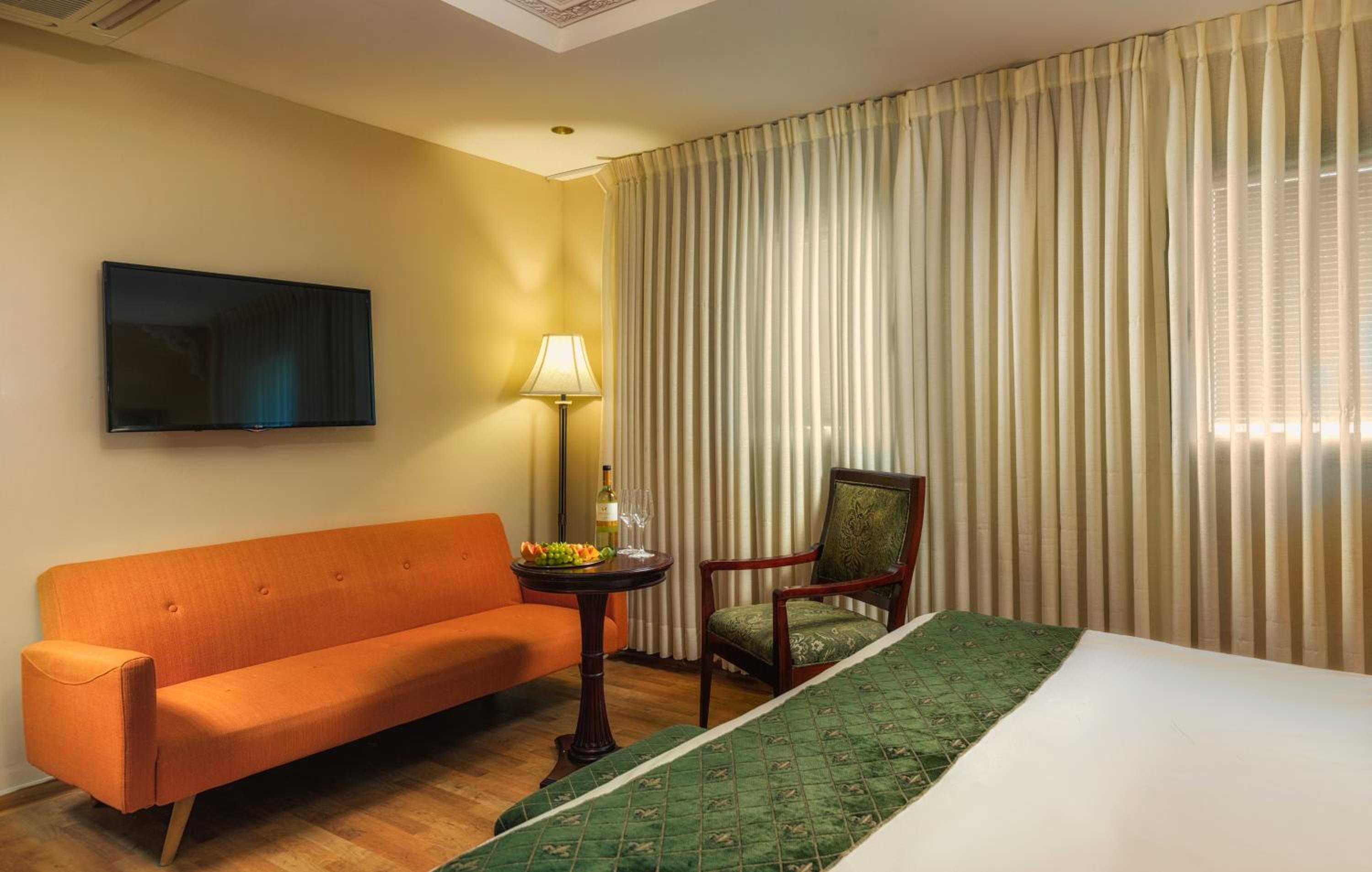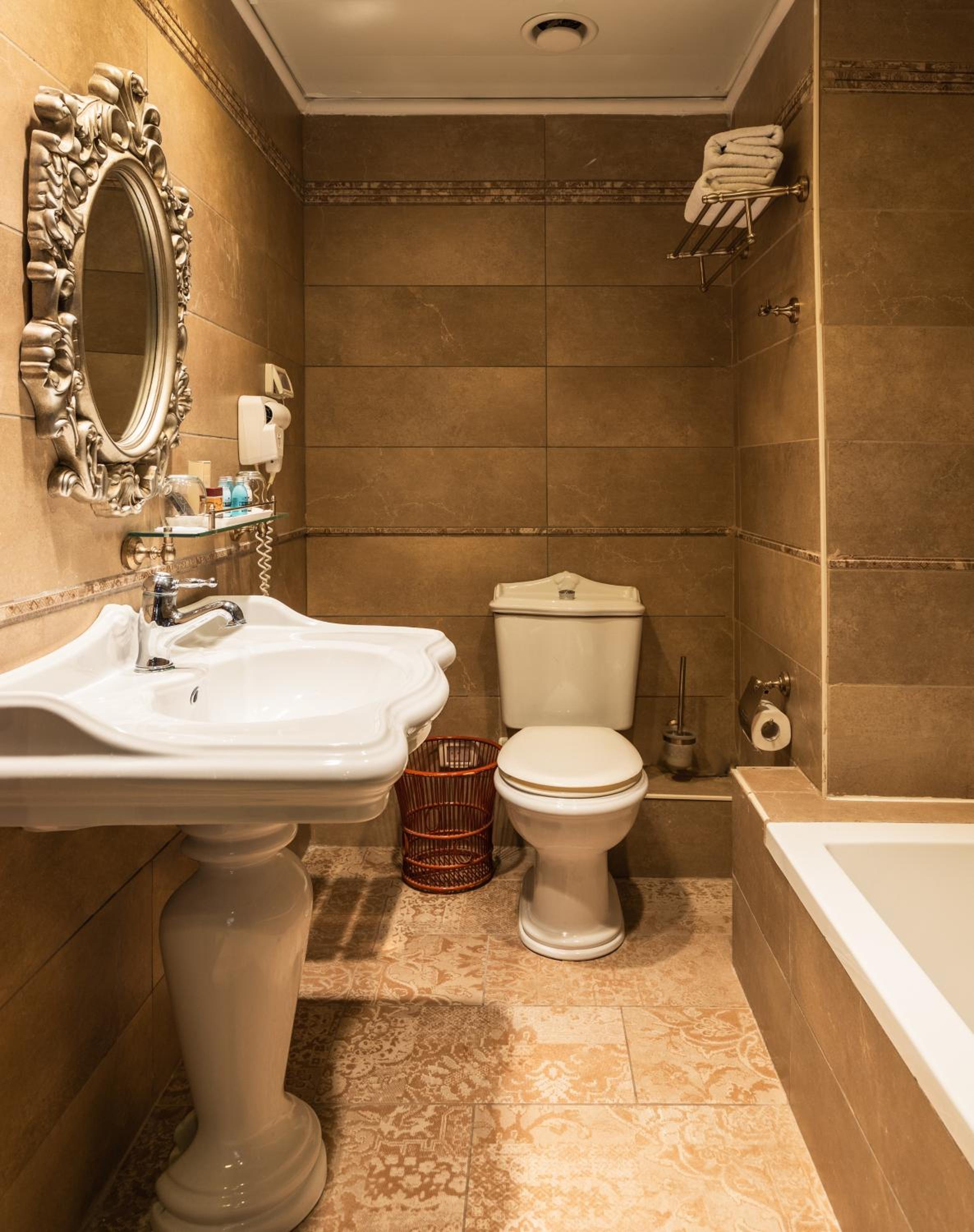 Europa 1917 Hotel in Tiberias offers air-conditioned rooms and suites with modern amenities including flat-screen TVs, safes, and minibars. The private bathrooms are elegantly equipped with free toiletries and bathrobes, ensuring a comfortable stay.