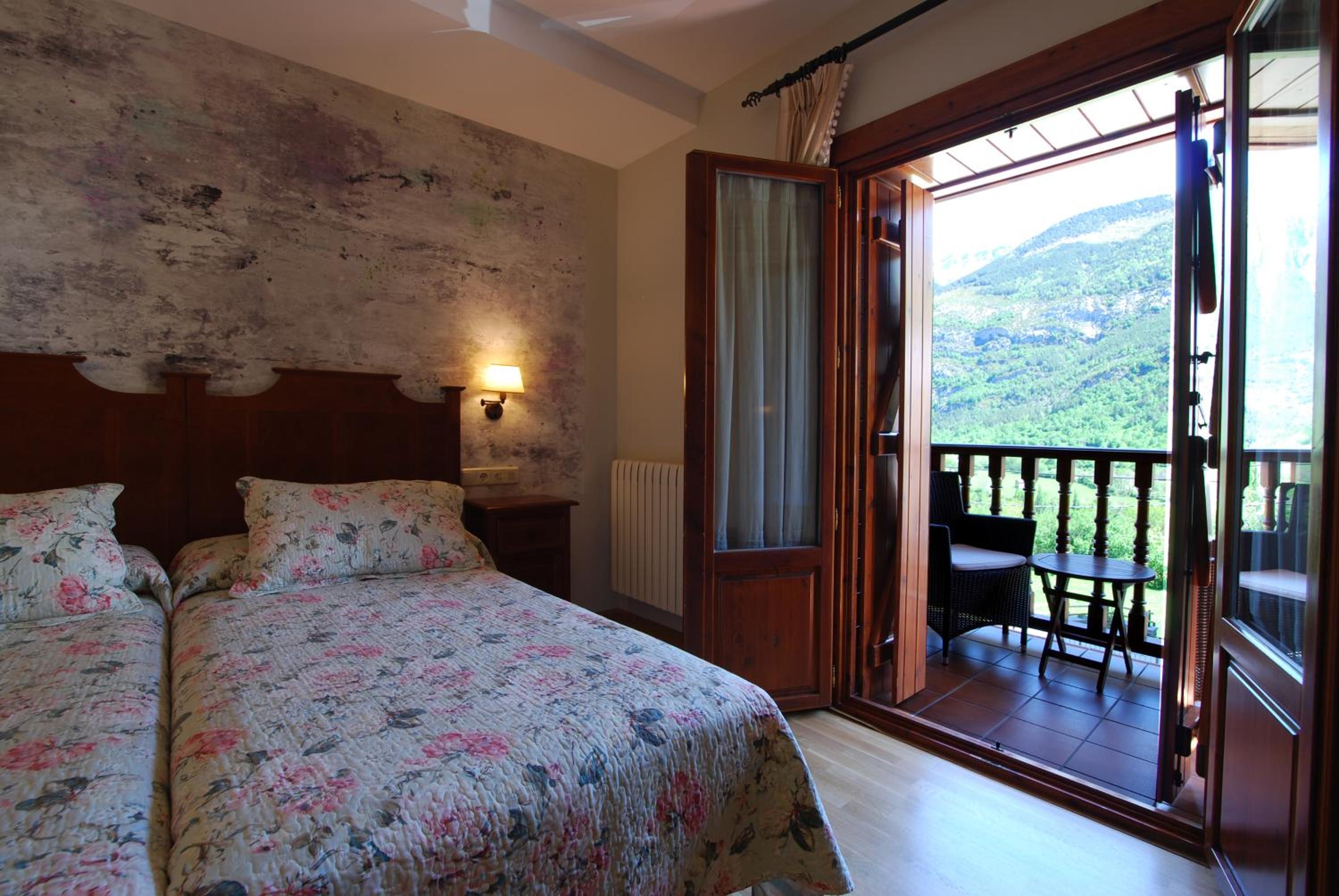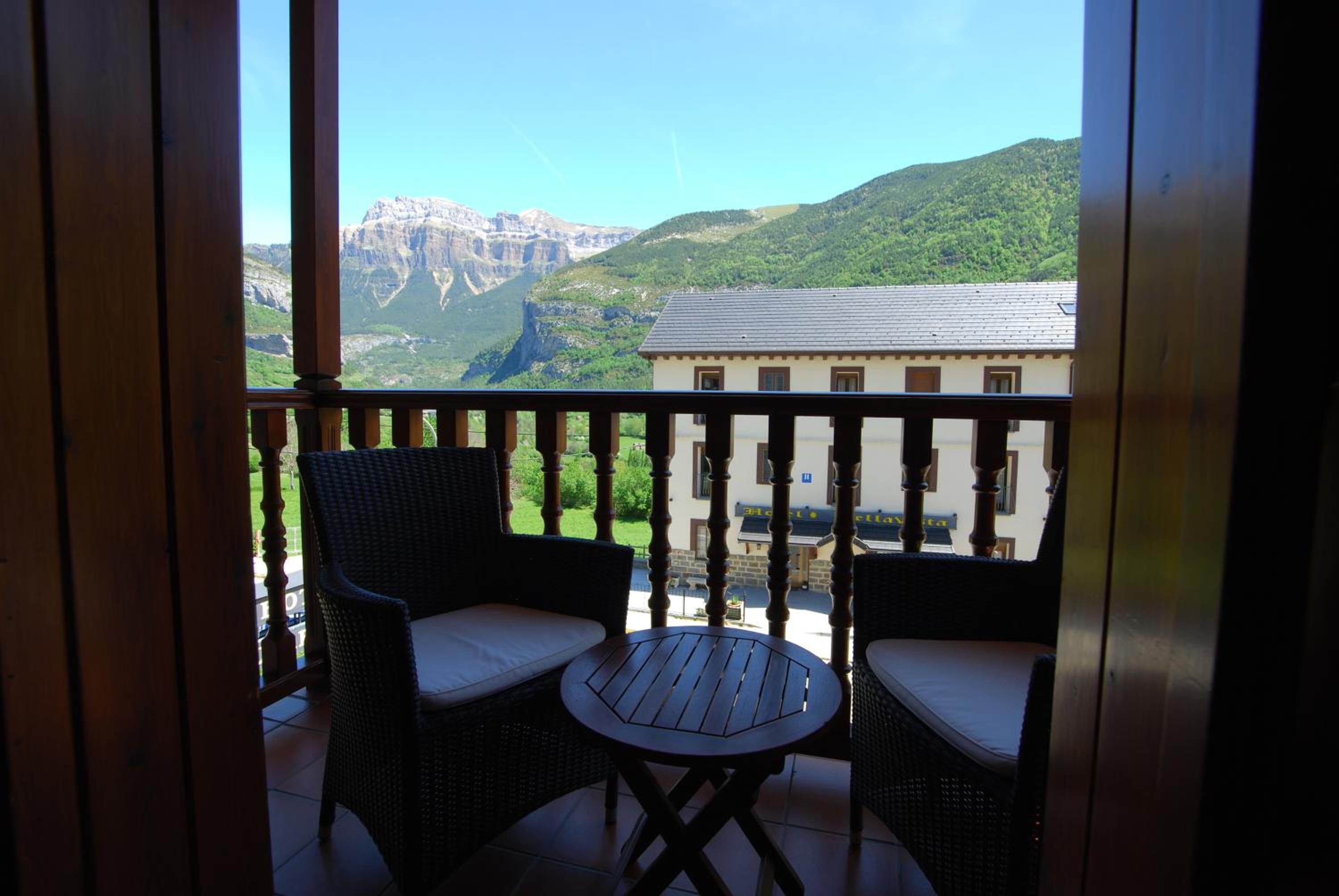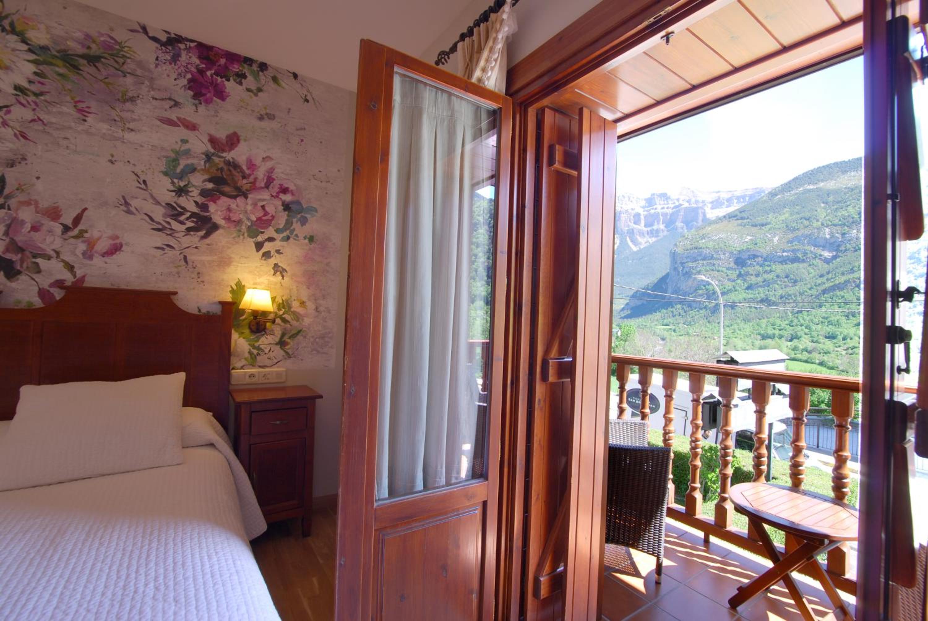 Hotel Bujaruelo boasts rooms with balconies offering stunning mountain views and complimentary Wi-Fi access, perfect for staying connected while enjoying the picturesque surroundings.