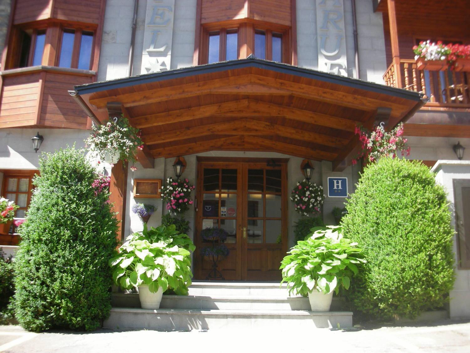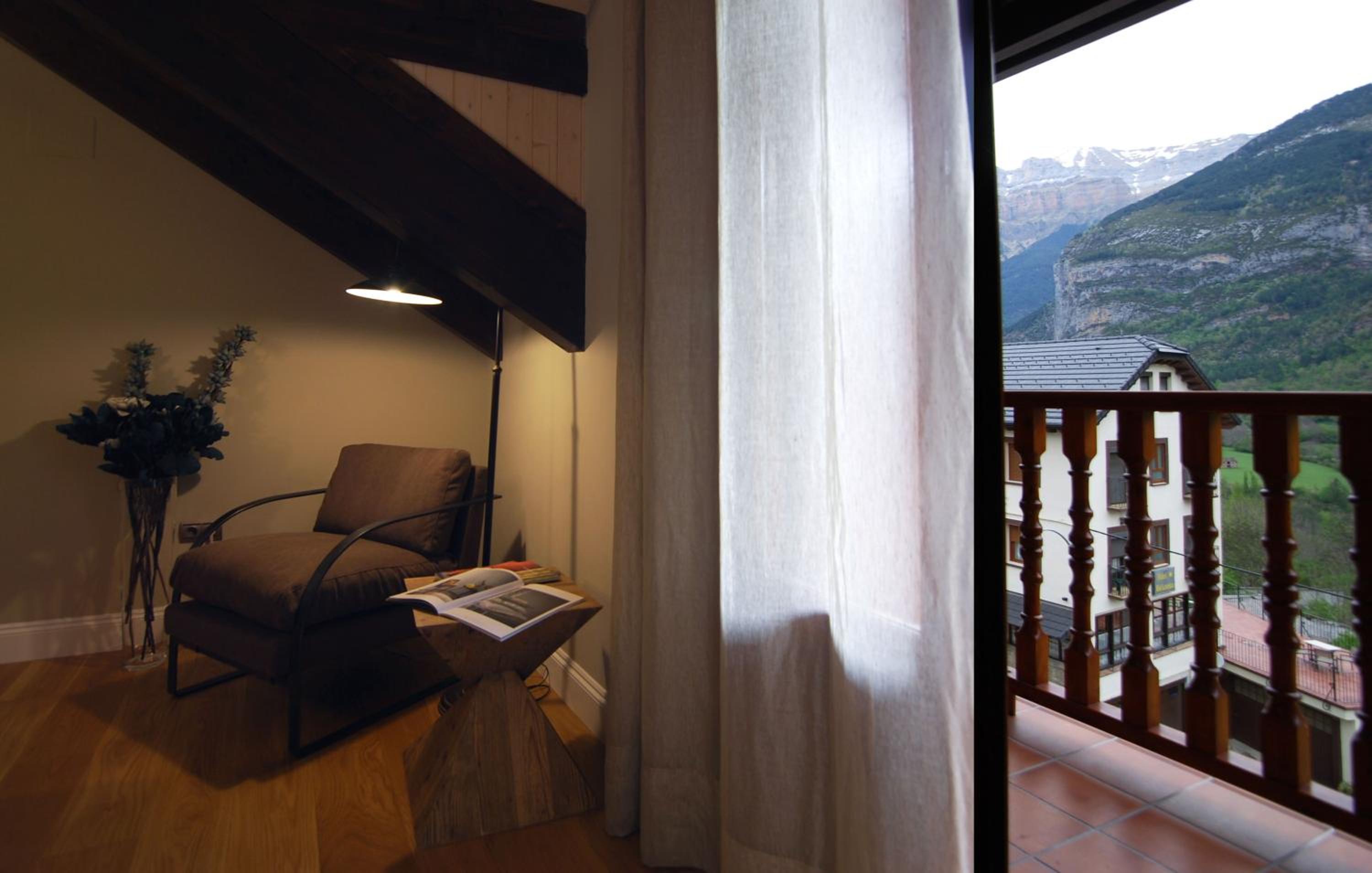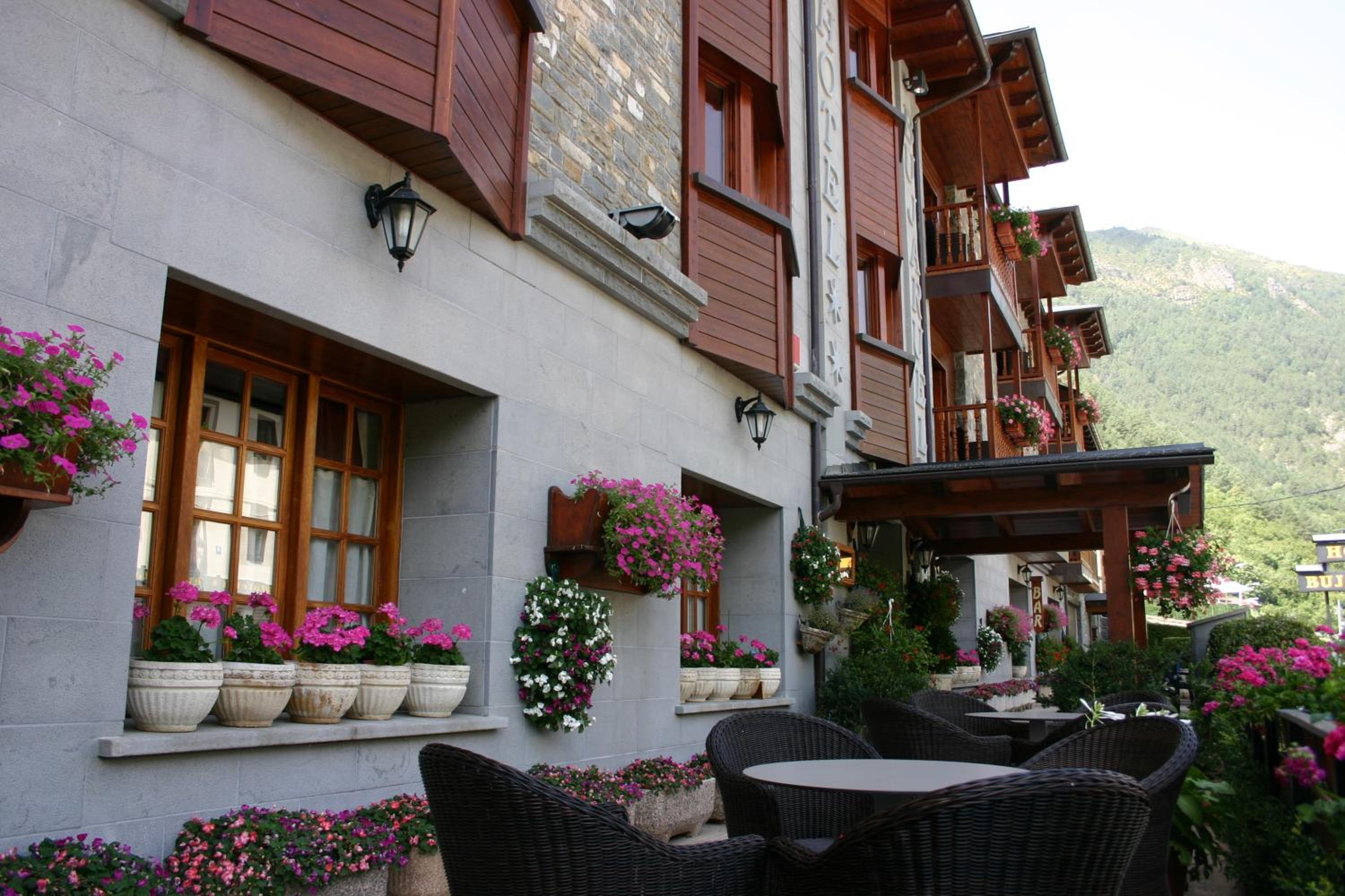 Hotel Bujaruelo boasts rooms with balconies offering stunning mountain views and complimentary Wi-Fi access, perfect for staying connected while enjoying the picturesque surroundings.