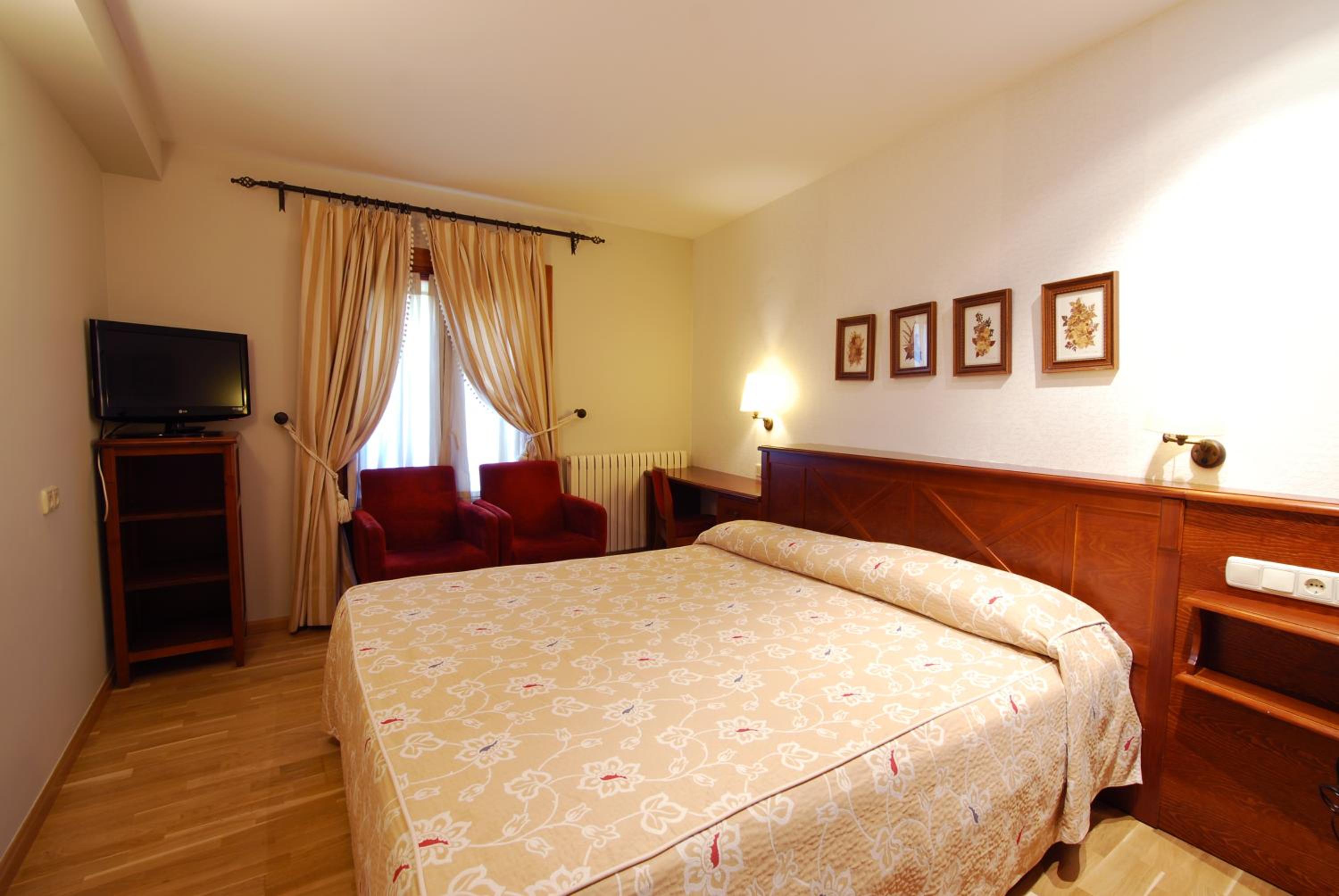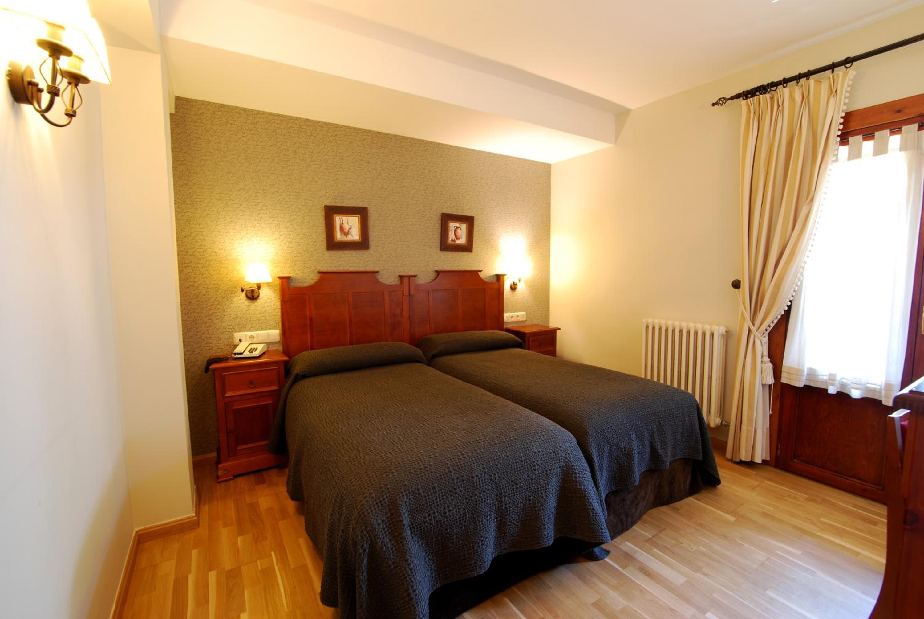 Experience the charm of wooden floors, mountain-style design, and some rooms even have wooden roof beams. Each room at Hotel Bujaruelo offers a cozy retreat with a private bathroom, ensuring a comfortable stay.