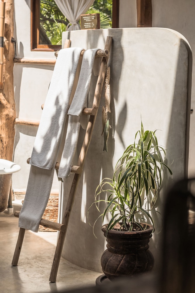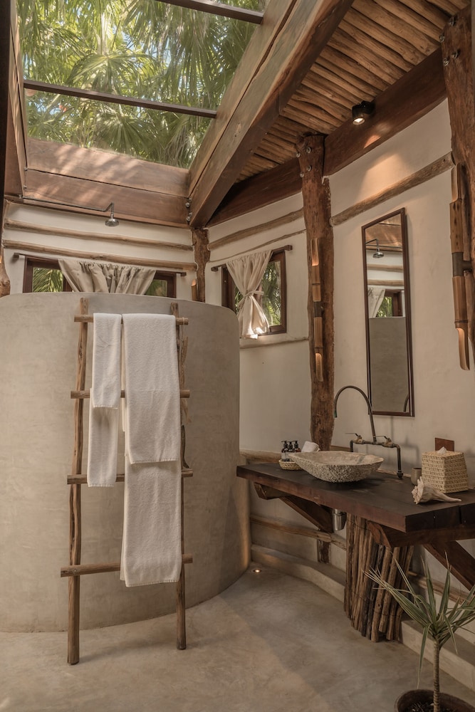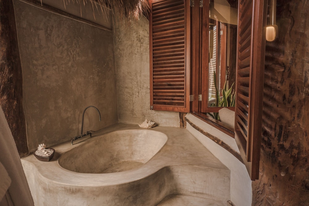 Really disappointed in Delek. The reviews and photos sold us on staying here for my birthday trip. I regret it. The grounds smell like sewage as soon as you walk in. Our suite was poorly maintained. The bathrooms don’t have AC, the doors to the patio don’t close, the full suite was hot even at night in January. They gave us one towel for two people the entire 3 night stay. Understand they are going for an eco hotel vibe but the sinks barely worked, the faucets were so rusty you could feel it in your skin. Not a good experience. We utilized the beach beds one day and the food and beverage was very disappointing. Worst pina colada in Tulum. They are trying to rip off Azulik and not doing it well. Save your money and splurge at Sana further south.