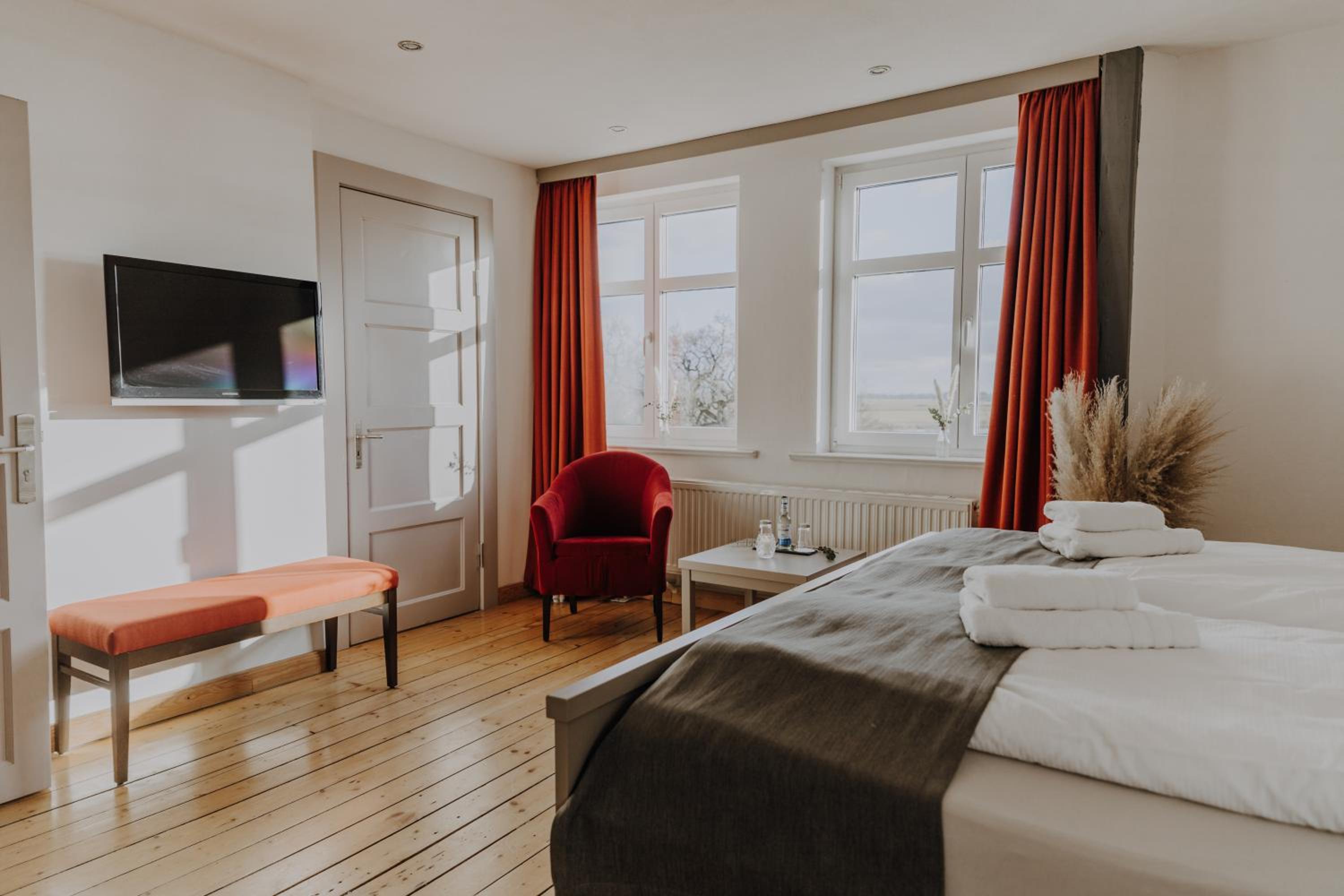 Wir waren bereits in der Vergangenheit in dem Hotel uns sind immer wieder gerne dort. Sehr gutes Restaurant, ausreichend Parkplätze direkt am Hotel. Jetzt hatten wir ein Zimmer im separaten Gebäude mit direktem Blick auf die Treene. Wir waren leider nur für eine Nacht geschäftlich in der Region. Für einen Urlaub ist der Standort aber auch sehr geeignet, da ein Freibad in der Treene in direkter Nähe ist und die Region auch für Fahrradtouren sehr schön ist.
