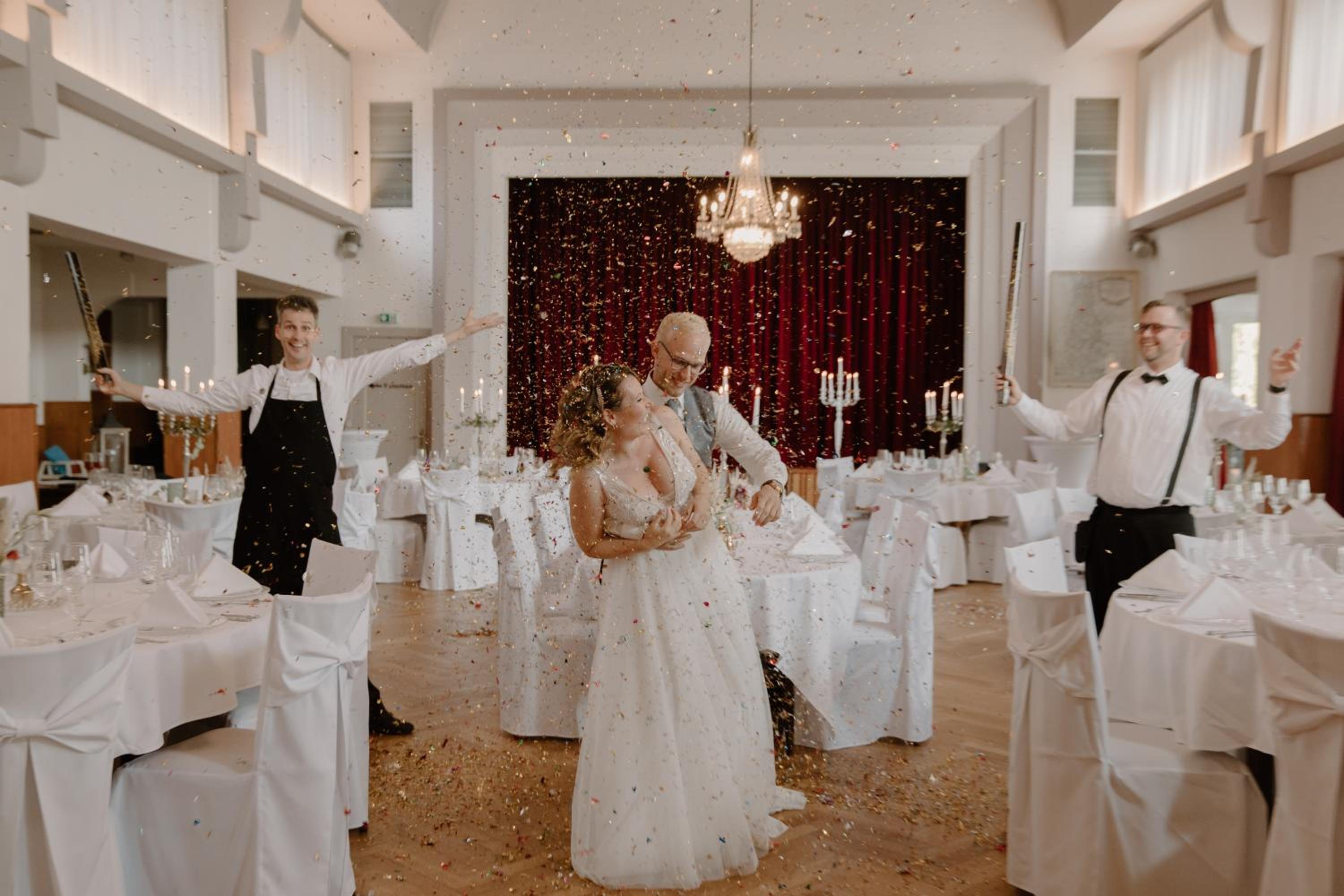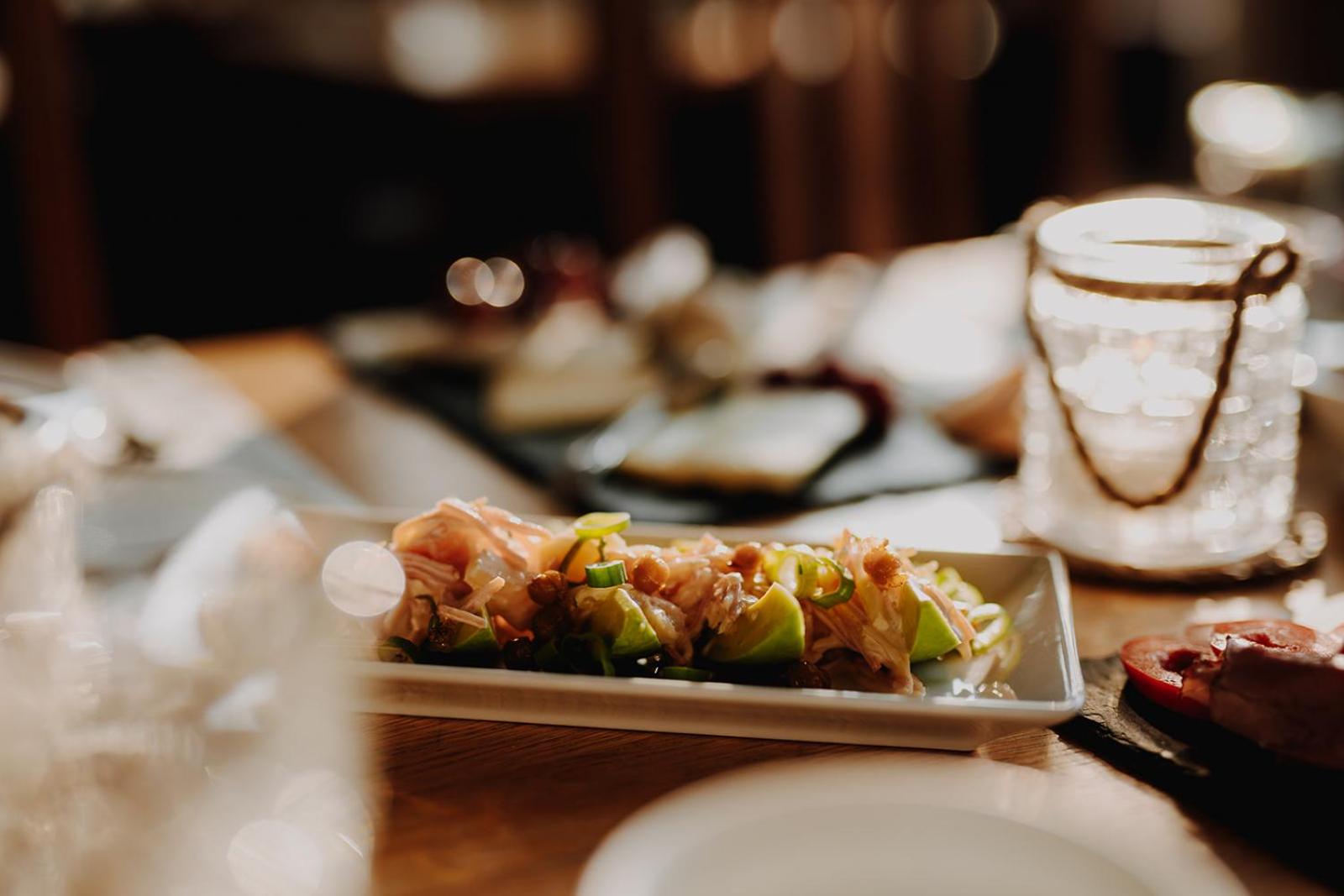 Wir durften am Silvesterbuffet teilnehmen und waren hellauf begeistert von der Qualität und Auswahl der Speisen. Das Ambiente mit Kronleuchtern im Festsaal tat sein übriges.