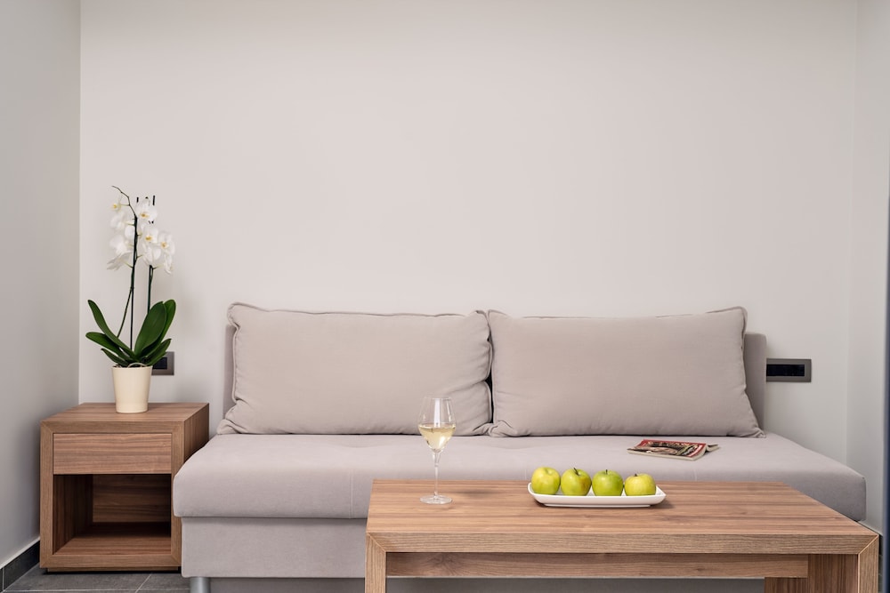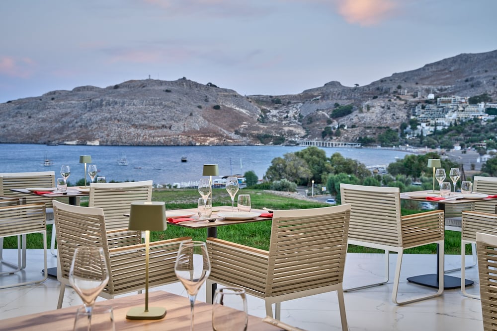 This is a beautiful, modern hotel, but it does feel a little “style over substance”. The staff were all very friendly, but in terms of the actual service provided it was a bit hit and miss. For example, it took a long time each morning for coffee to be poured and then replenished and plates to be cleared away. Plates put outside a room for collection remained there for over 24 hours on our floor. There is no casual day time pool bar, the nearby champagne bar feels very formal and is lovely in the evening, but In the day feels stiff and inaccessible. In the Italian restaurant, again the staff were very friendly, but service took a long time and when the food finally arrived it was delicious, but not hot all the way through. The restaurant is open plan at the front with a fabulous vista, but was not air conditioned so was uncomfortably hot. We asked for the overhead fans to be turned on, but these were apparently out of order. Prices are also on the steep side, although this is true of Lindos generally. Overall, although we had an enjoyable stay I would not rush back.