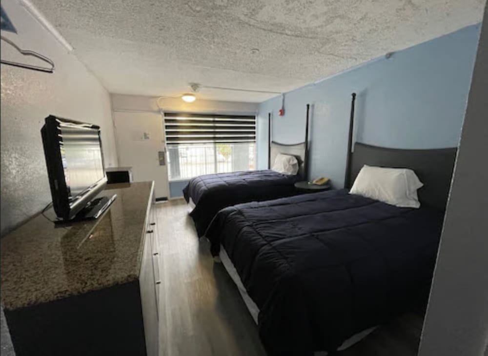 This was one of the worst hotels I’ve ever been to. There was alive and dead roaches in our room. Septic tanks laying around outside. No access to our rooms without employee to unlock our room. Bed frame look liked it was made from part of a frame from air conditioners. Trash overflowing dumpsters. We didn’t stay. I have little ones. We left immediately. The only good thing was the lady behind the desk. She did not belong in that place. She was way too clean and neat to be there. Very nice lady. My money was refunded.