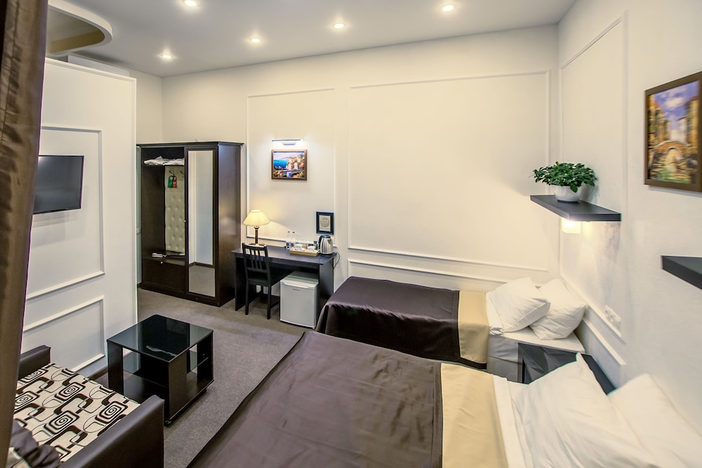 Att detta hotell finns med som ett utbud måste vara felaktigt, alla positiva recensioner måste vara fejk. När vi anlände fanns inte det rum vi beställt. De har inget elektroniskt bokningssystem utan förlitar sig på vanliga A4 papper. Vi fick ett jättelitet rum första natten på 2 vuxna och 2 barn samt erbjudna dagen efter ett så kallat modernt rum som var sjaskigt och känslan av ett källarförråd med tegelstensväggar. När jag klagade till hotellchefen satt han på en soffa med armarna längs ryggen på soffan halvliggande och bredbent med ett hånflin. Hans uppenbarelse visade en oseriös person där han uttalade "välkommen till Ryssland" samt även sade att han skulle bryta fingret på mig. Vi bytte omgående till annat hotell. Stor varning utfärdas till detta fejkhotell, där allting är uppbyggt på lögner. Hur detta hotell kan fått bra recensioner av andra användare och att det har fyra stjärnor visar att systemet brister någonstans och att all denna information kommer från hotellet själva. Med andra ord är detta ett bluffhotell som inte hör hemma på dessa sidor.