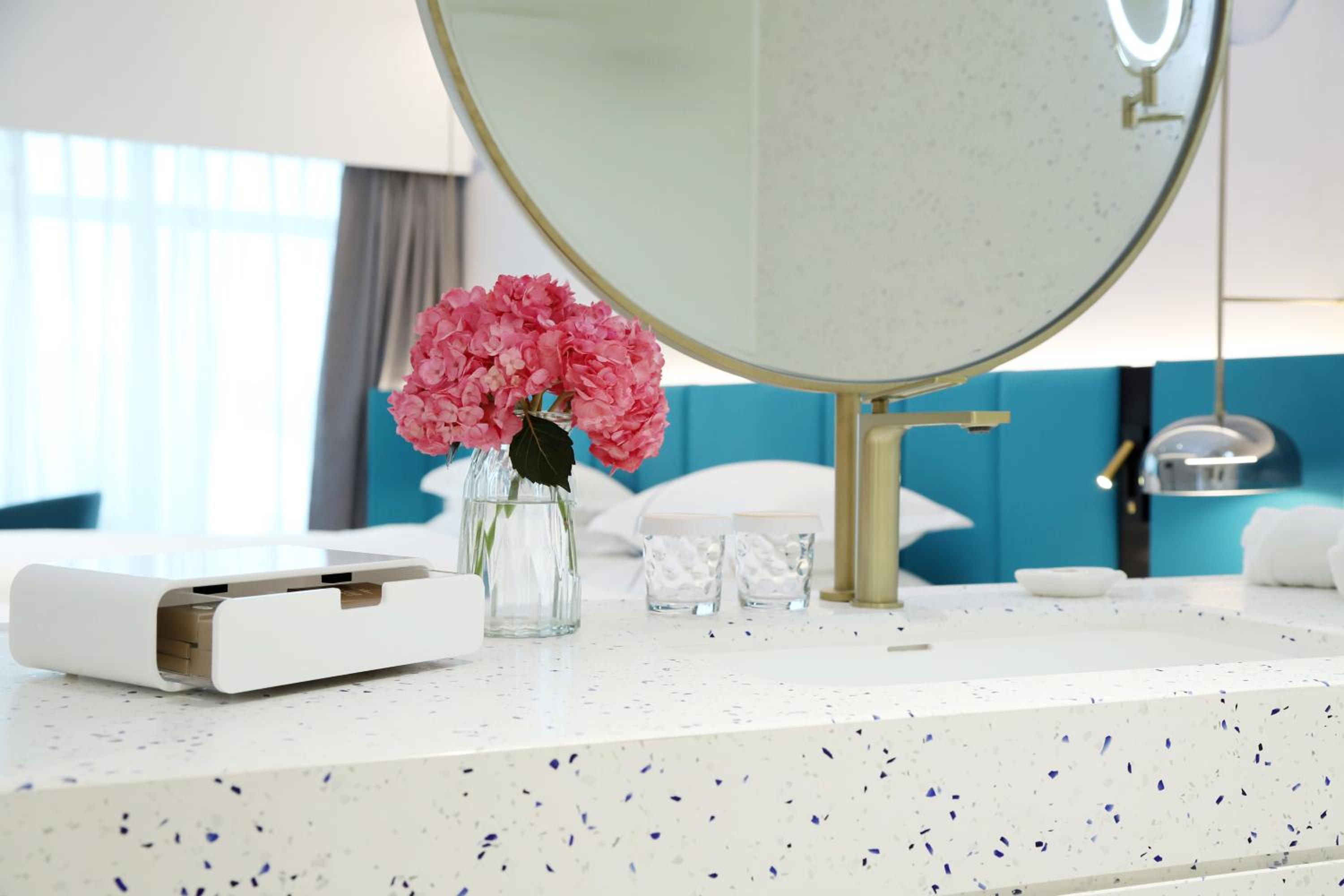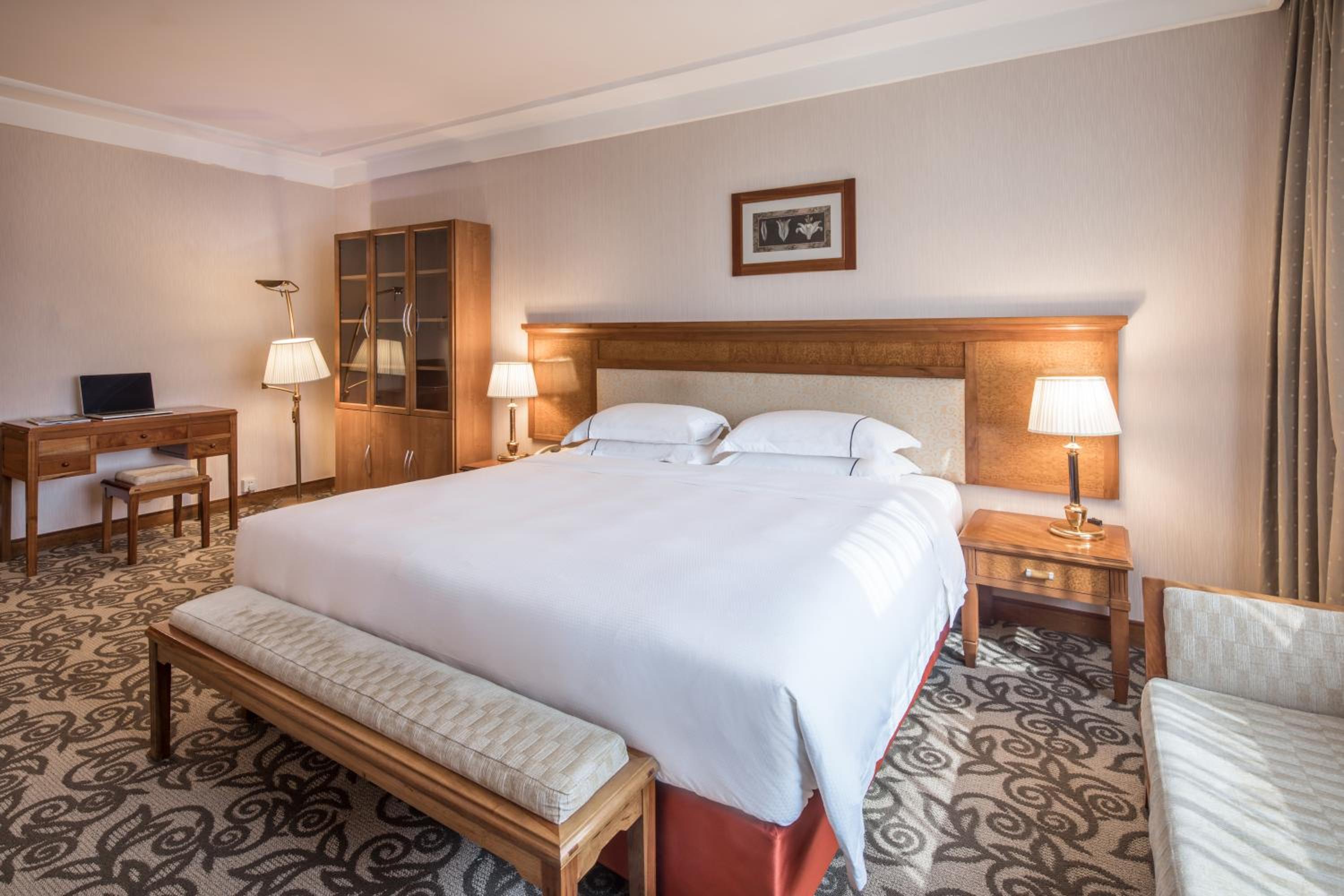 Experience comfort in rooms adorned with soothing neutral tones, equipped with modern conveniences like air conditioning, minibar, and flat-screen TV. The en suite bathrooms offer a relaxing retreat with a bathtub and complimentary toiletries.