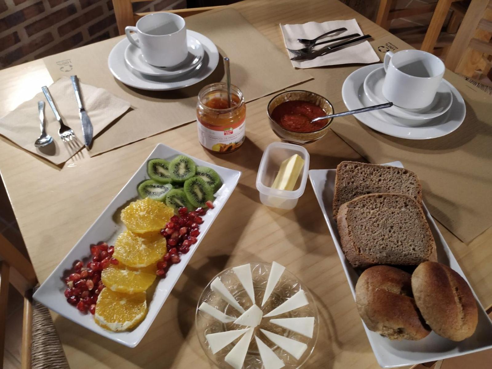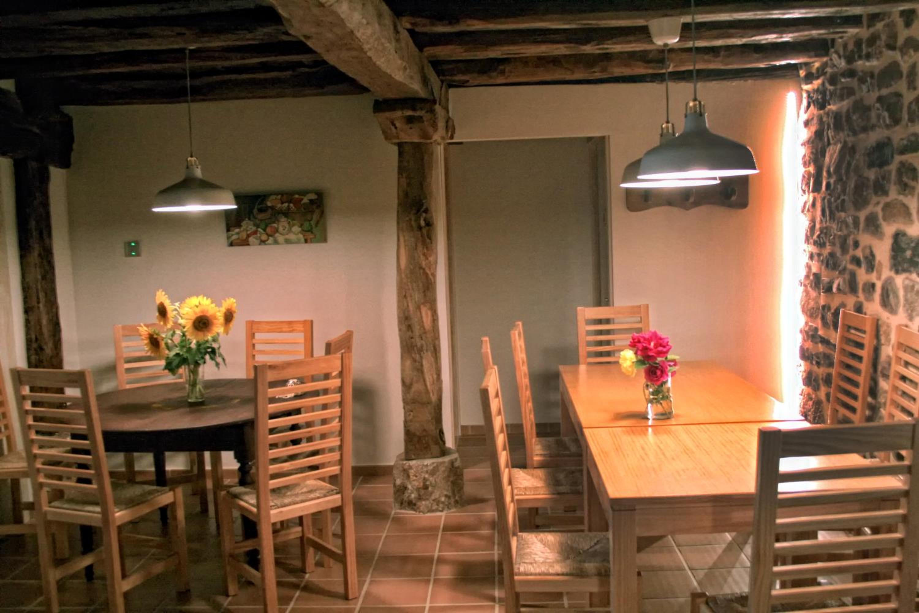 Acogedora casa rural. Desayuno buenísimo, cena también (todo vegetariano, muy elaborado, riquísimo). Jardín con mesas para relajarse tomando algo. Habitaciones bonitas y también una zona común para leer o tomar una infusión. El edificio está renovado y decorado con mucho gusto.