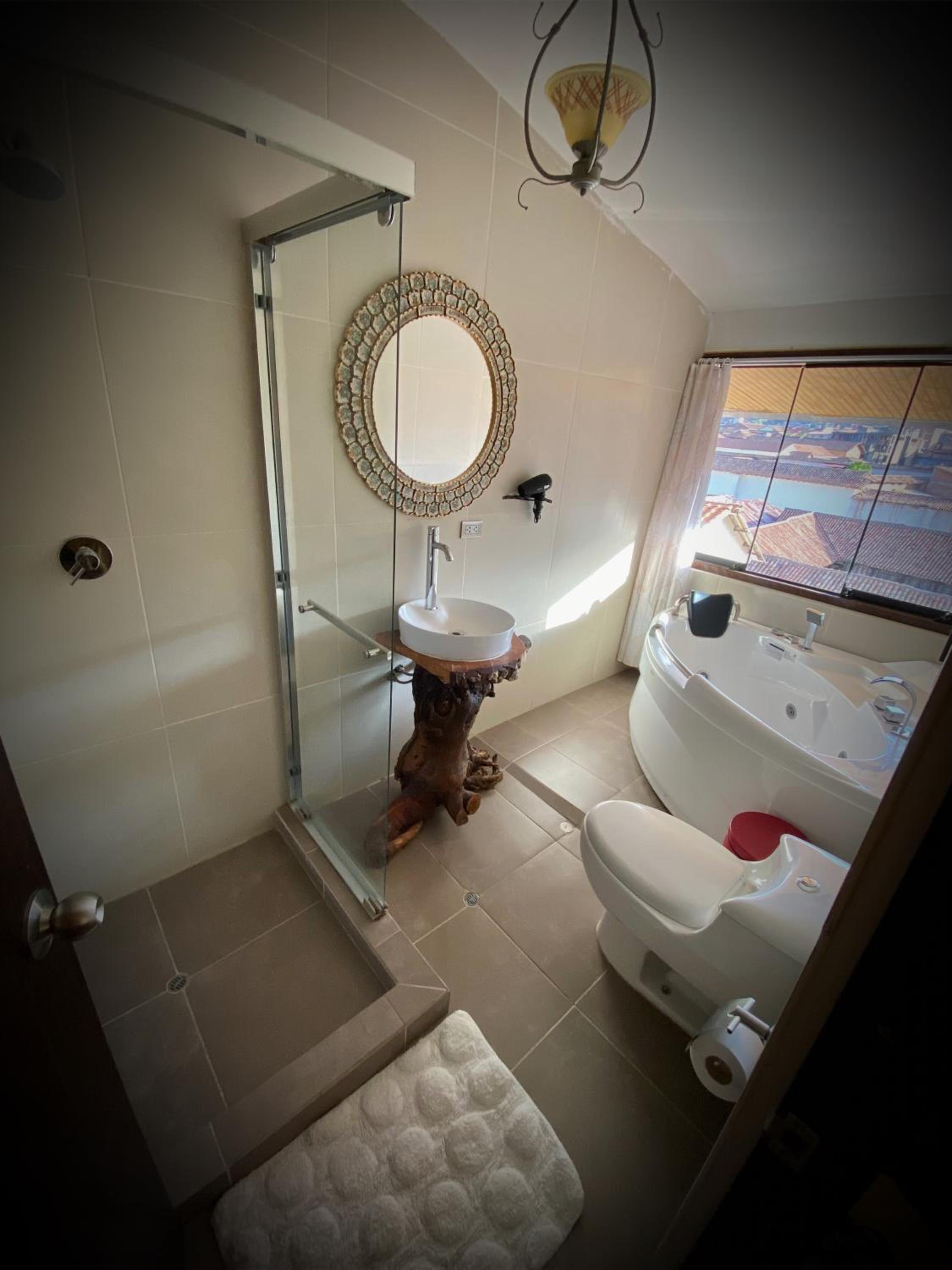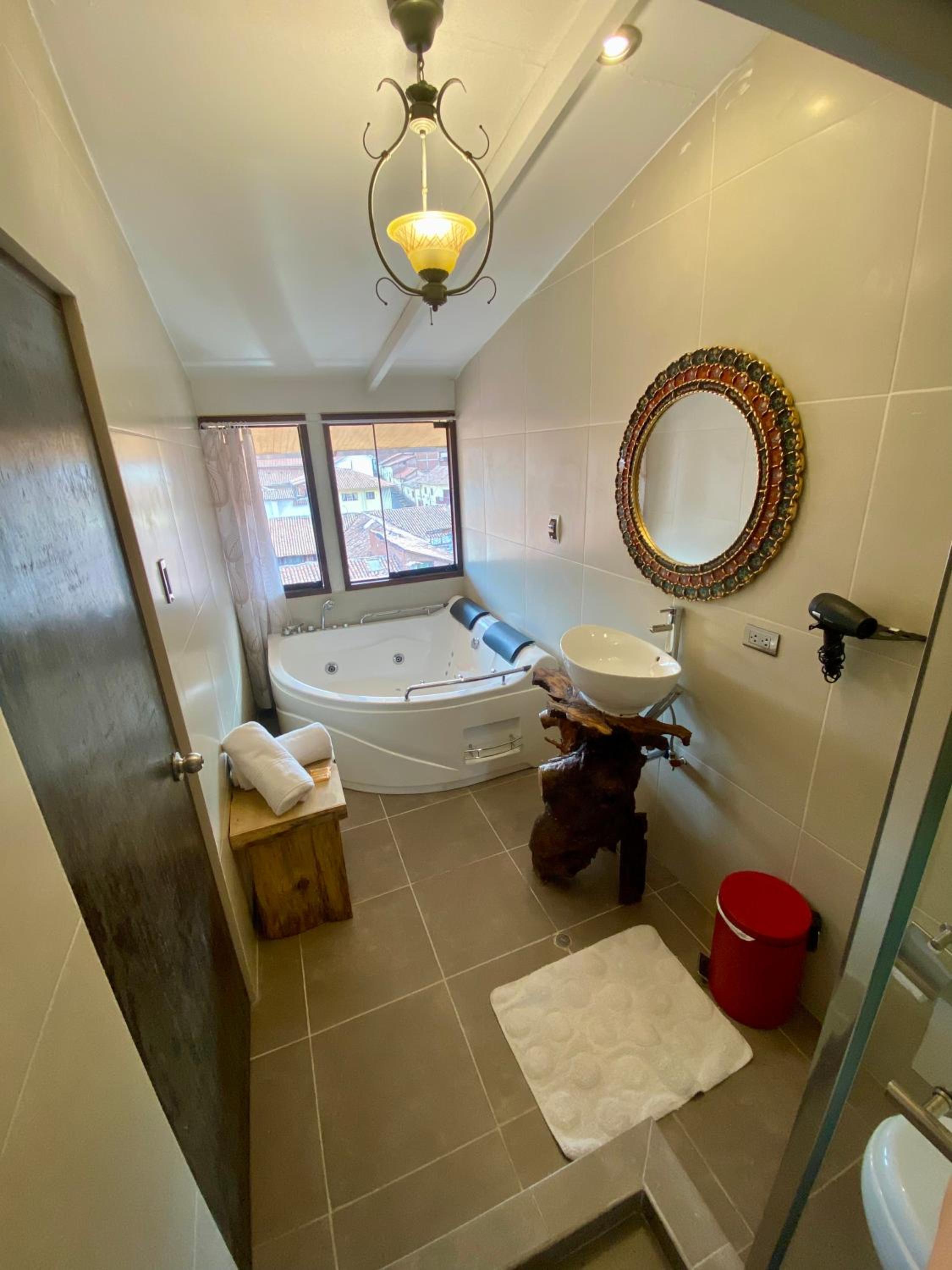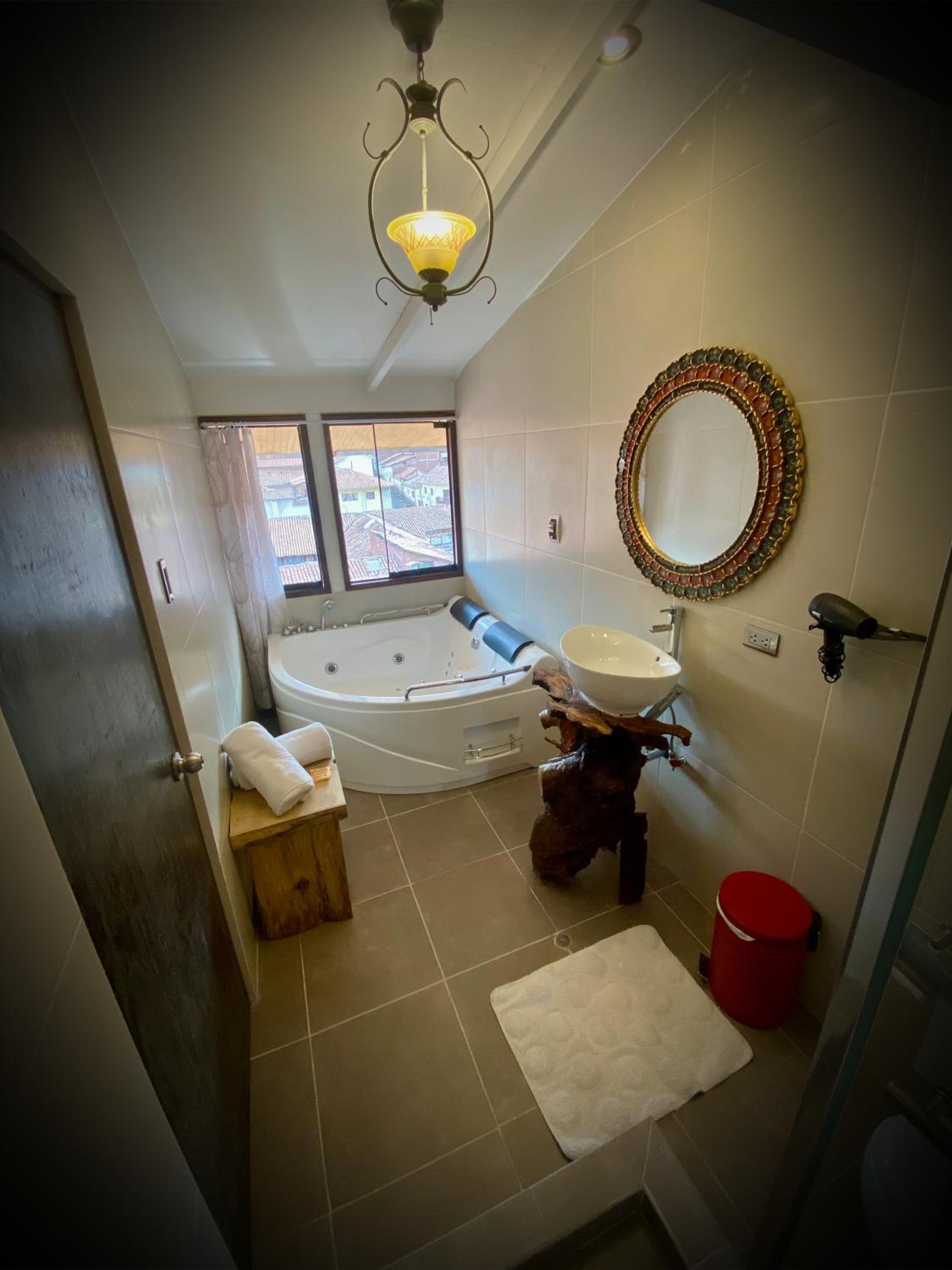 My gf and I really enjoyed the Cusco Hotel Boutique. It's situated on a secluded side street and it's nearly hidden behind a large wooden door with a lion-shaped brass knocker. Once inside, this nondescript facade revealed a rustic looking interior with modern touches like glass doors and new lighting. The staff was very friendly, they greeted is with coca tea and let us check in an hour early, which was great since there are only a handful of rooms here. Our room had a huge glass shower, hot tub, and two warm comfy beds. This was a great launching point for our 2-day Cusco adventure because it was so close to all the best places like Plaza de Armas and San Pedro Market. And we loved the Perros Couch Bar and Restaurant a few doors down, a very funky and friendly spot with amazing food and drinks. I'd definitely recommend this hotel! Oh and breakfast is included!