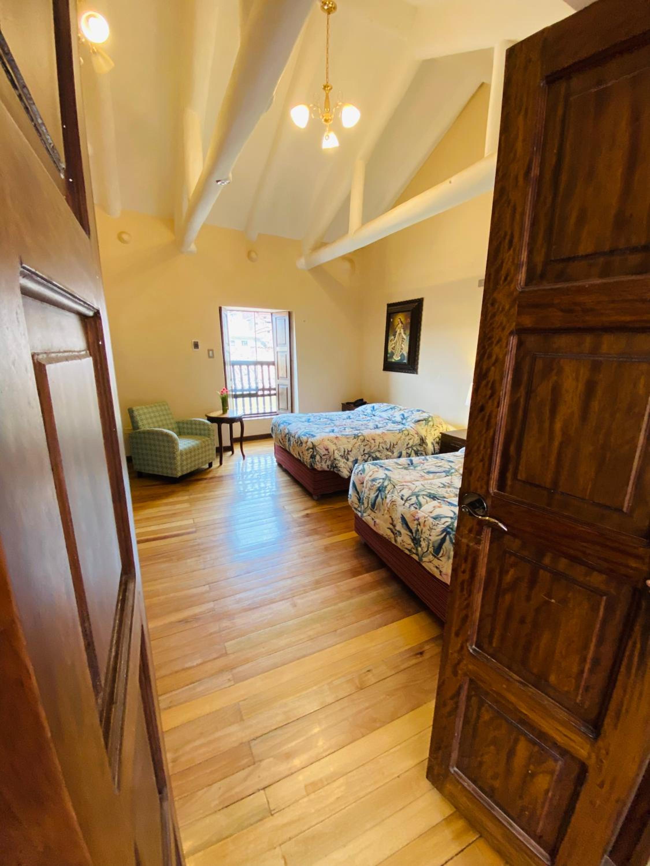 La limpieza de la habitación bien. Lo malo del desayuno es que te preguntan a qué hora lo quiere. Y tienes que estar a esa hora si no ya no te lo proporcionan. La ubicación cerca de plaza de armas. Pero la zona muy desolada un hotel de construcción muy vieja. En cuanto al pago muy malo te cargan el 10% por ciento al pagar con tarjeta de crédito