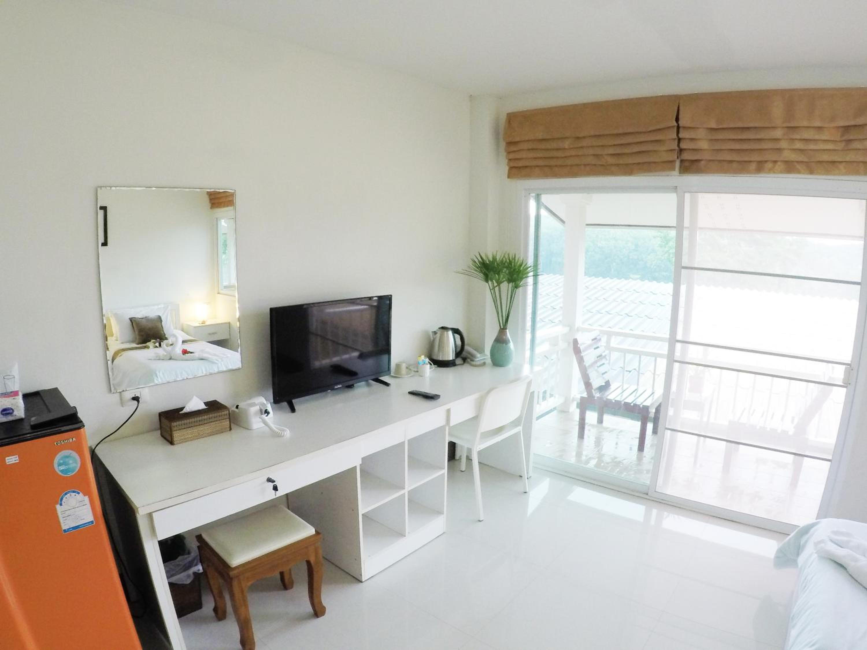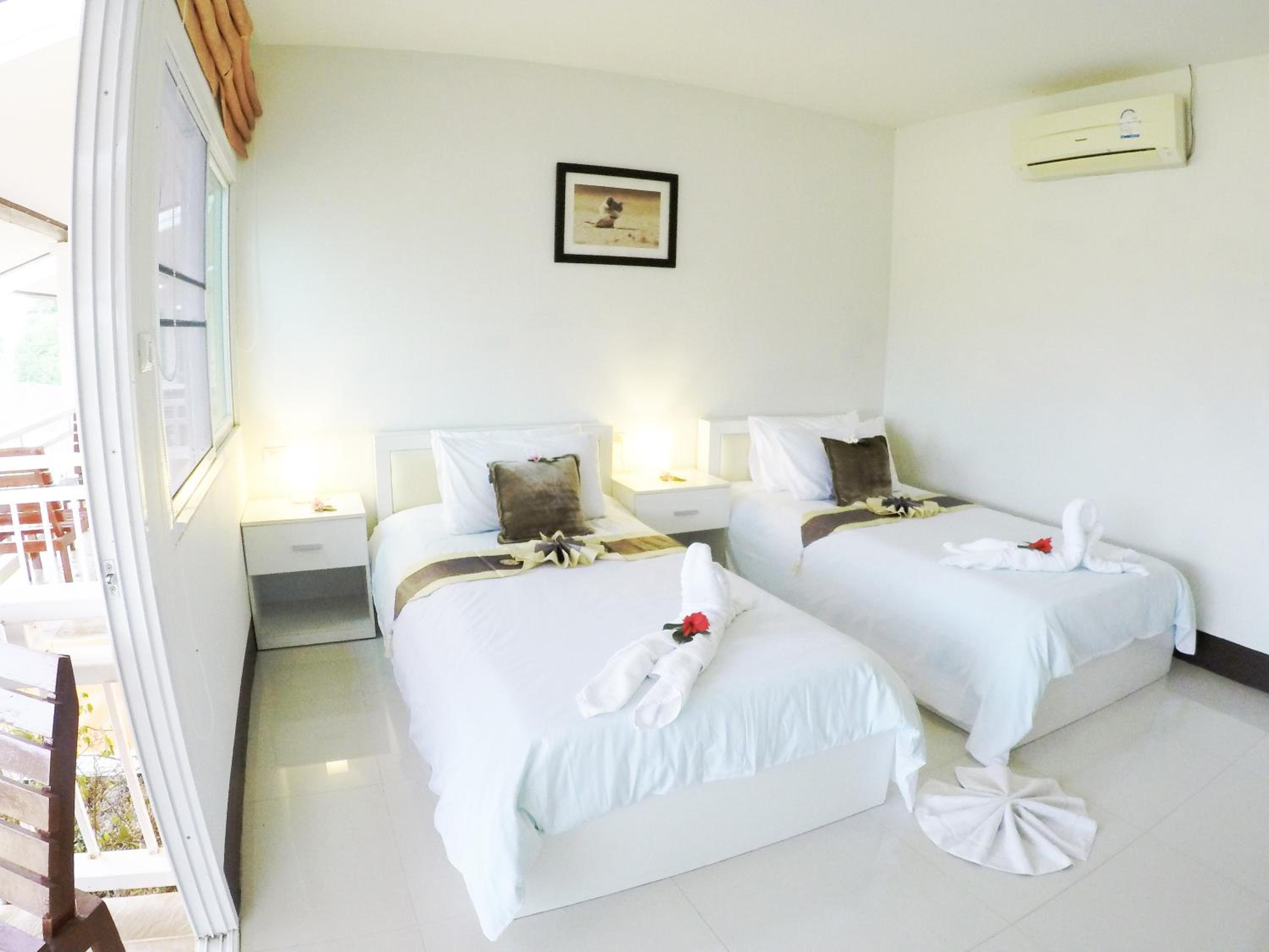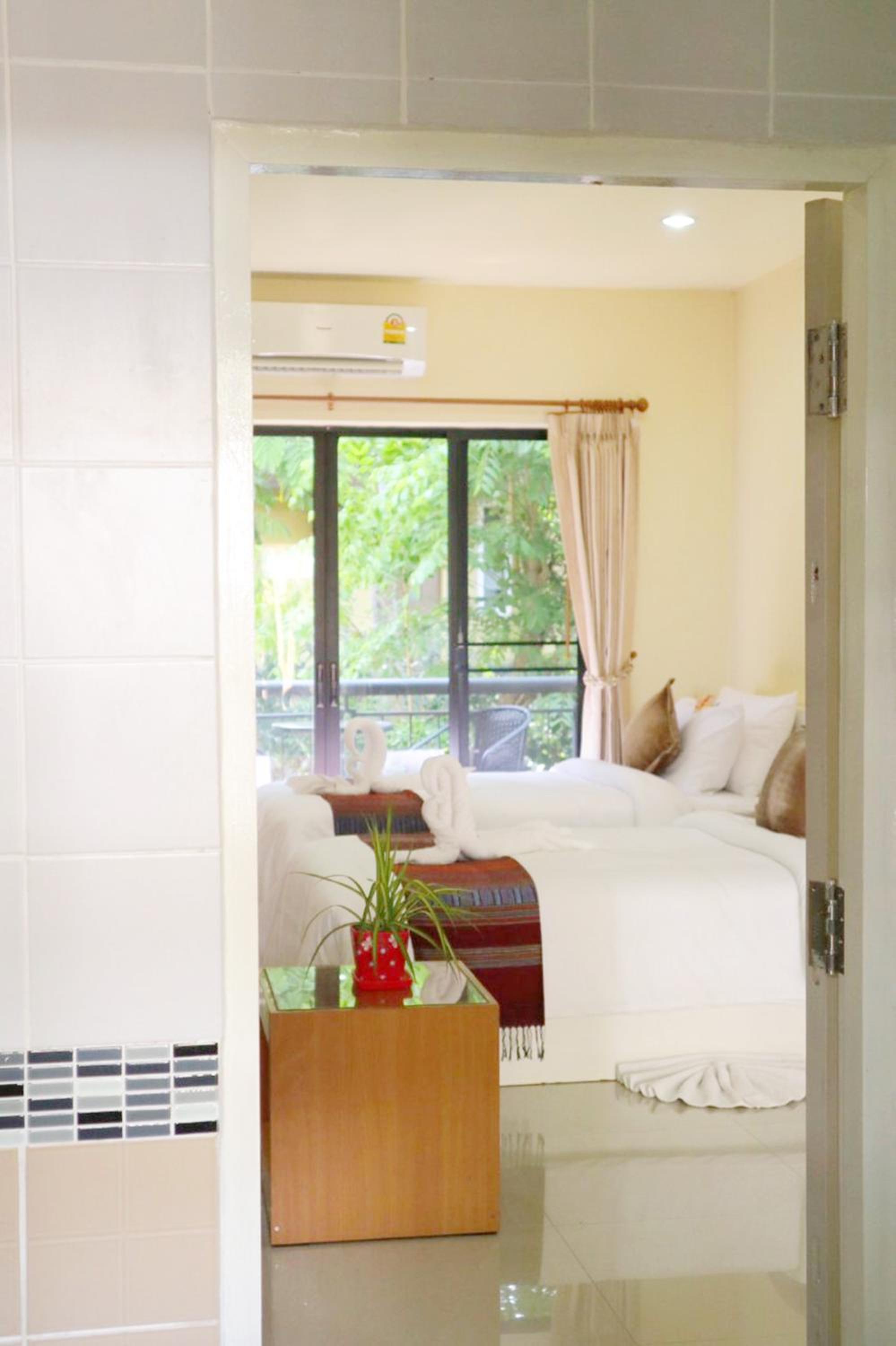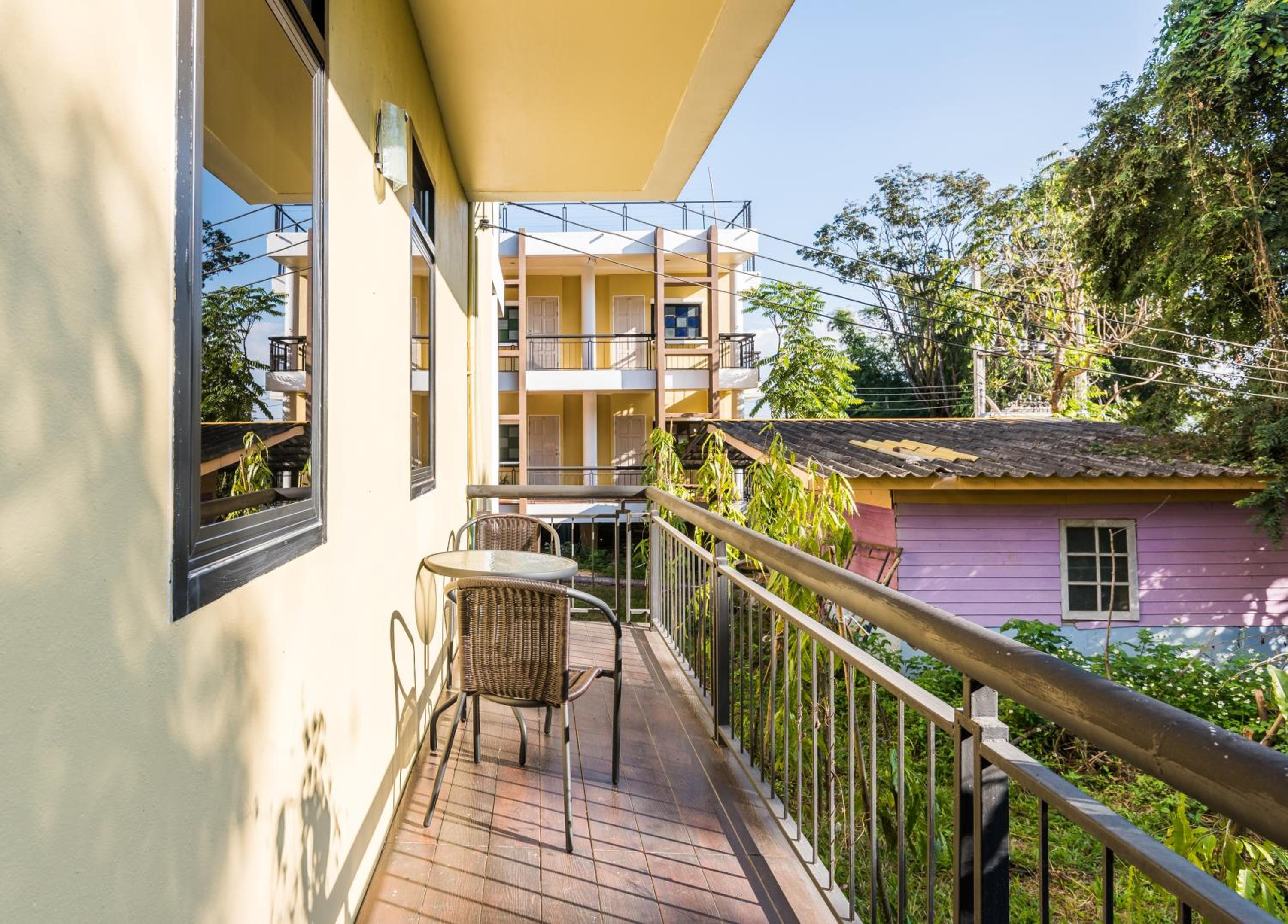 Photos lie, probably taken ages ago. The room was less than basic, uncomfortable hard mattress (and I've lived in Thailand for many years), 1 small pillow, no toiletries, not so clean room, dusty balcony, wood chairs no pillows.