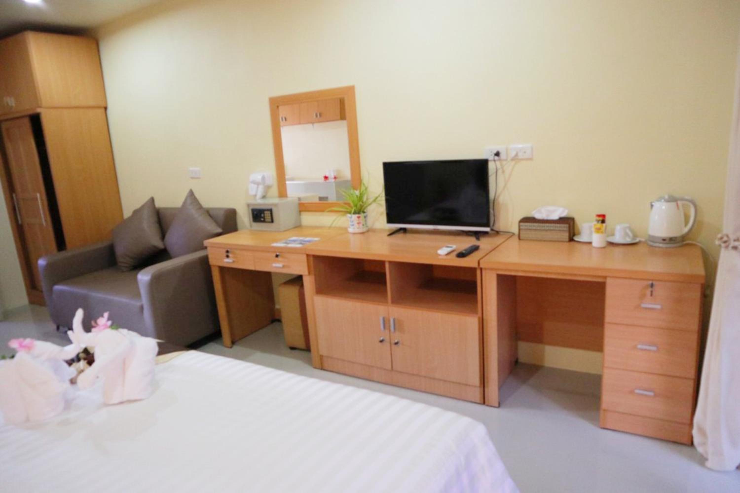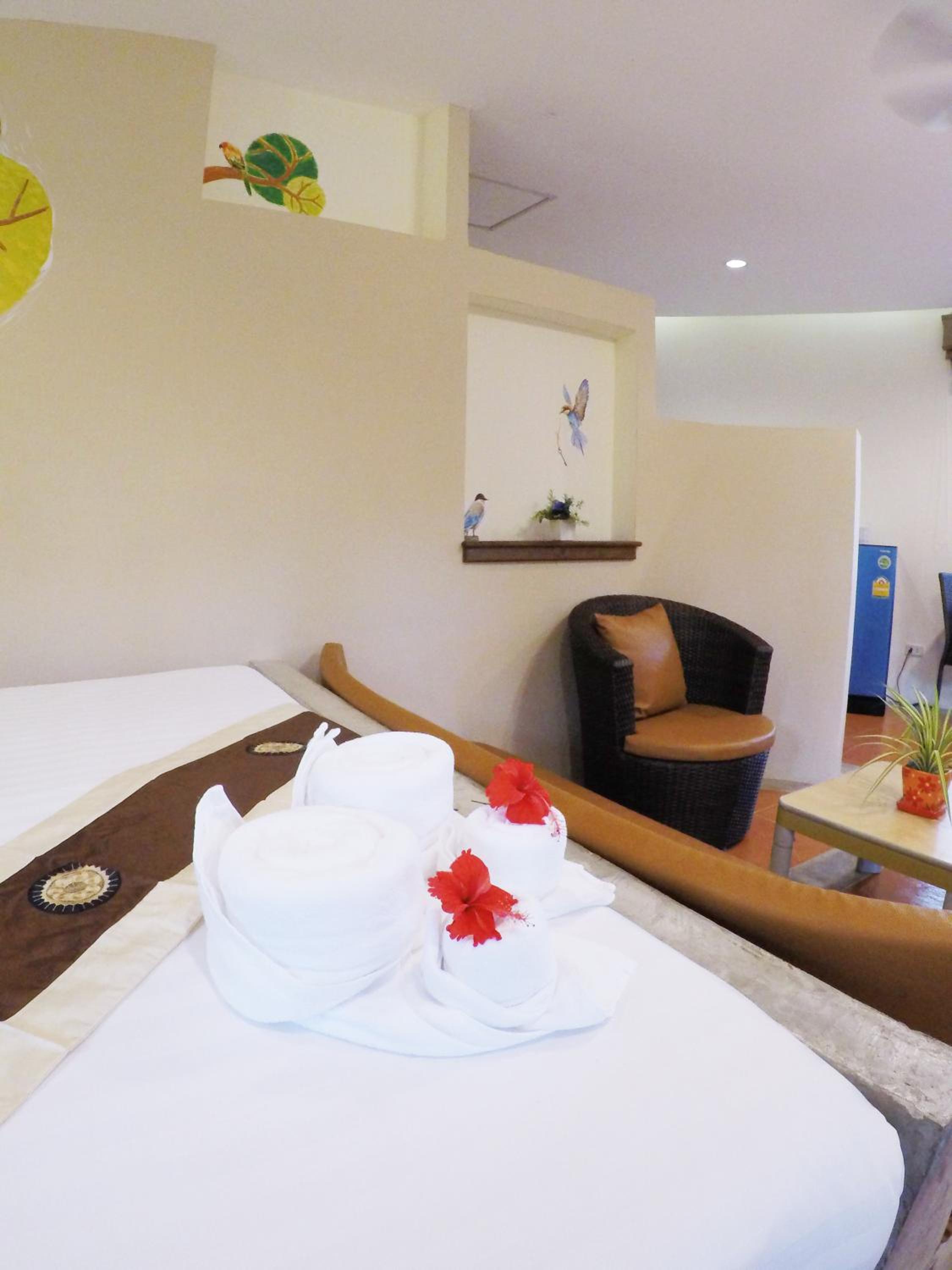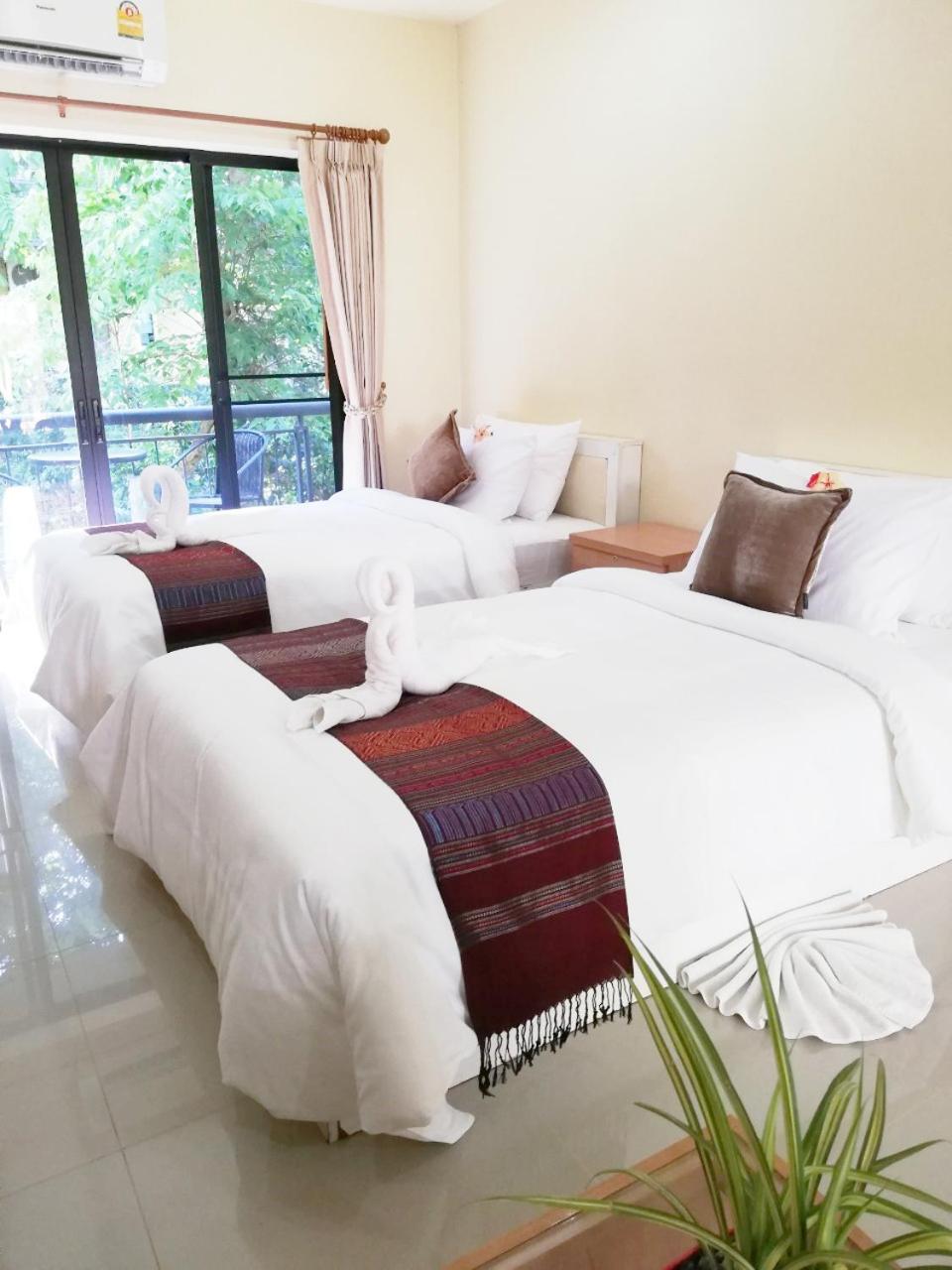 Photos lie, probably taken ages ago. The room was less than basic, uncomfortable hard mattress (and I've lived in Thailand for many years), 1 small pillow, no toiletries, not so clean room, dusty balcony, wood chairs no pillows.