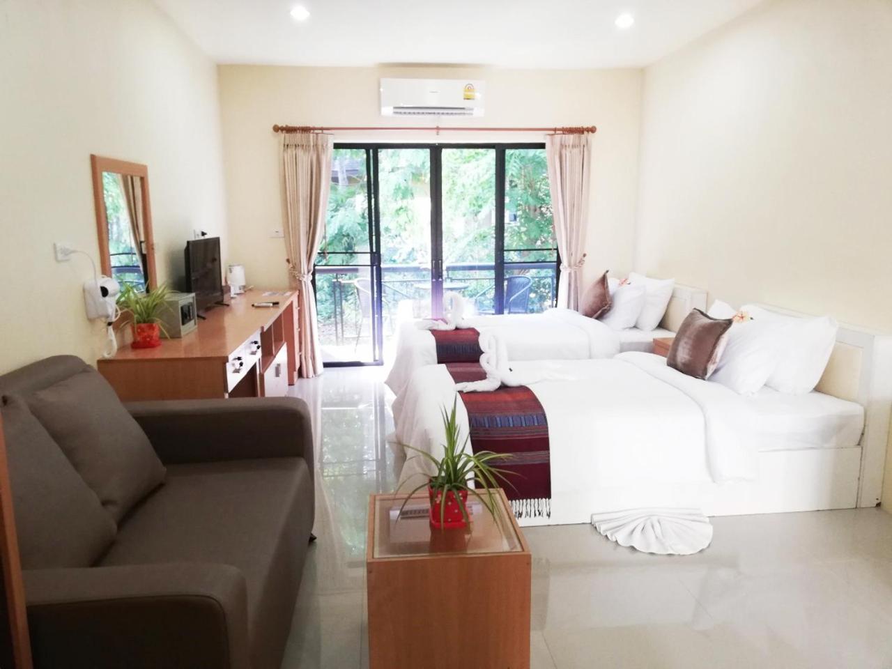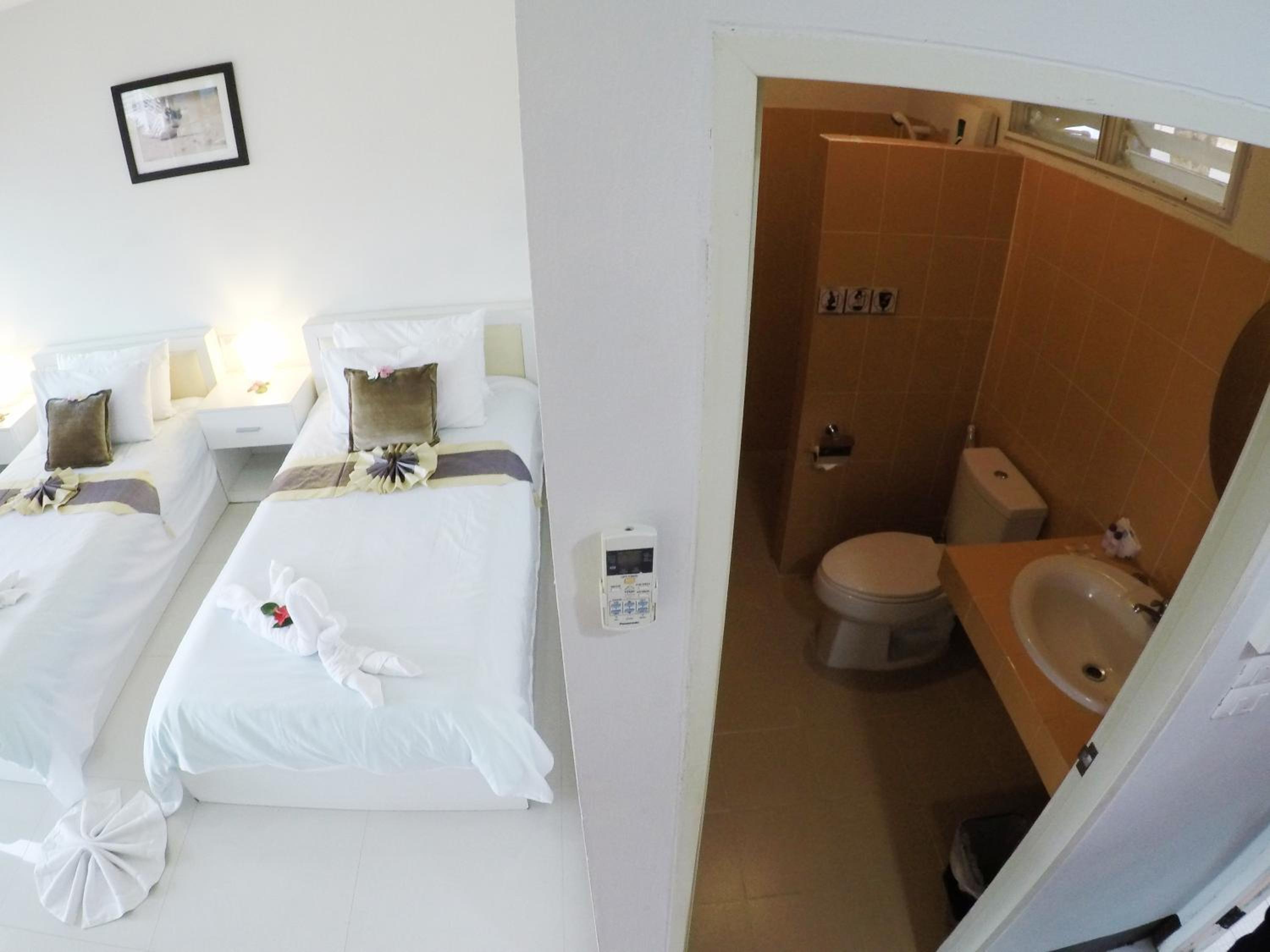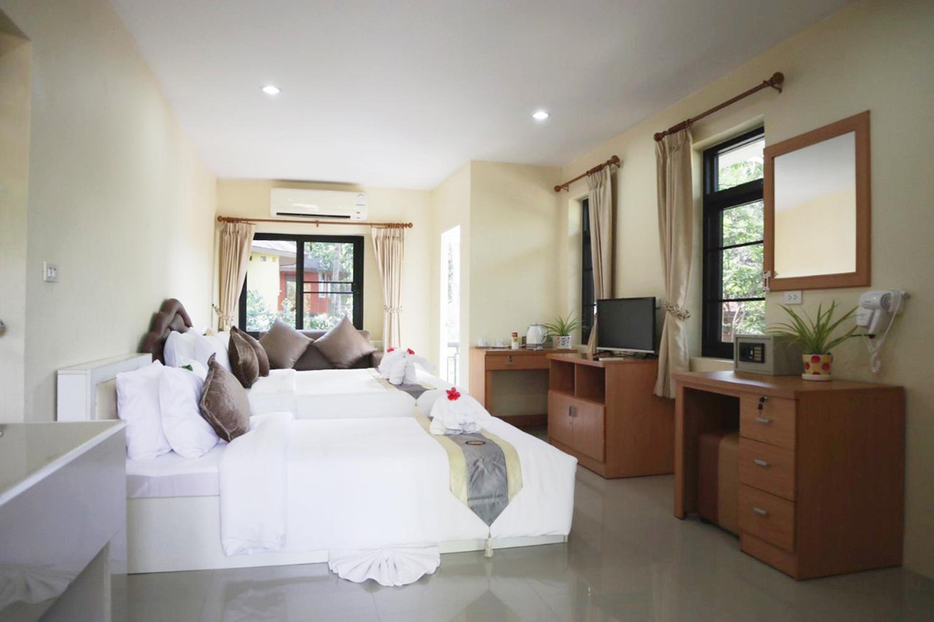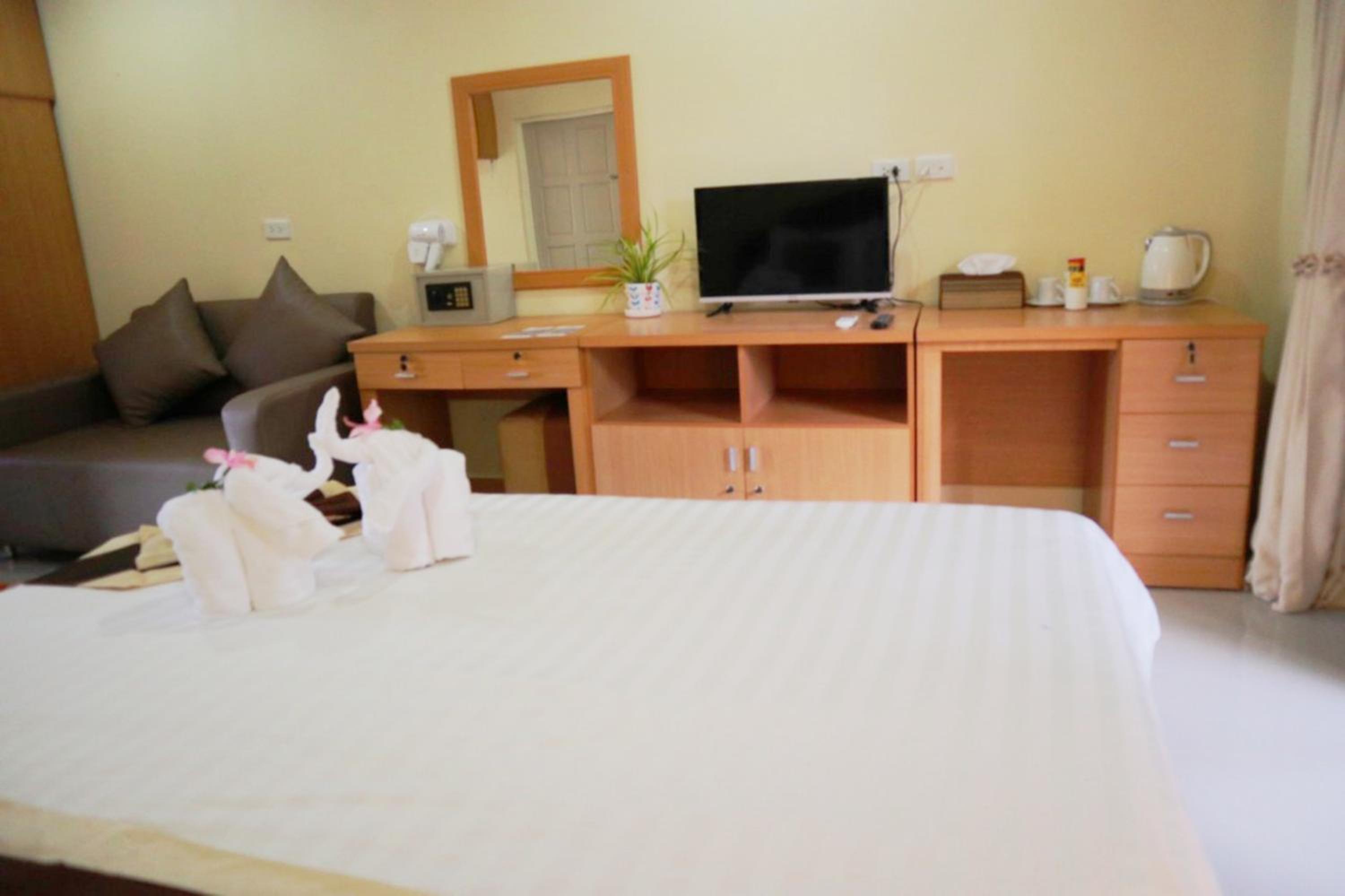 Photos lie, probably taken ages ago. The room was less than basic, uncomfortable hard mattress (and I've lived in Thailand for many years), 1 small pillow, no toiletries, not so clean room, dusty balcony, wood chairs no pillows.