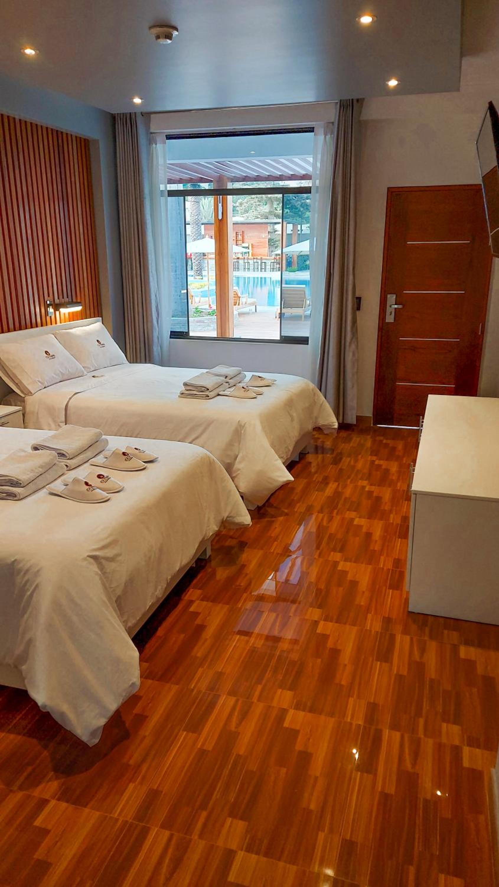 Mi gustaron las instalaciones, peronseria bueno que fueron mas trasparentes con los.precios al momento de hacer la reserva ya que en booking incluí a mi menos hijo y pues ya tenia un presupuesto, pero me cobraron un poco más. Luego con la persona quien nos entrego la habitación como que nos dio a entender si desean esta bien sino hay otras opciones de Hotel. A parte de ello las sillas que estan al rededor de las piscinas nos dijeron que pertenecían a los socios y si es que estos llegaban y pedían que nos retiremos deberíamos de hacerlo y pues el monto que pagamos es considerable y más aun habían muchas sillas más, quizas antes de instalarlos deberian.comentarlo o poner un aviso de que ahi no se puede uno sentar, eso.me pareció descortés. Luego todo muy bien, super limpio, ordenado personal.de limpieza muy amable las que se encuentran en los baños y al rededor de.piscinas el.salvavidas muy atento y amable.