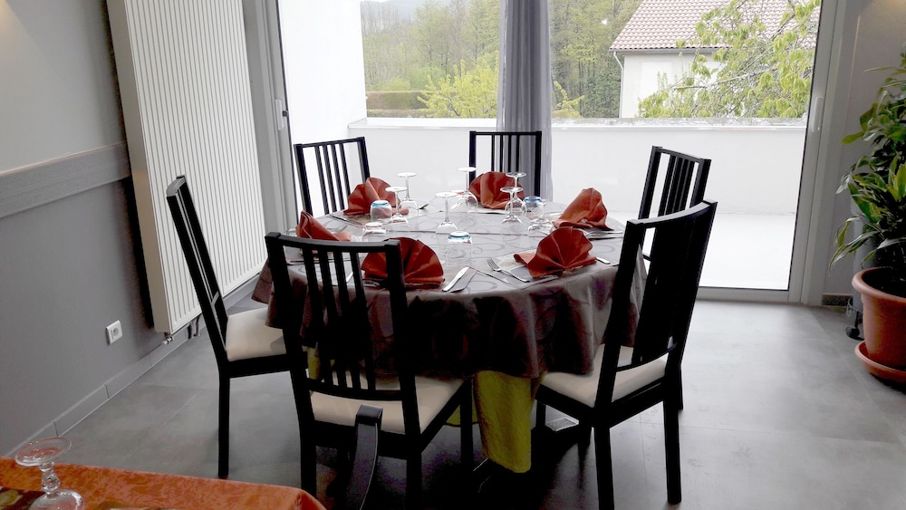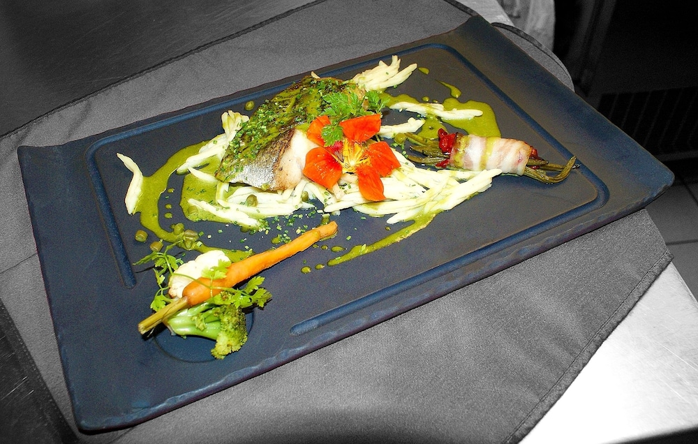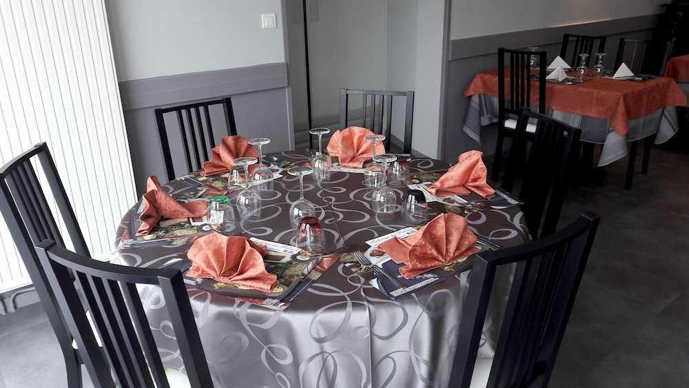 French Hospitality: Indulge in a delightful dining experience at Logis Auberge du Palais. Start your day with a scrumptious buffet breakfast served by the welcoming staff.