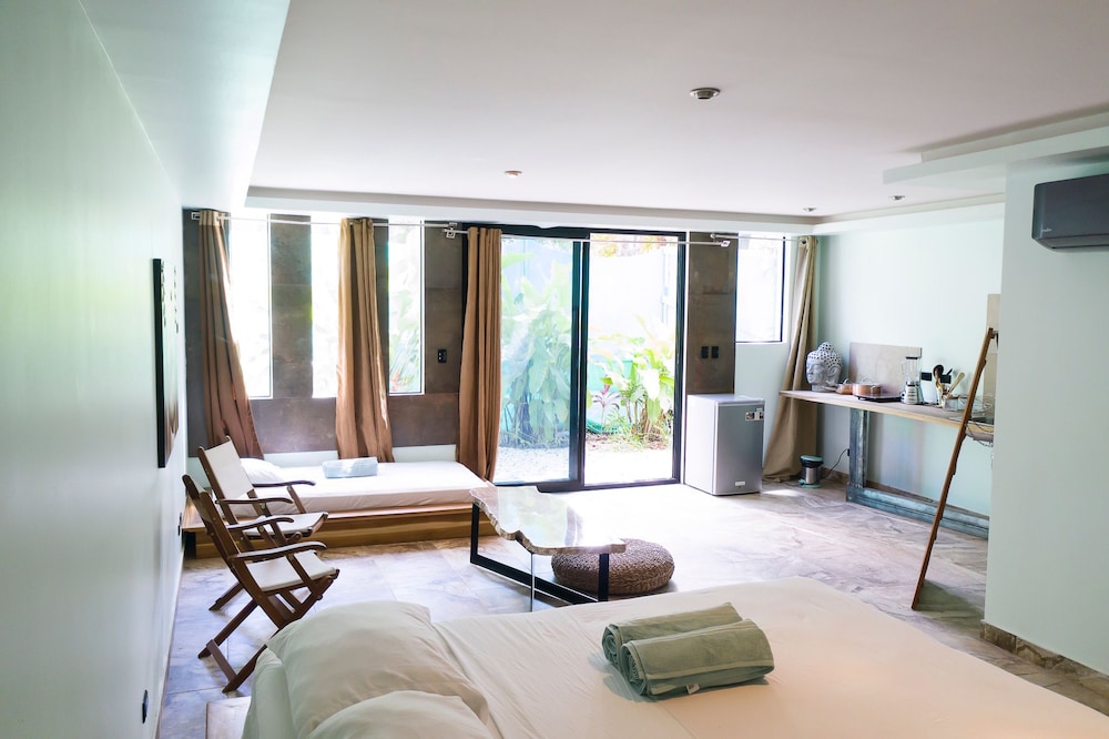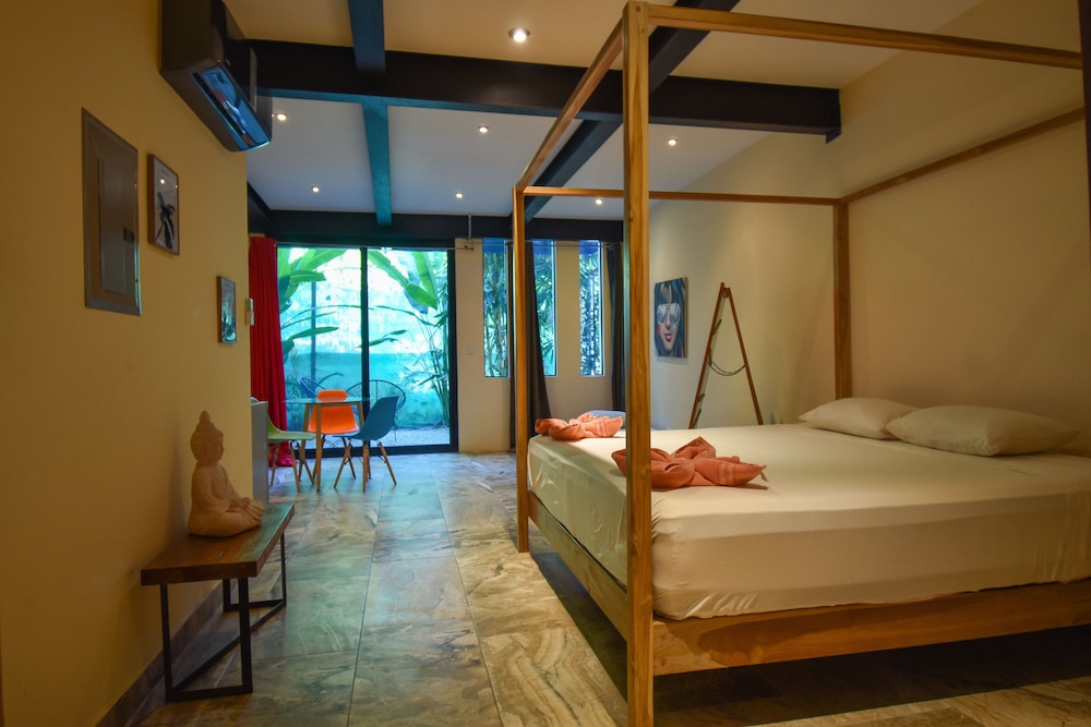 The best choice I could have made! The rooms very clean, beautiful, spacious, private; great shower, good wifi. Very well located downtown, close to the beach. The apartment downstairs has a kitchen, confirm availability with the owner before arrival, and it also has direct access to the pool. The ones upstairs have fridge. The pool is great with good sun all day long and sun chairs to rest. Roy and Luis are so attentive, so pura vida!; they recommended us excellent places to visit and eat such as "Tiquicia" just some meters away from the apartment, great recommendation. They went out of their way to make our stay amazing, the best one. Thank you so much!! Keep up the great work!! I absolutely recommend it.