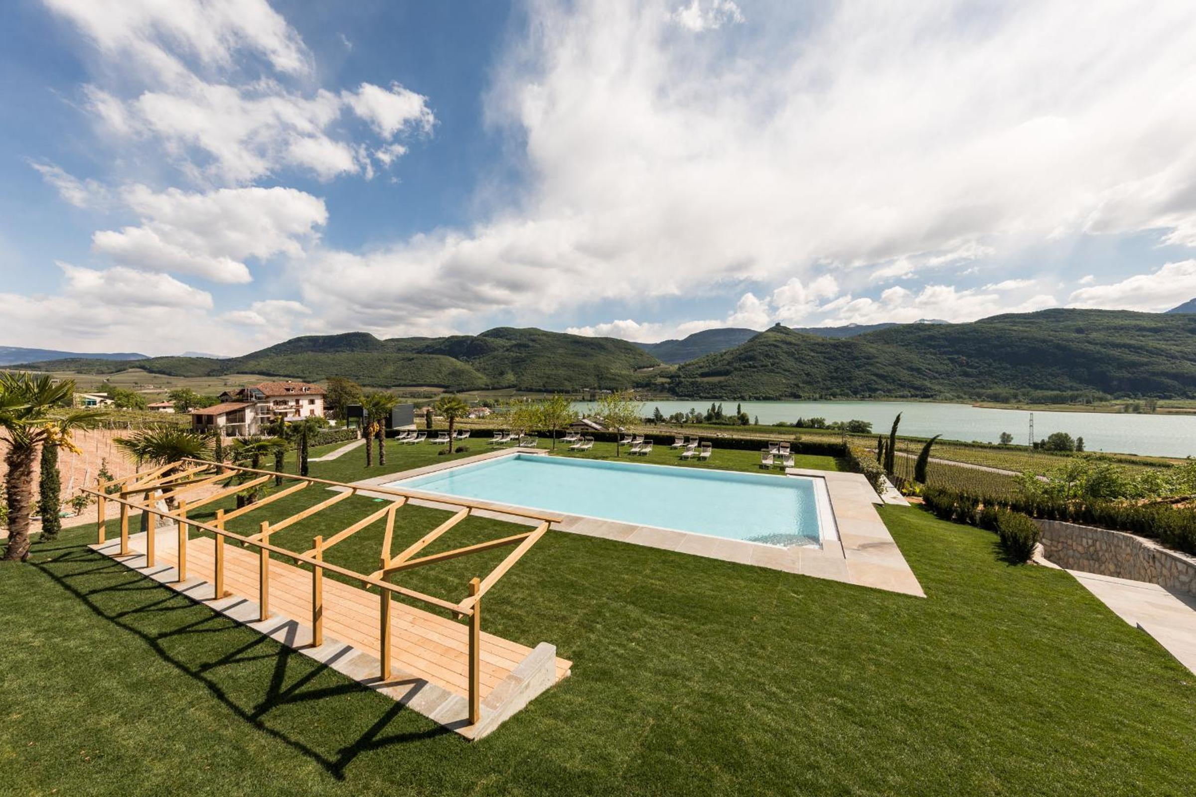 Hotel Hasslhof is a unique wine hotel offering breathtaking views of Lake Caldaro and the mountains. As the town's first wine hotel, guests can immerse themselves in the beauty of vineyards surrounding the property.